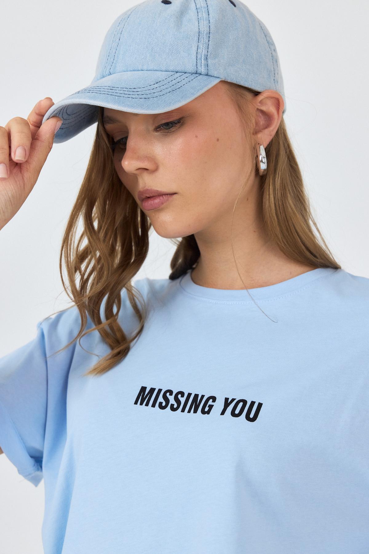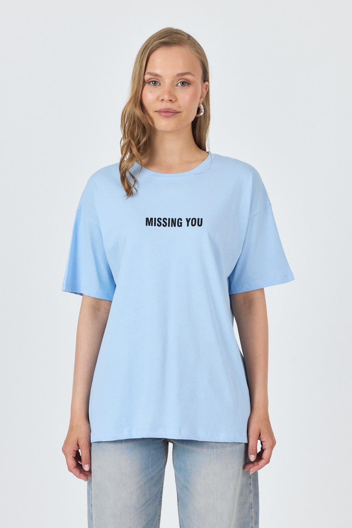 Mavi Yazı Baskılı Pamuklu Oversize Tişört 2150-6M