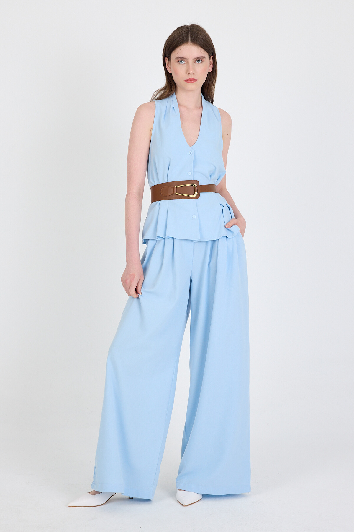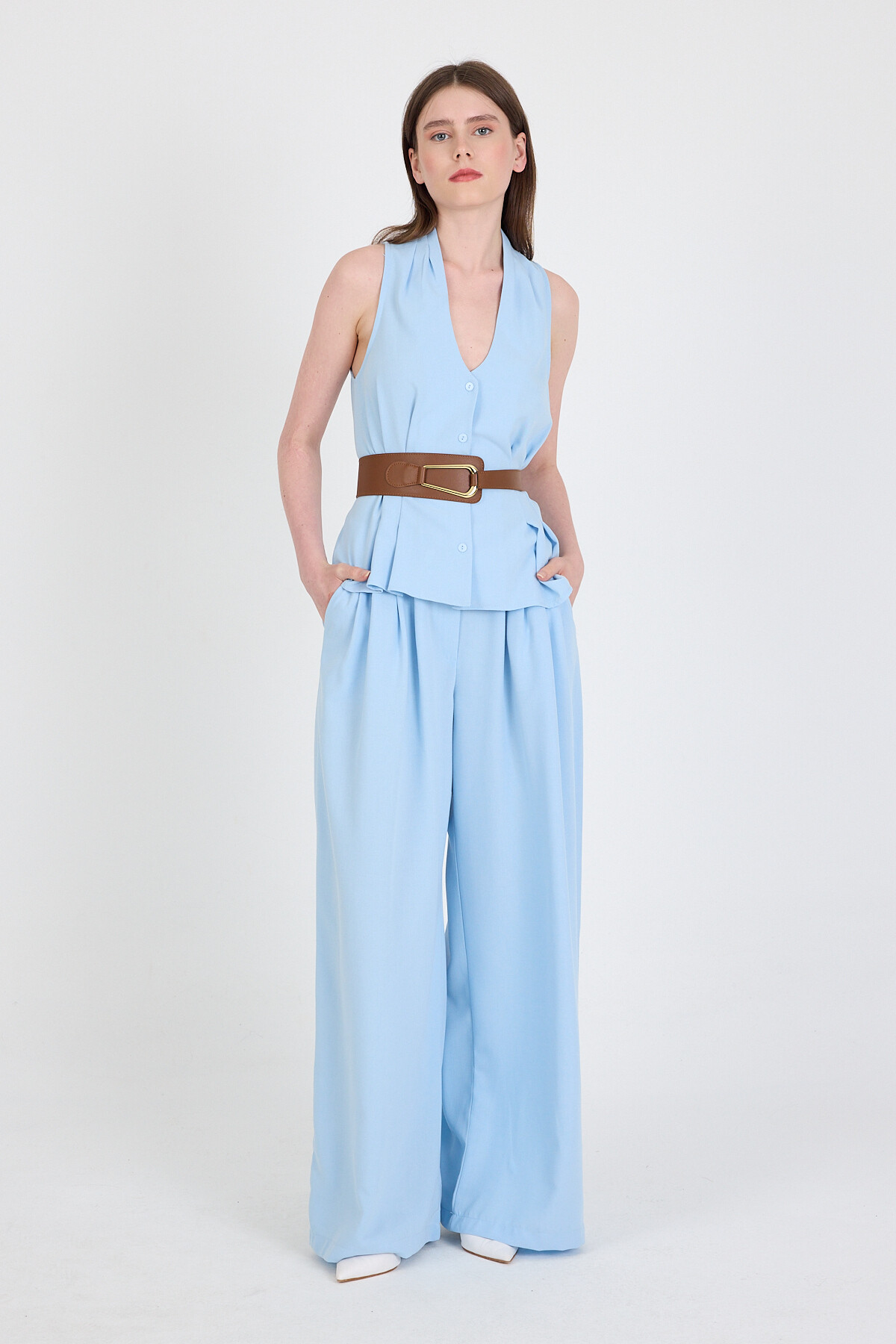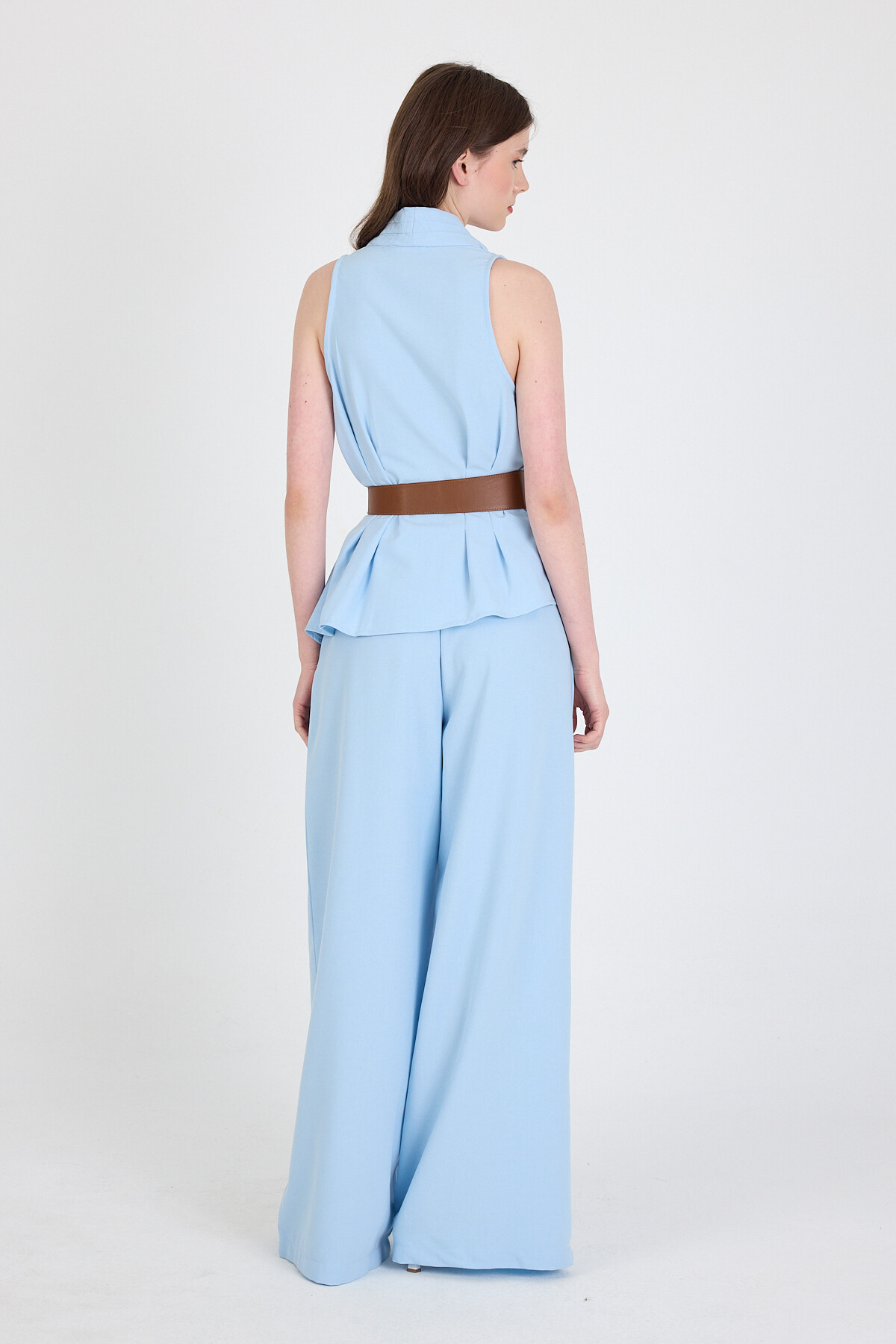 Mavi Yelekli Kemerli Pantolon Takım 5254