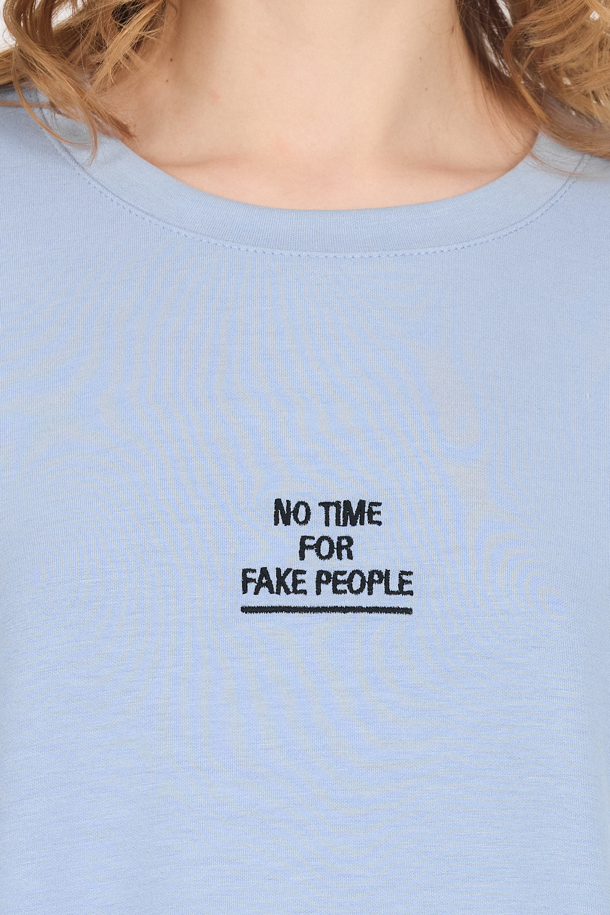 Mavi Yumuşak Dokulu Yazı Baskılı Oversize Tişört 6265