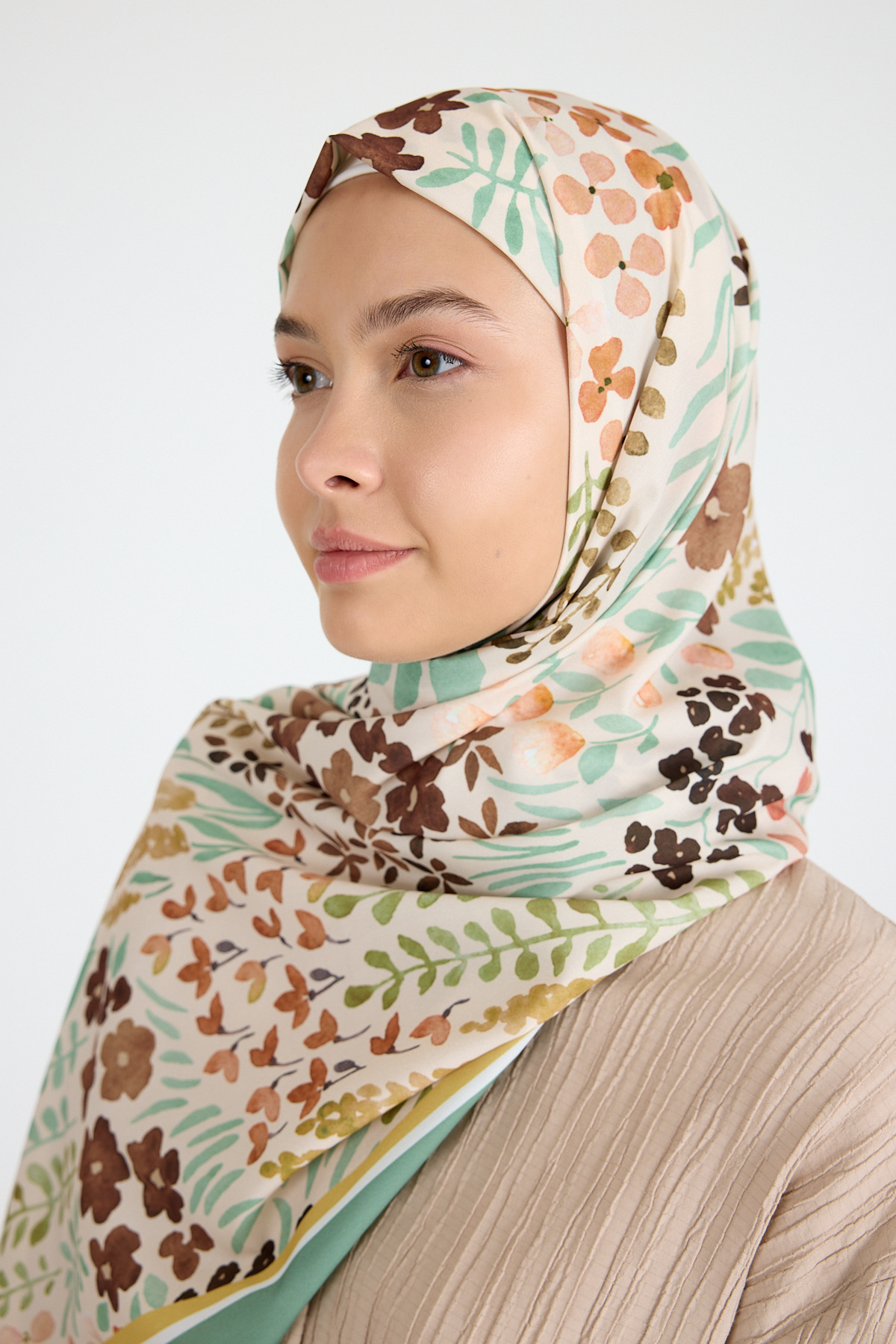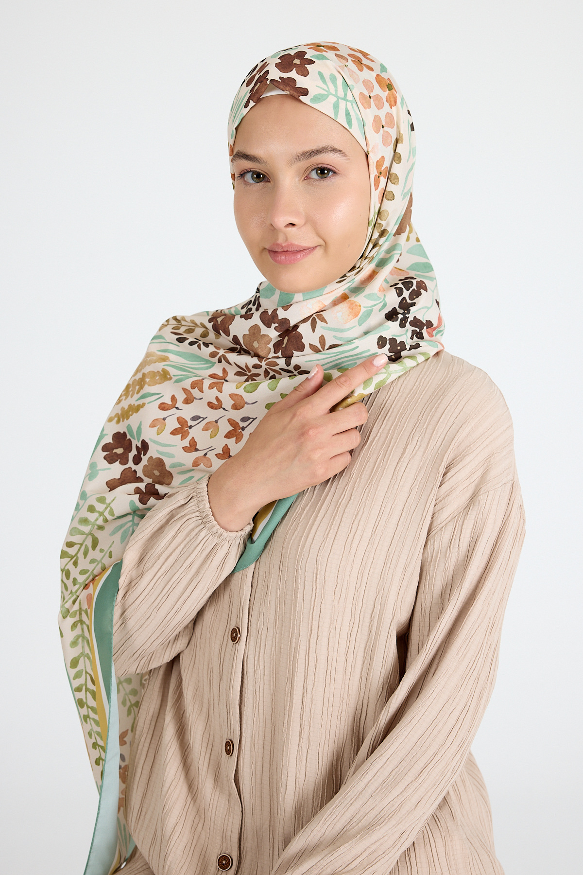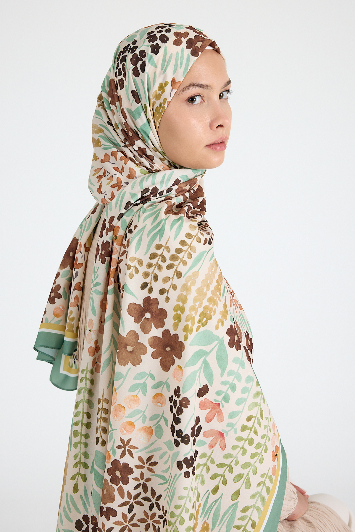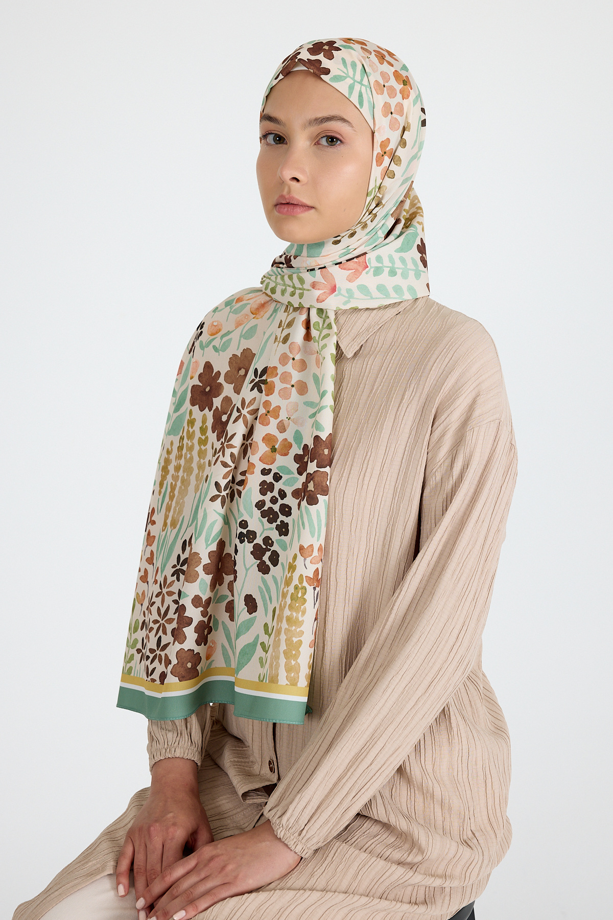 Mint Çiçek Desenli Şal 5677