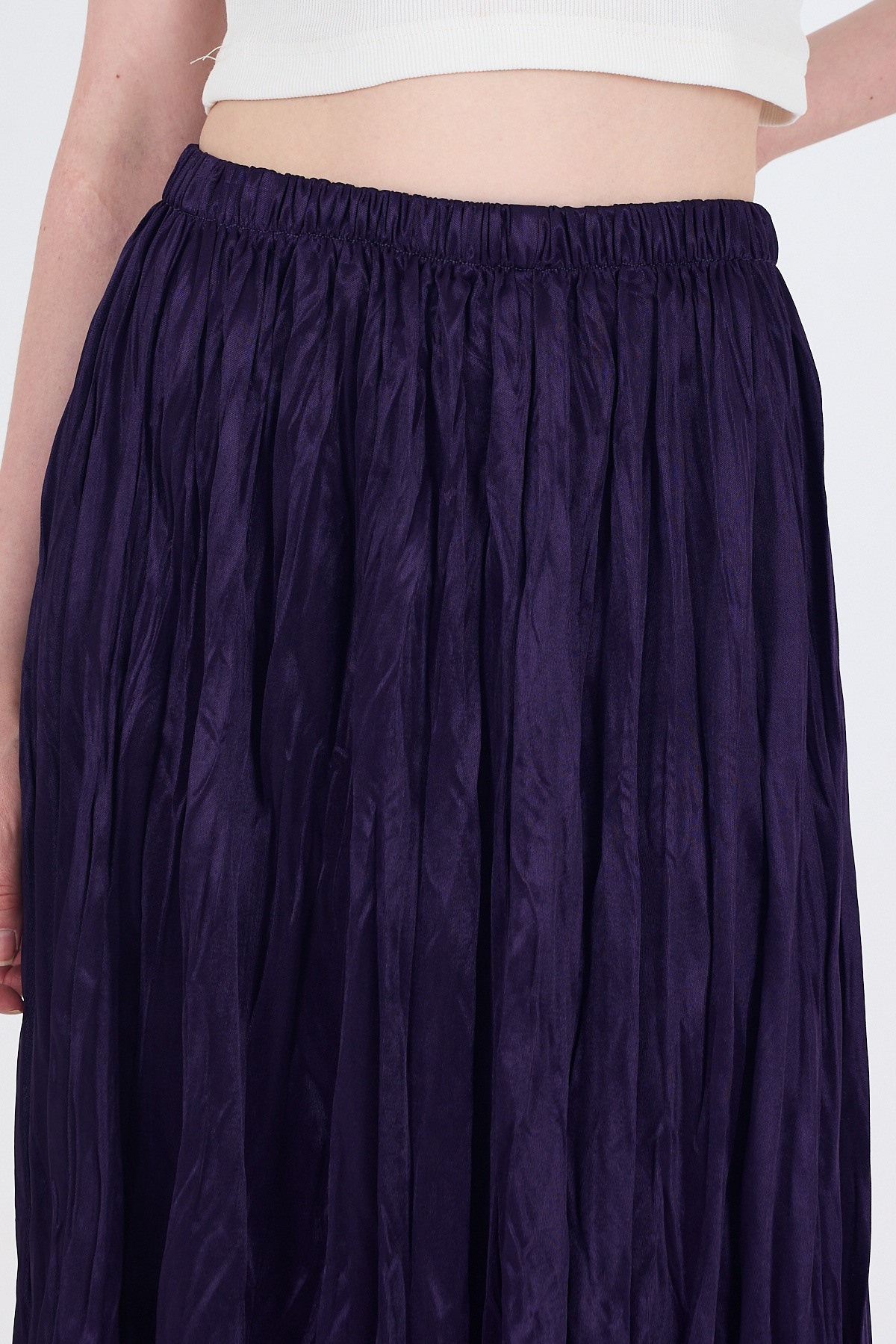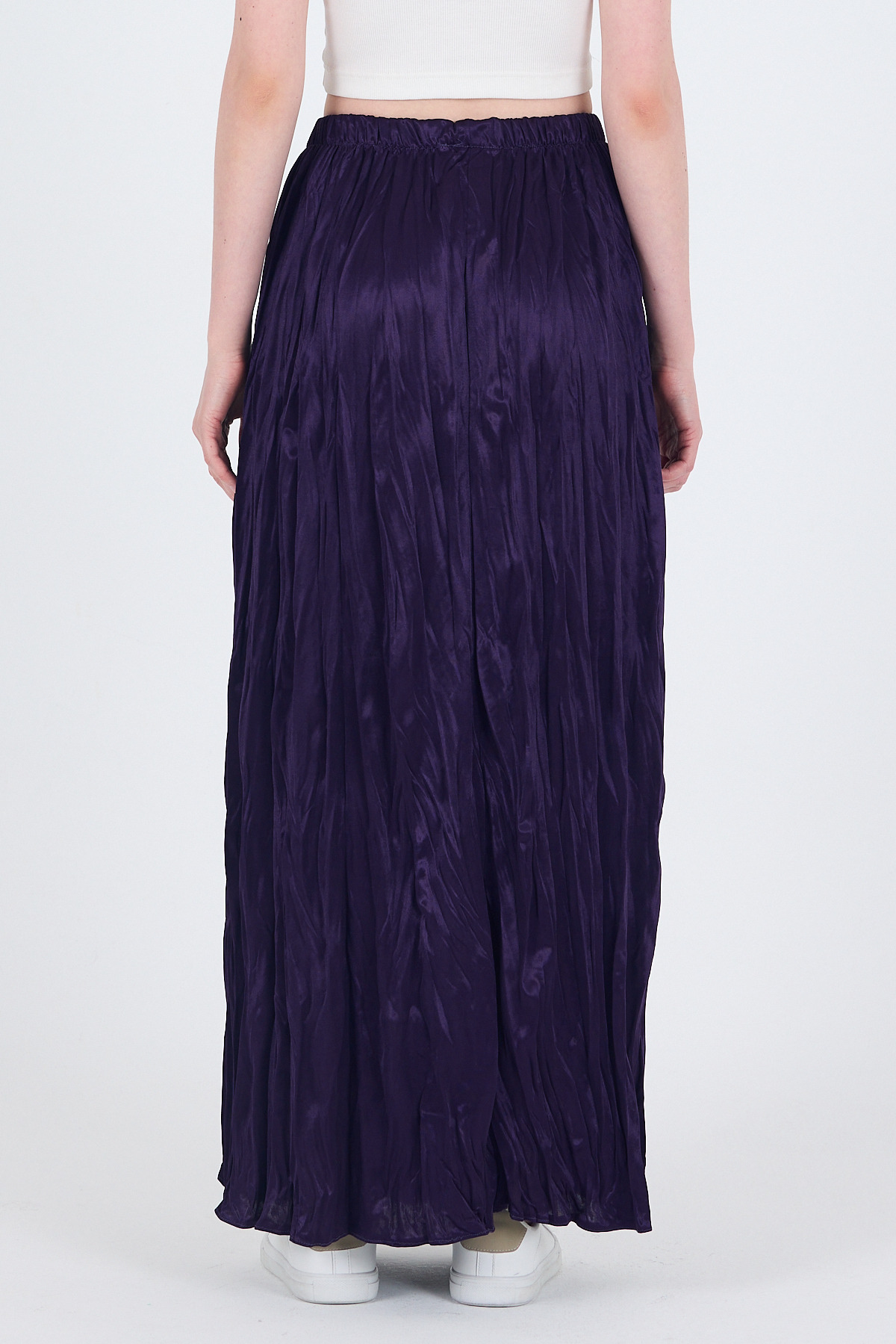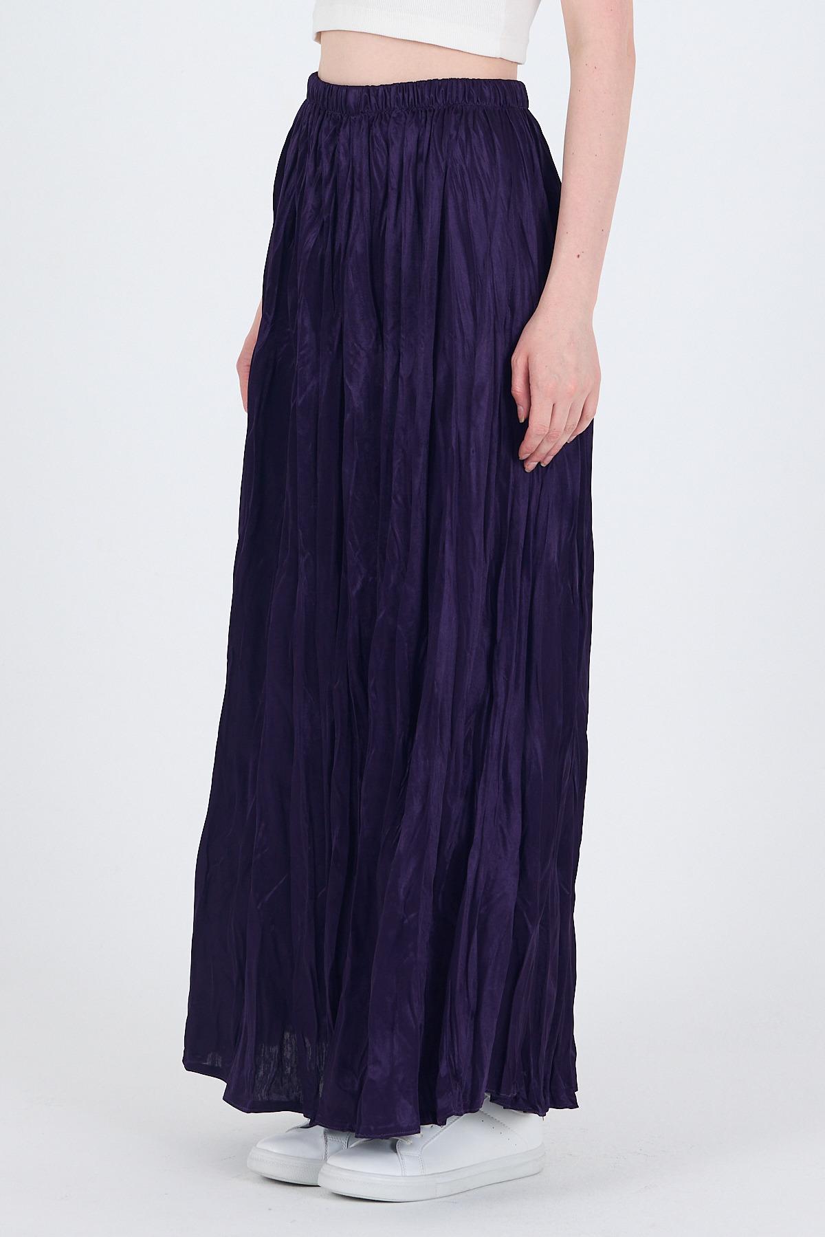Mor Bel Lastikli Kırışık Kumaş Etek 3483