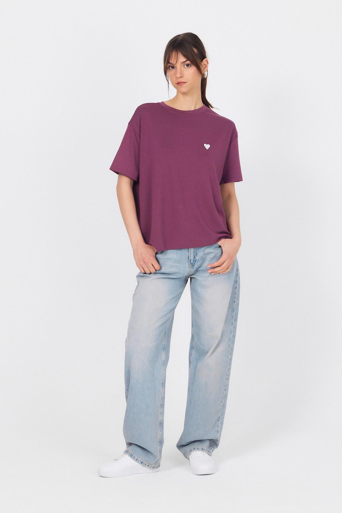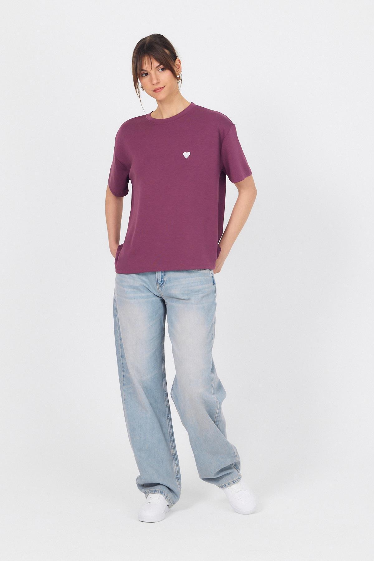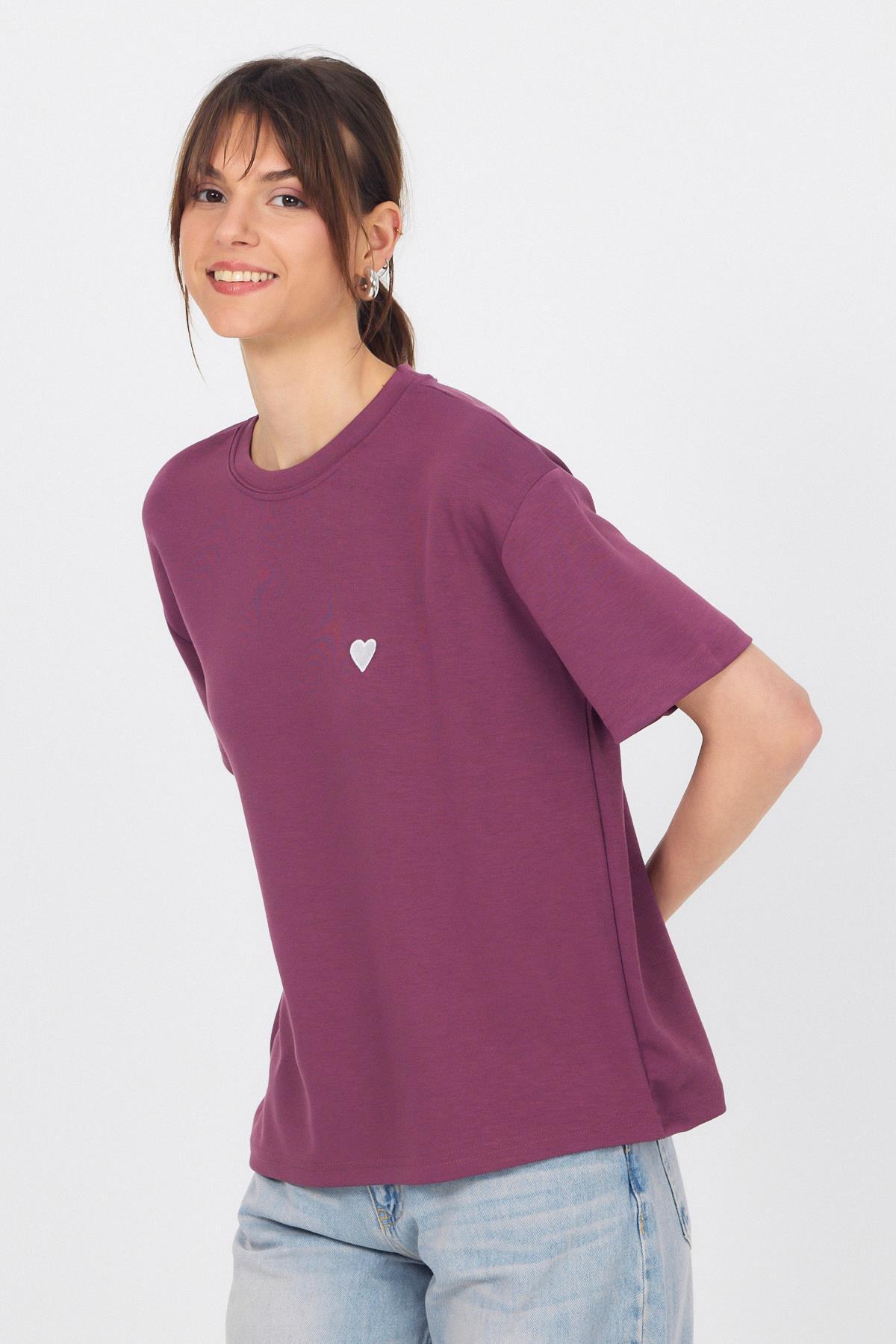 Mor Kalp Nakışlı Premium Kumaş Tişört 6218
