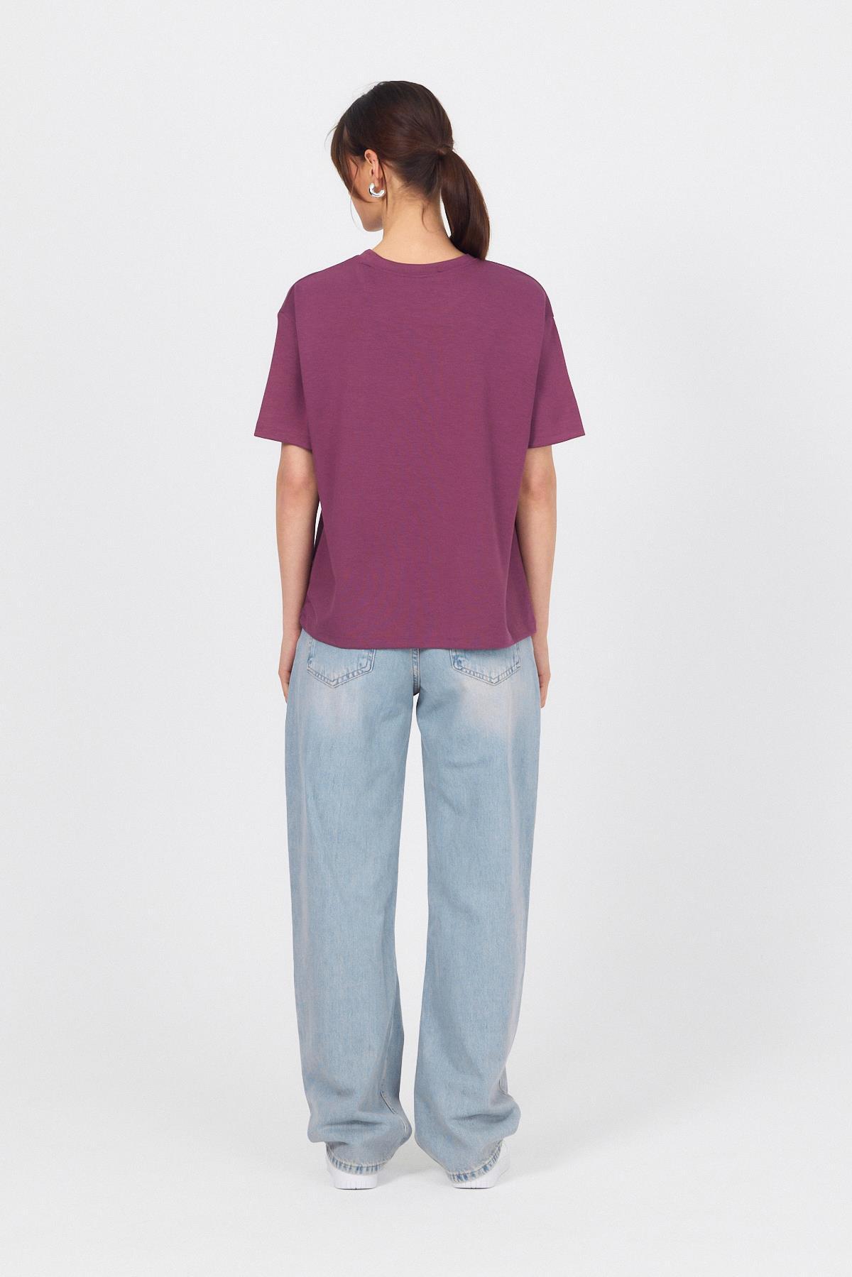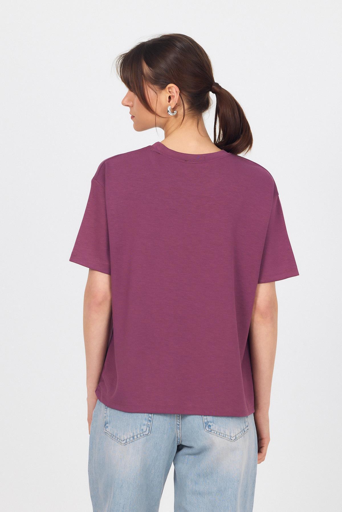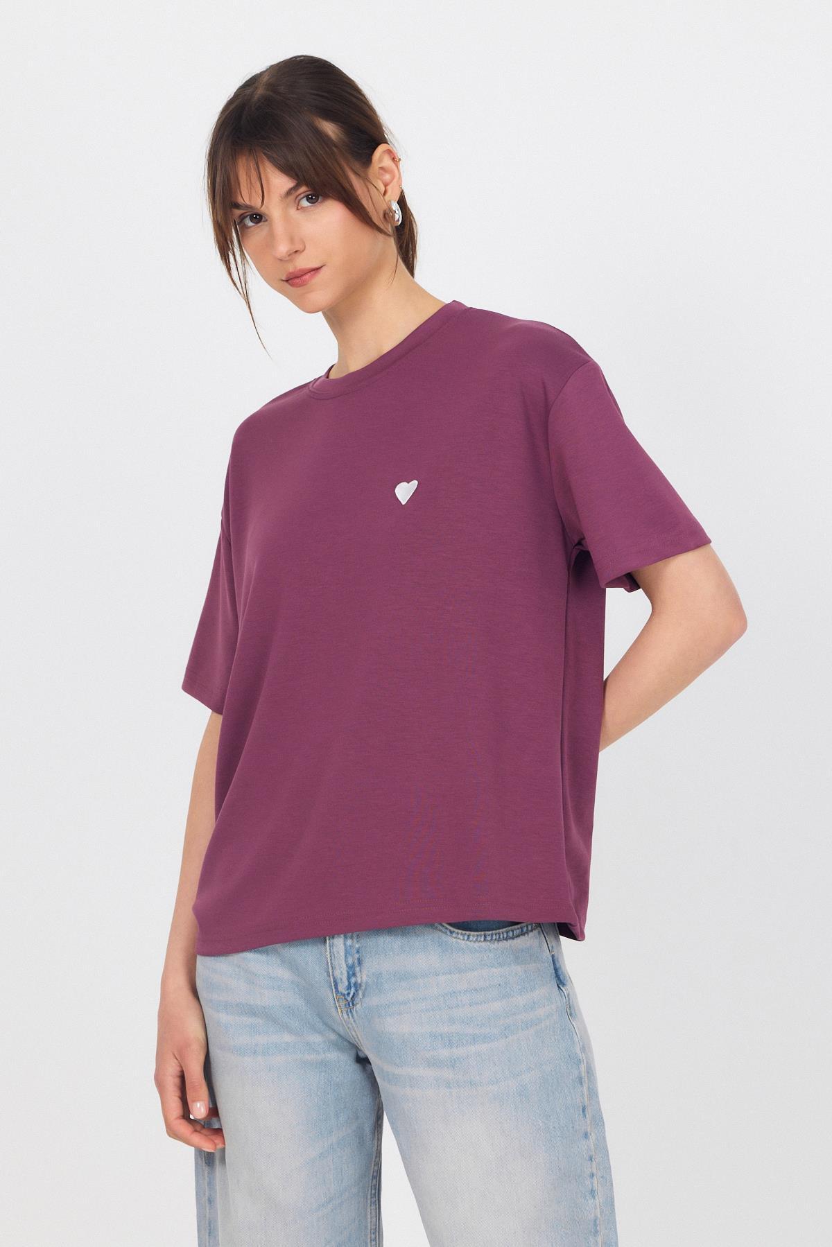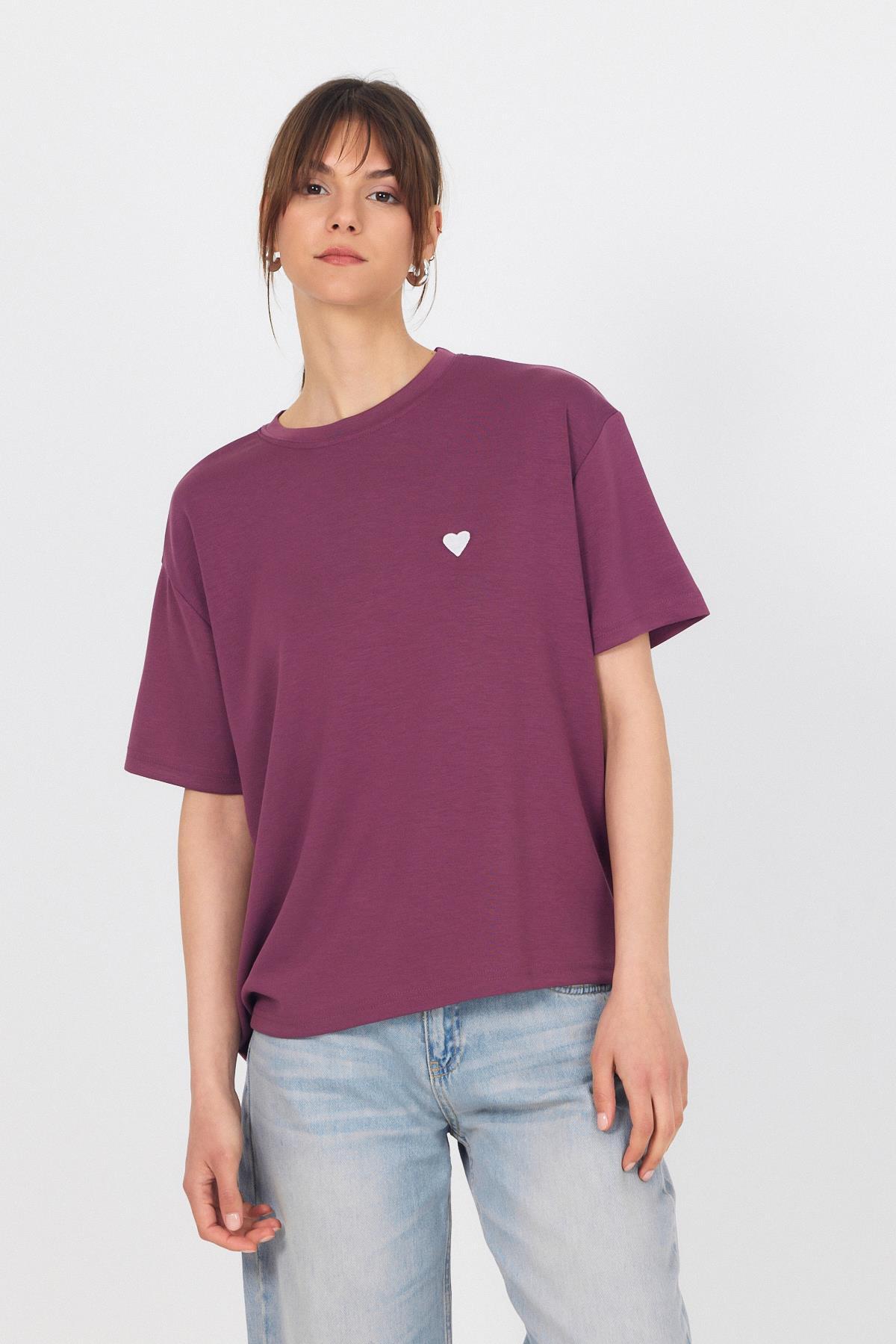 Mor Kalp Nakışlı Premium Kumaş Tişört 6218