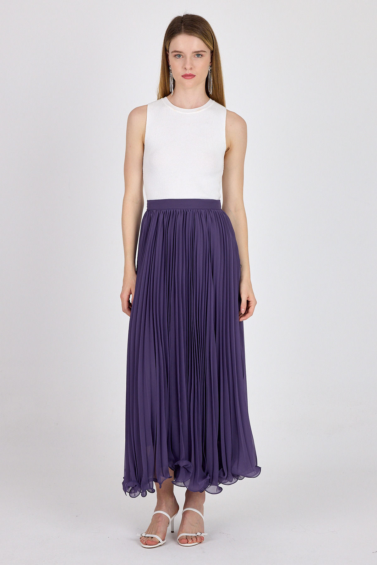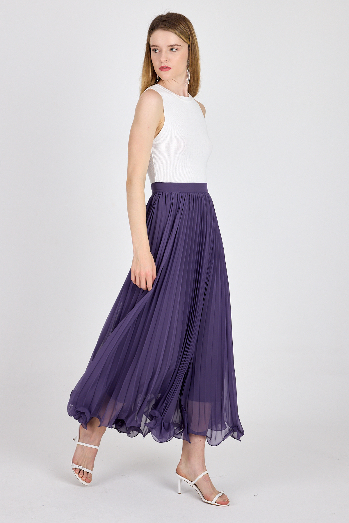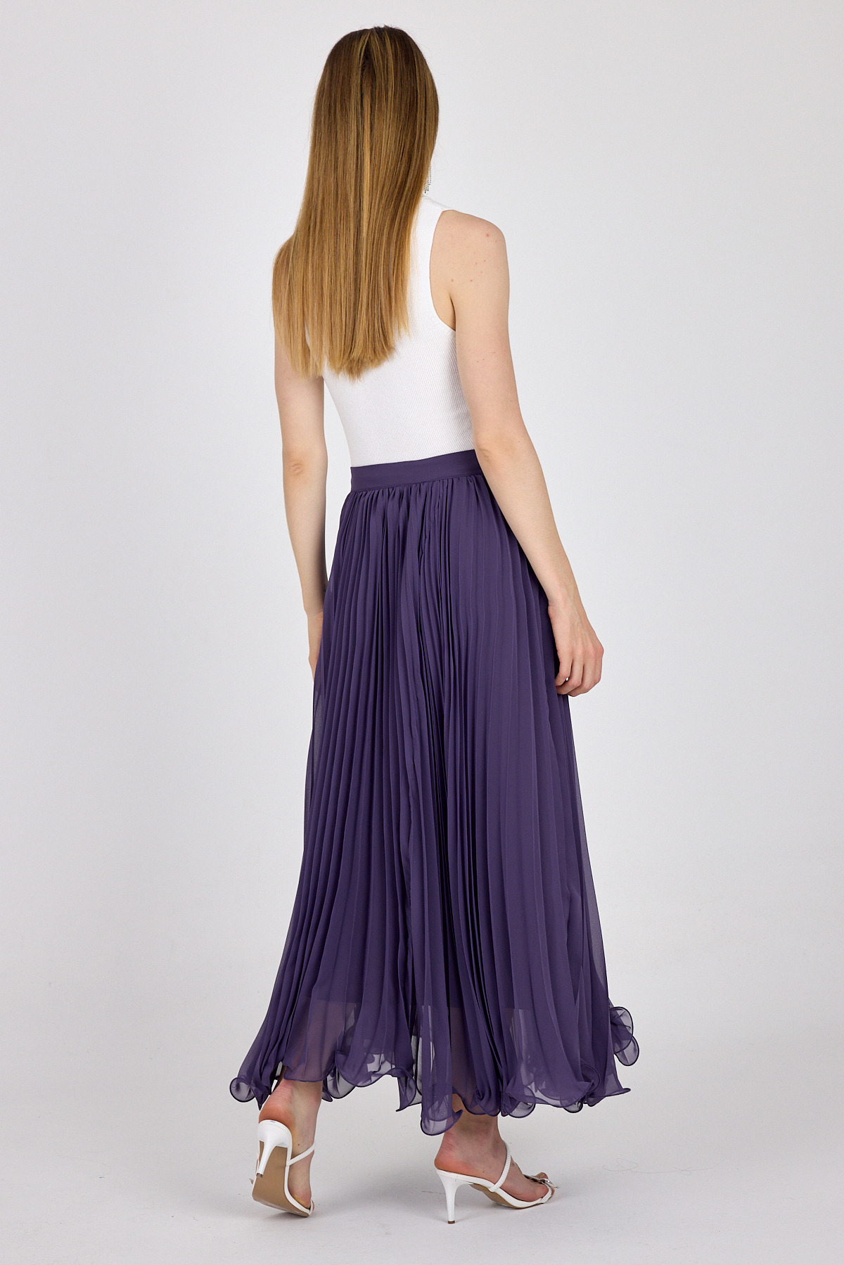 Mor Şifon Piliseli Yüksek Bel Maxi Etek 1003