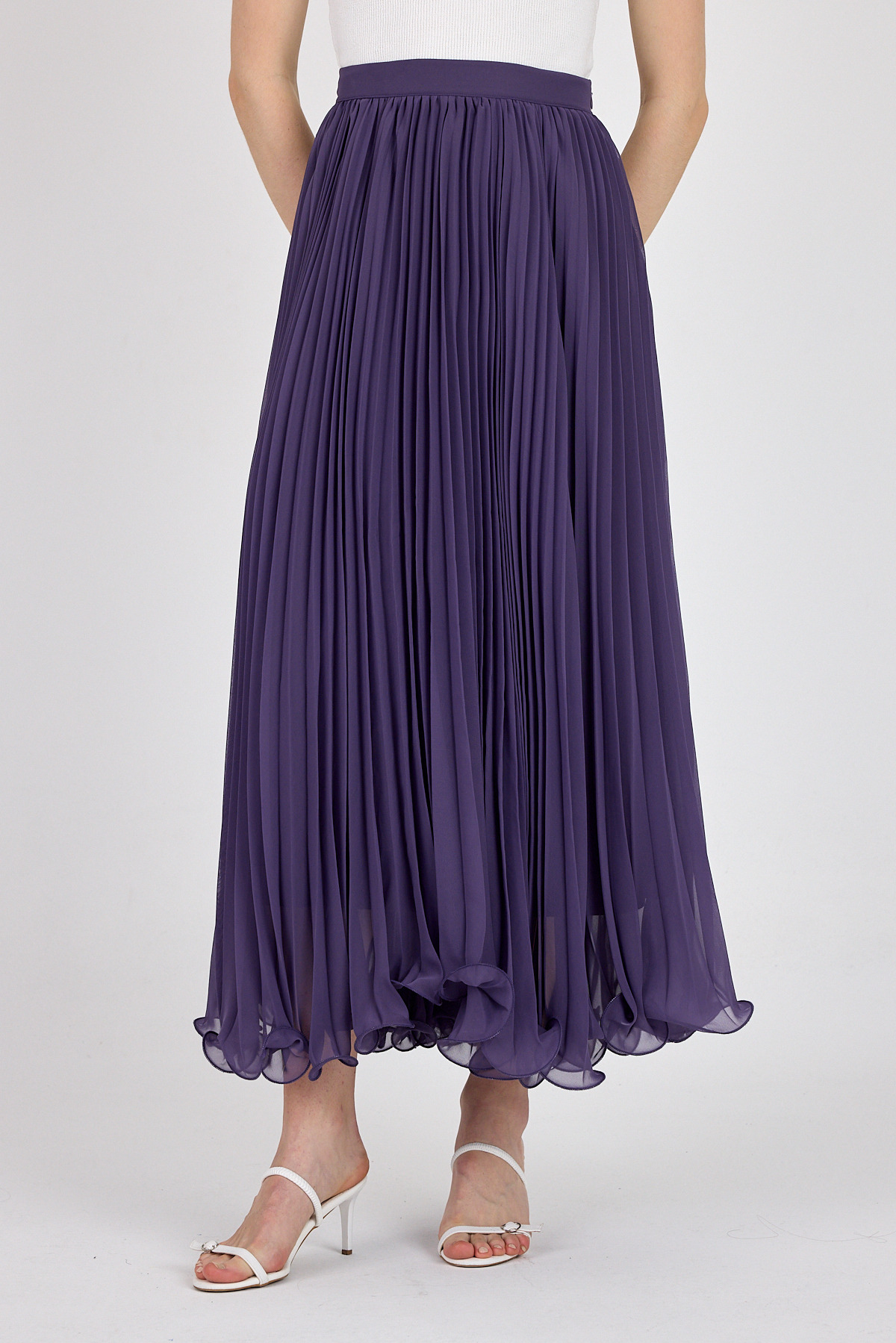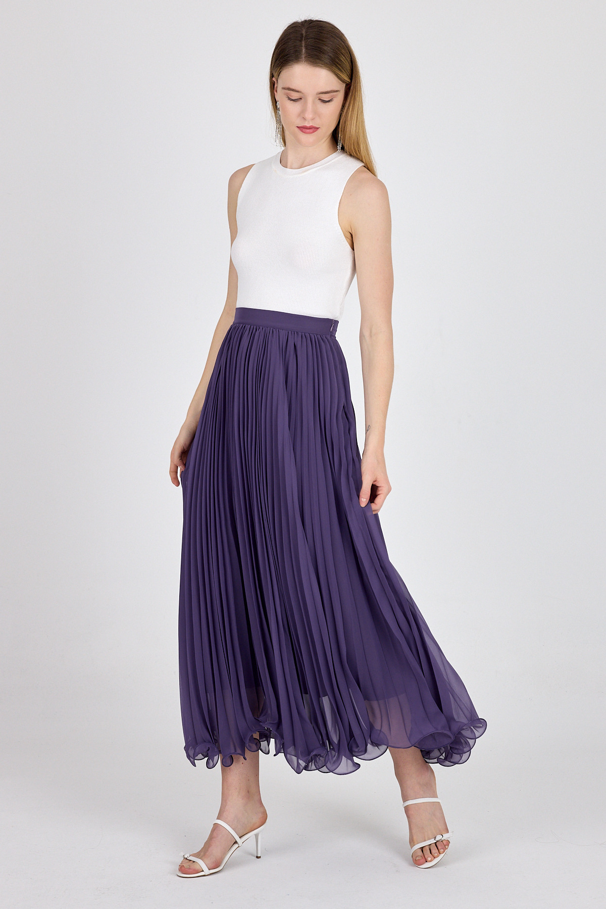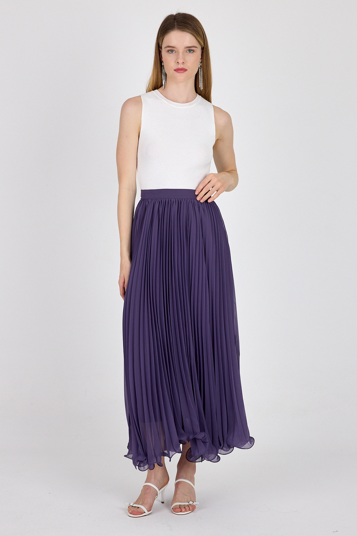 Mor Şifon Piliseli Yüksek Bel Maxi Etek 1003