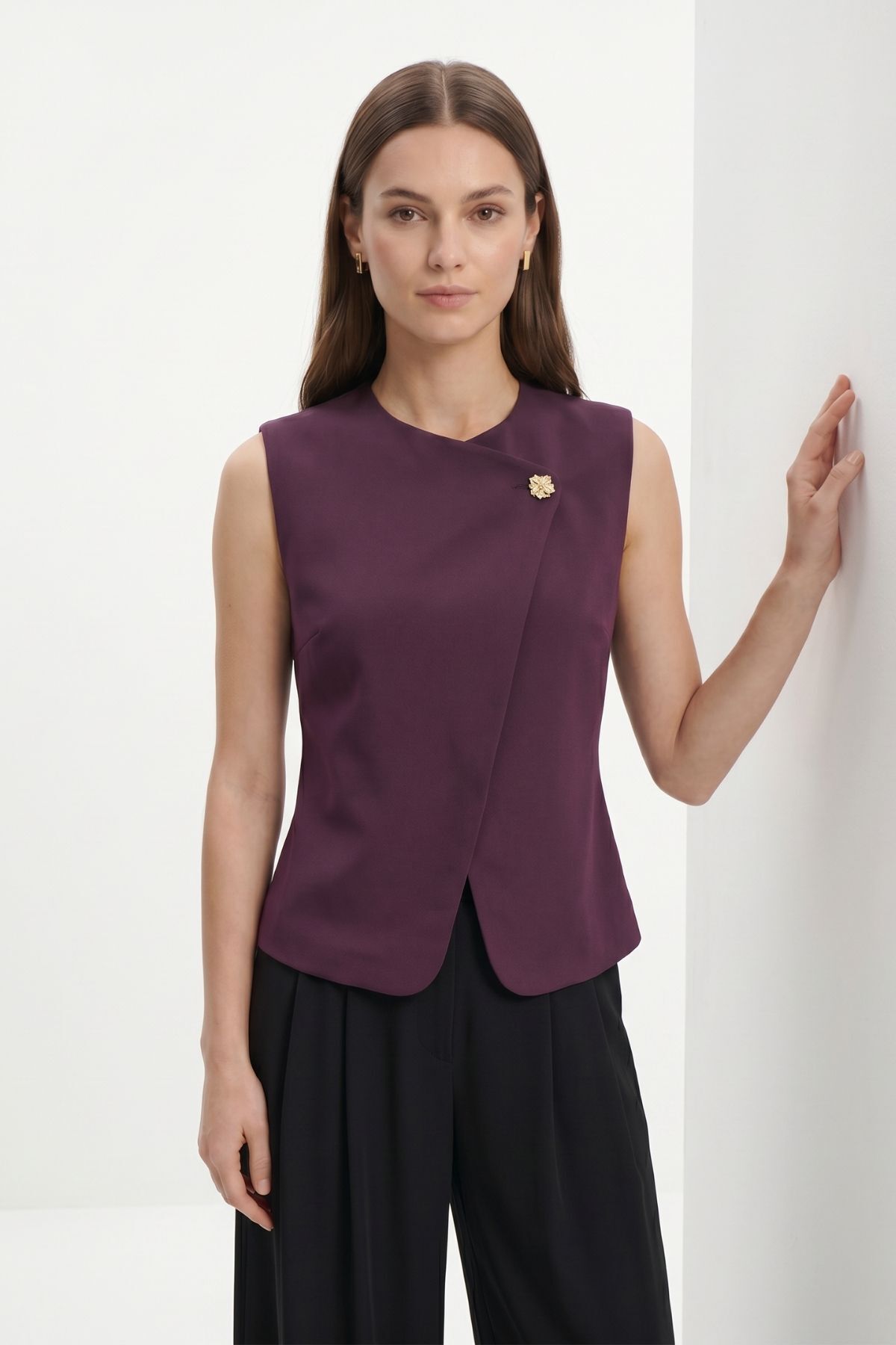 Mürdüm Aksesuar Detaylı Yelek 8371A