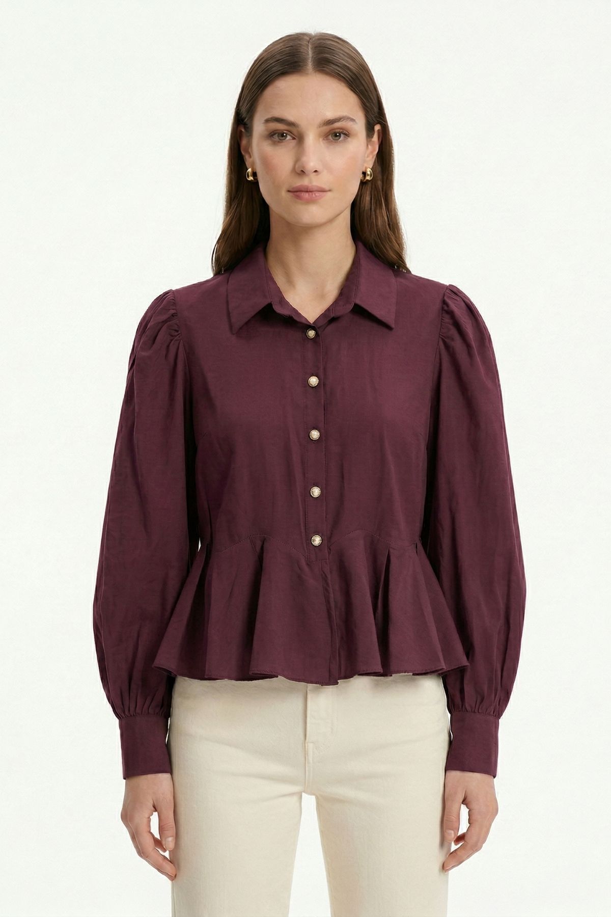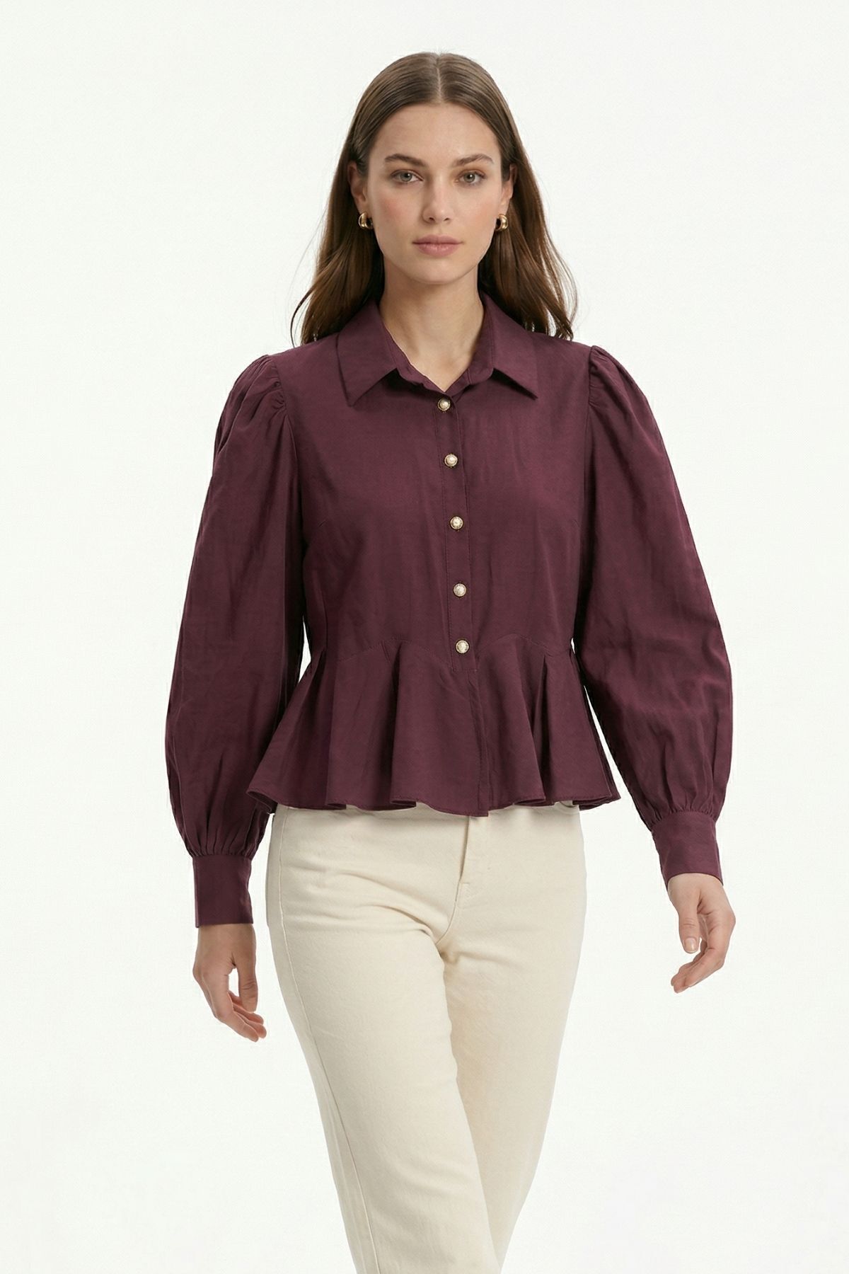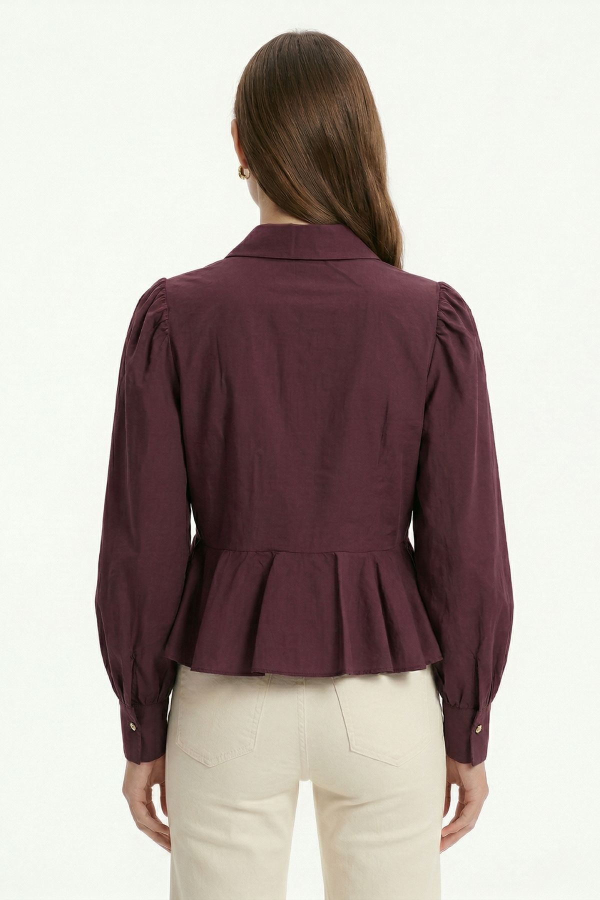 Mürdüm Balon Kollu Volanlı Bluz 0095