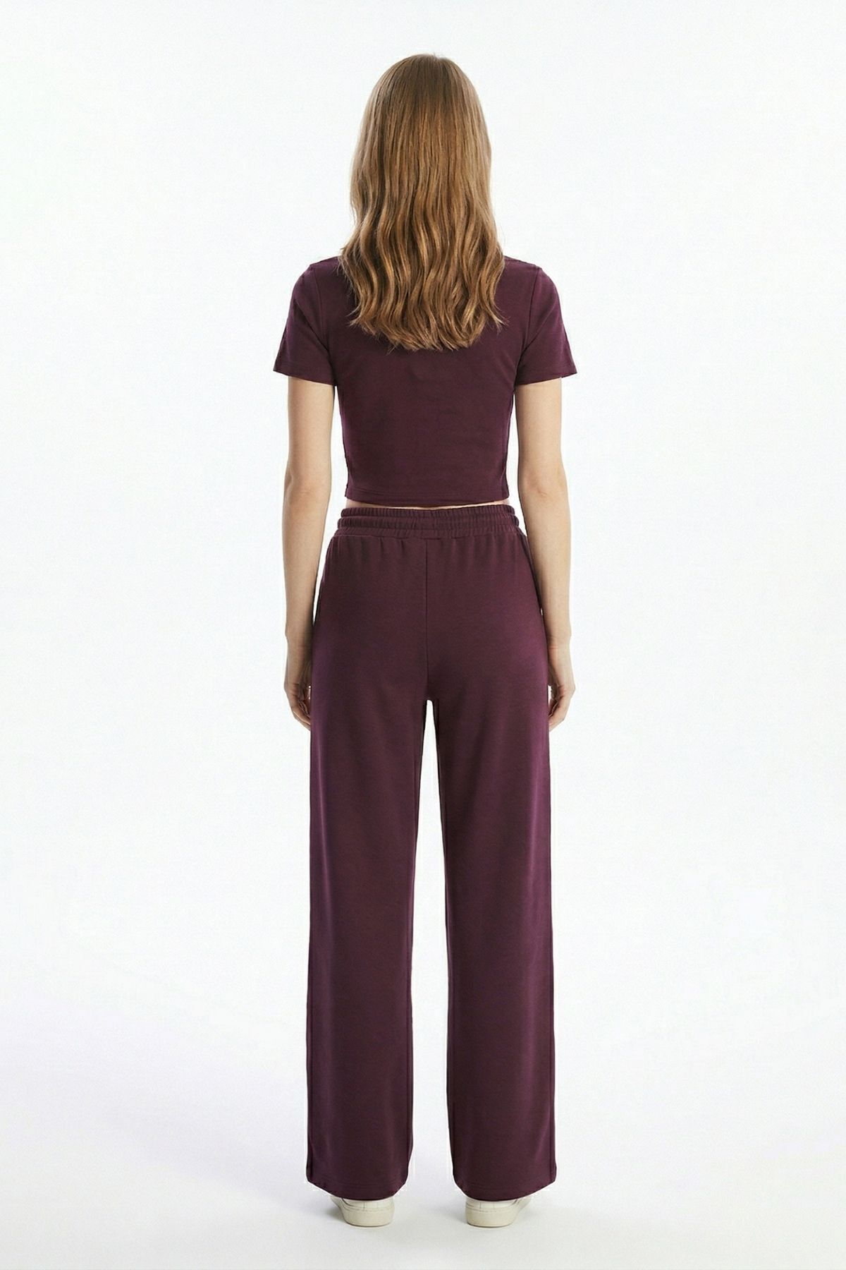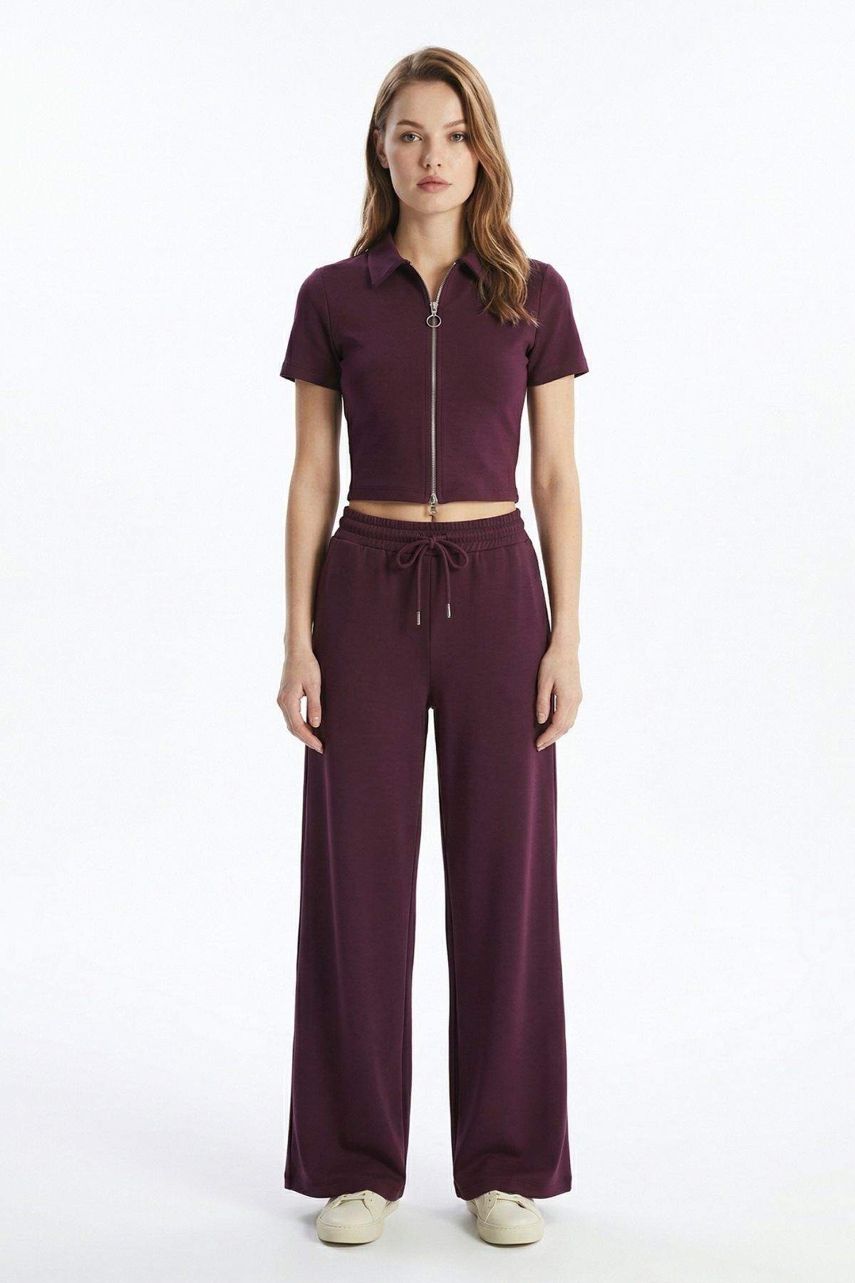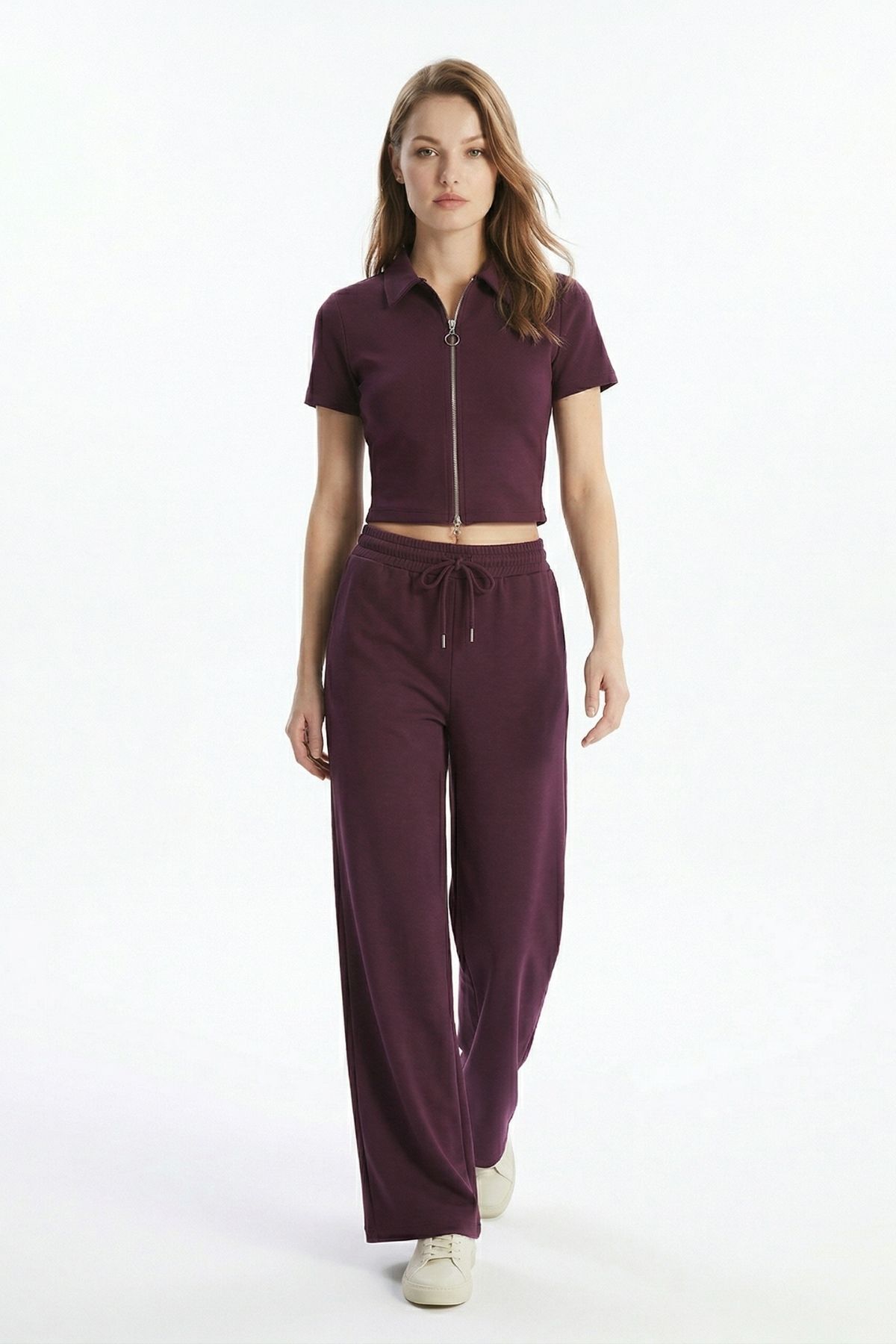 Mürdüm Fermuarlı Gömlek Yaka Eşofman Takım 0426