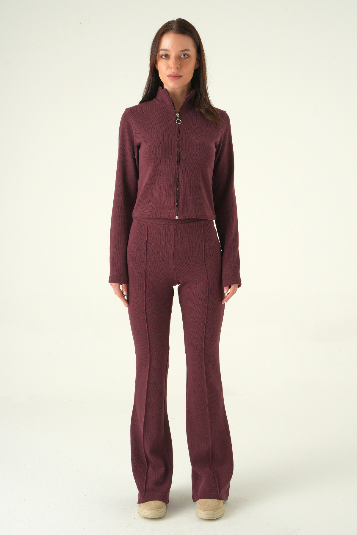Mürdüm İspanyol Paça Pantolon Hırka Takım 3098A