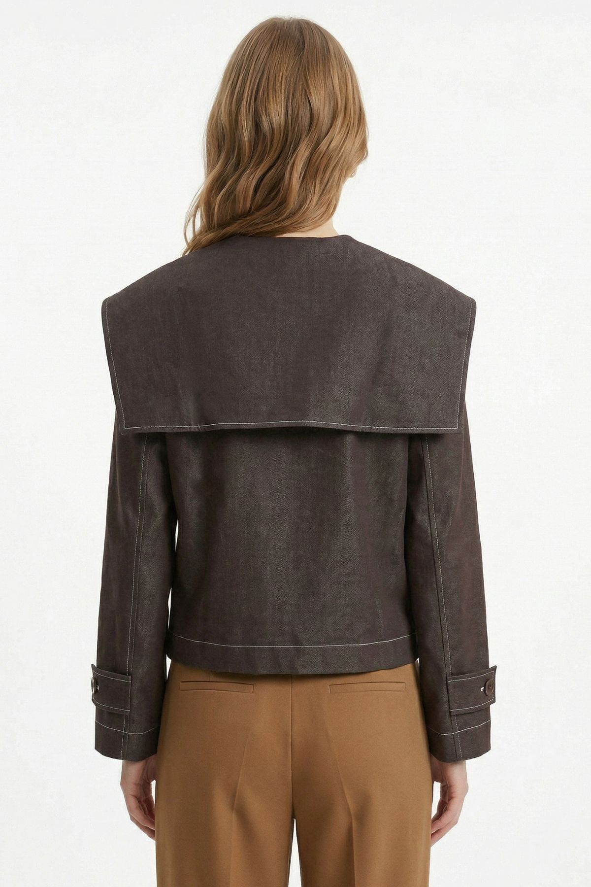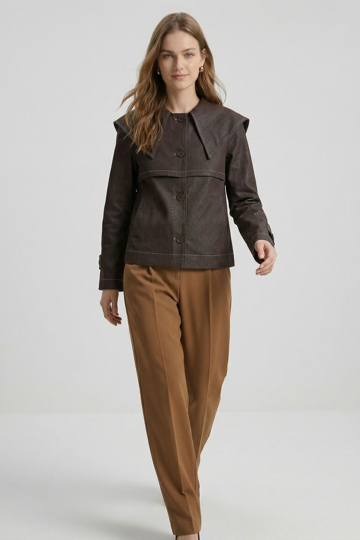 Mürdüm Pelerin Detay Düğmeli Denim Ceket 7681