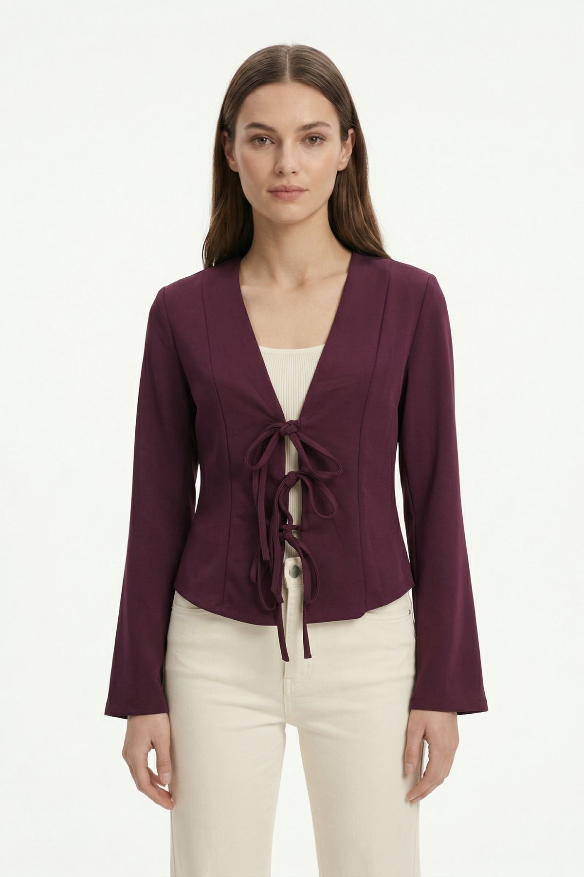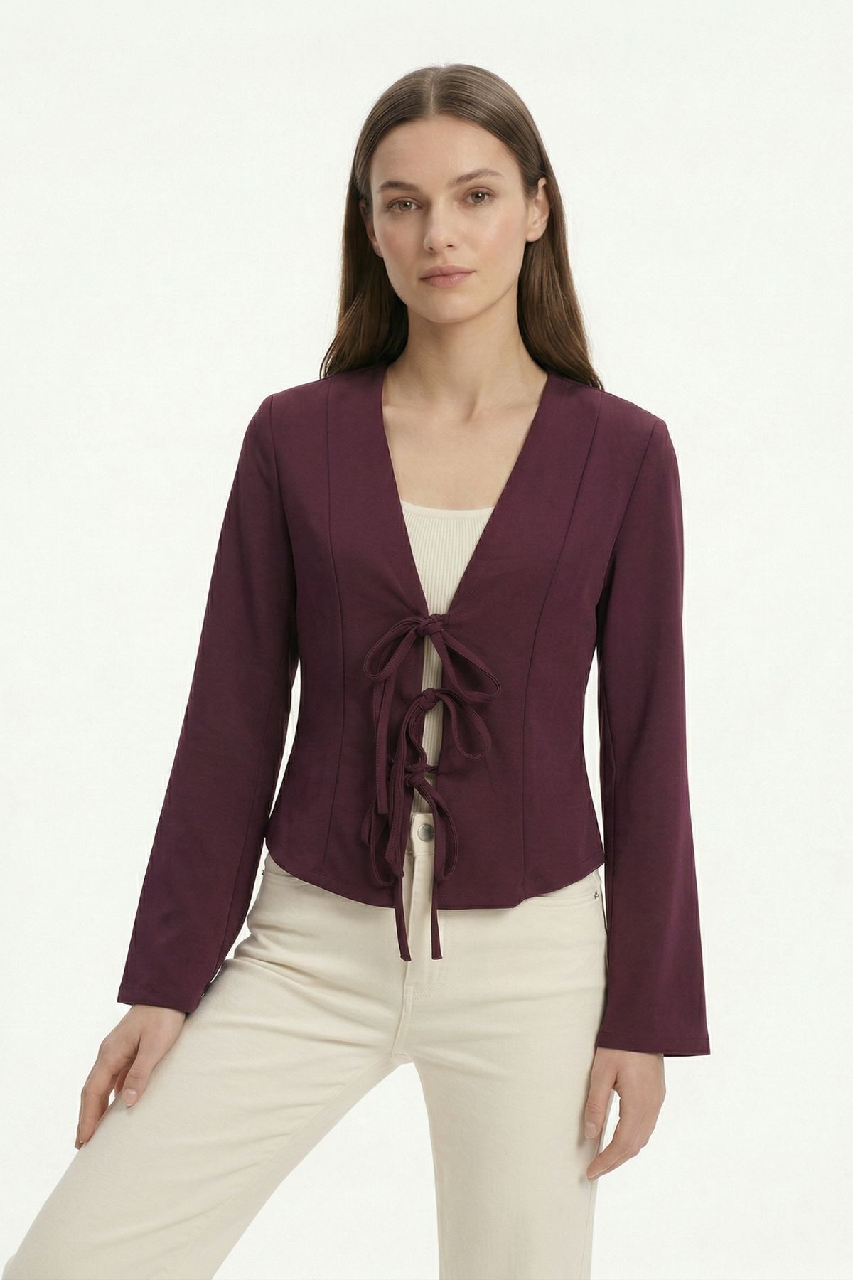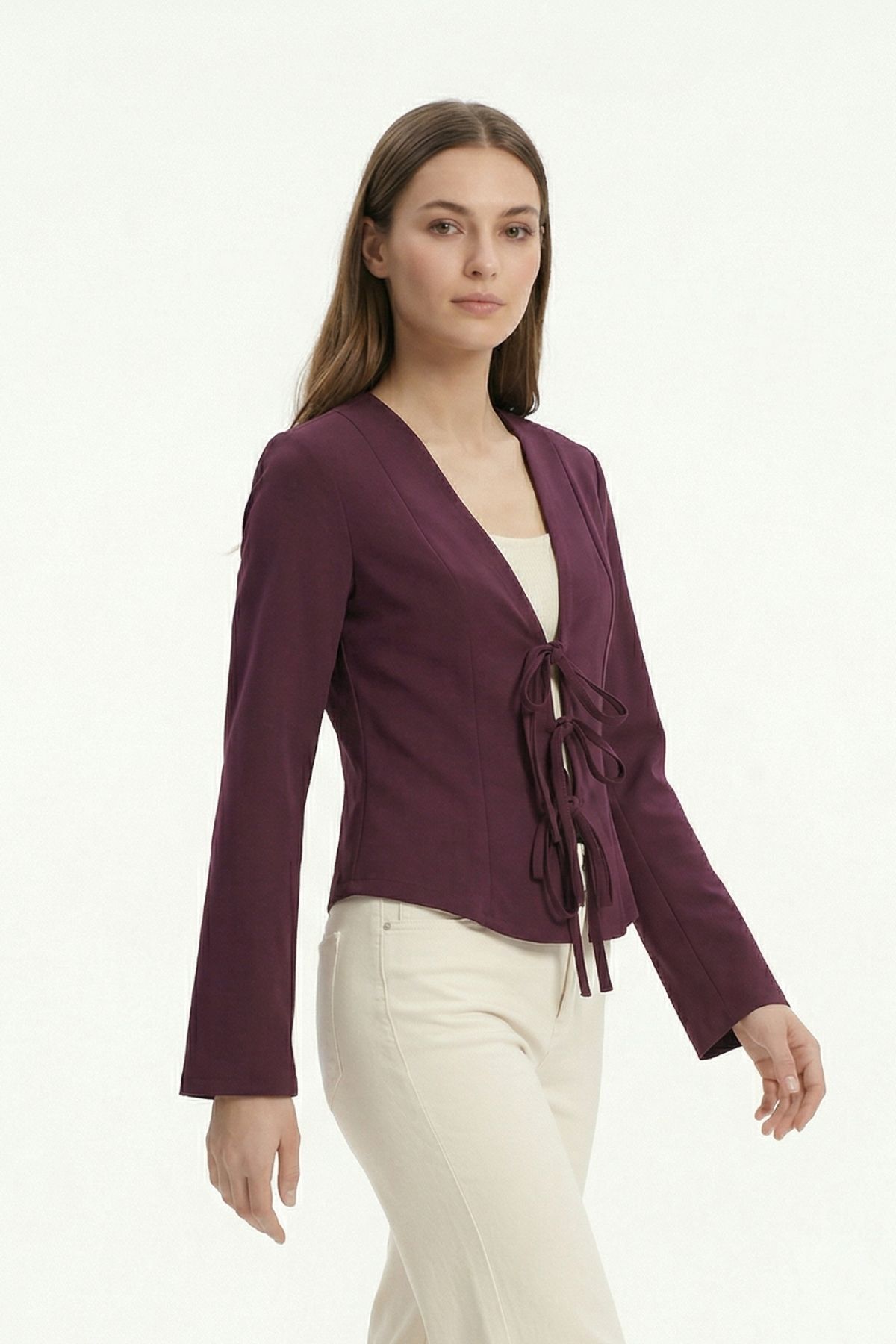Mürdüm Pileli Bağlamalı Hırka 8142