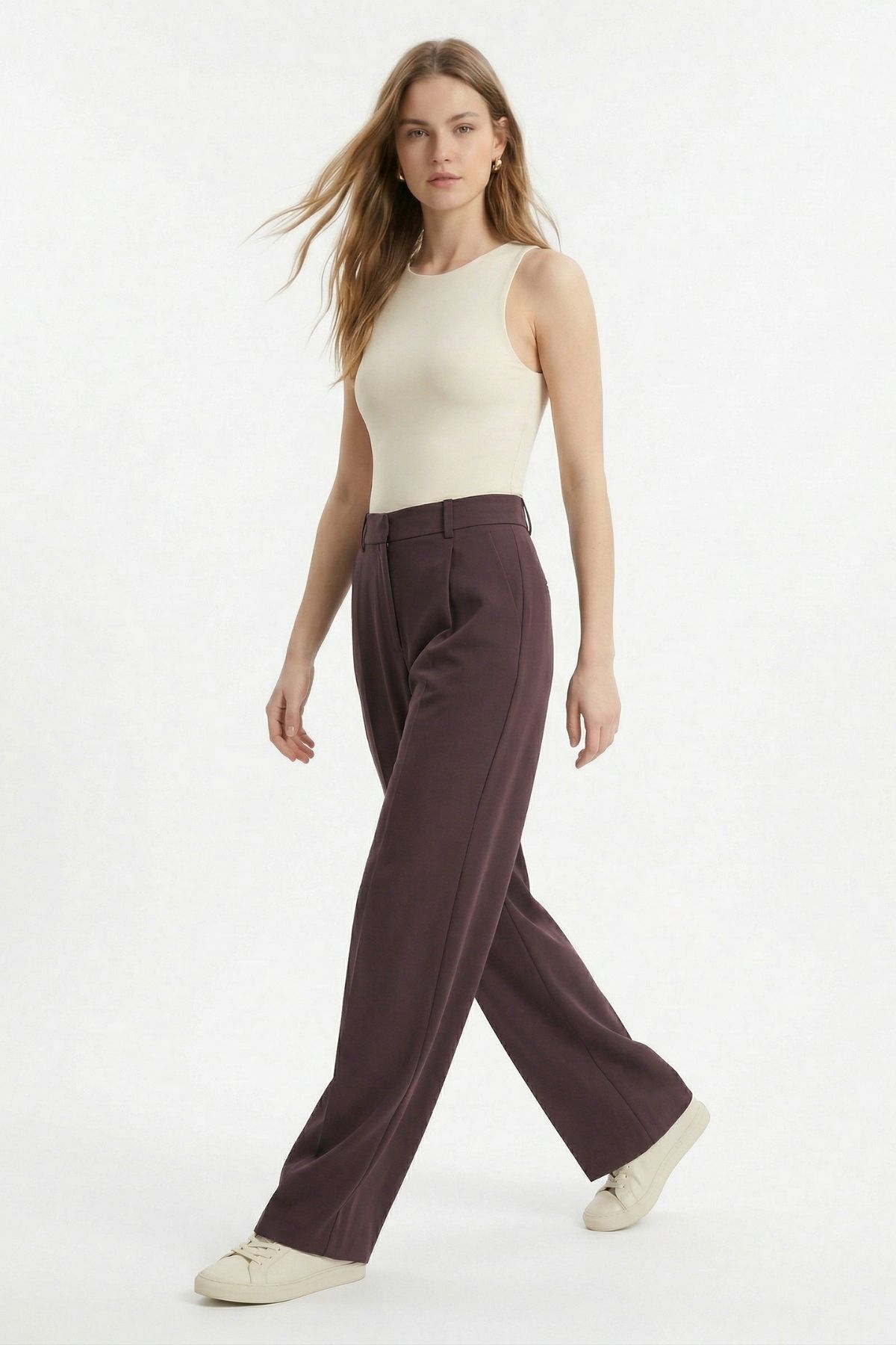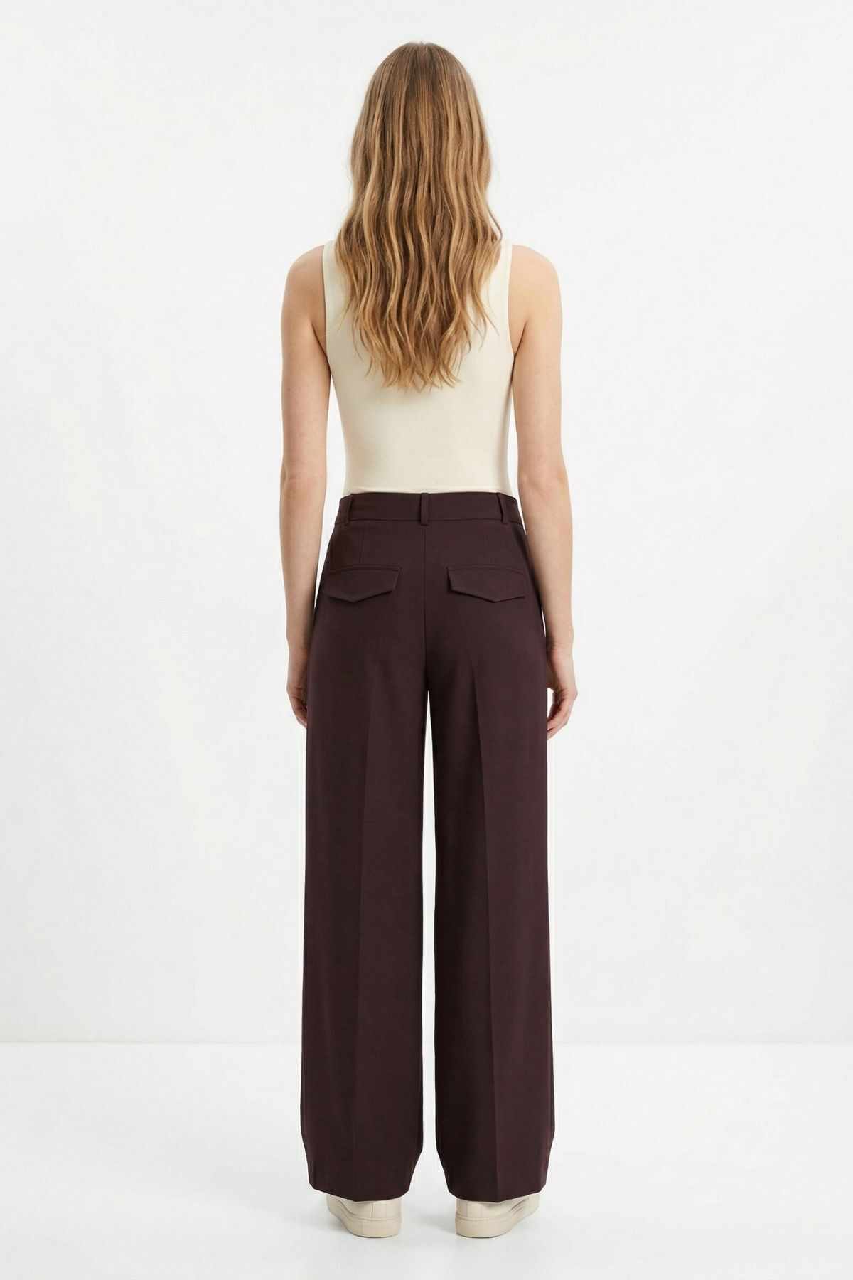 Mürdüm Pileli Geniş Paça Pantolon 3867 - RAYS Mürdüm Pileli Geniş Paça Pantolon 3867 - RAYS (1)