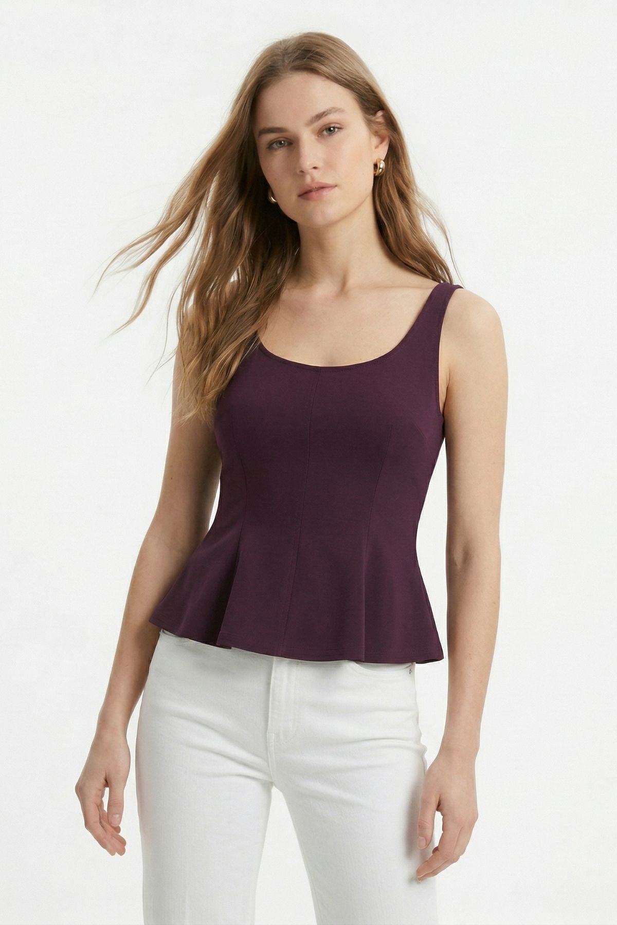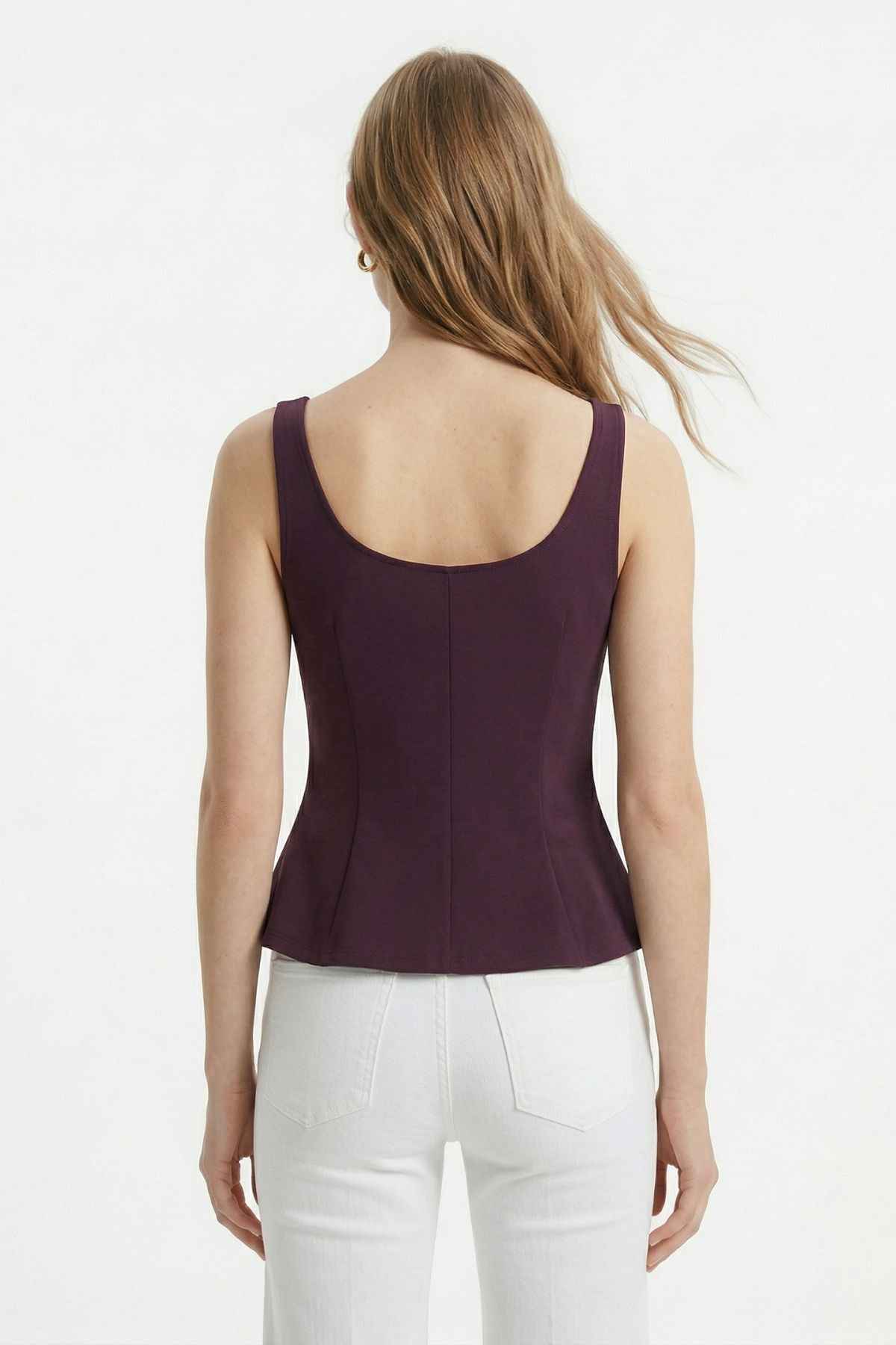 Mürdüm Sıfır Kol U Yaka Bluz 2786