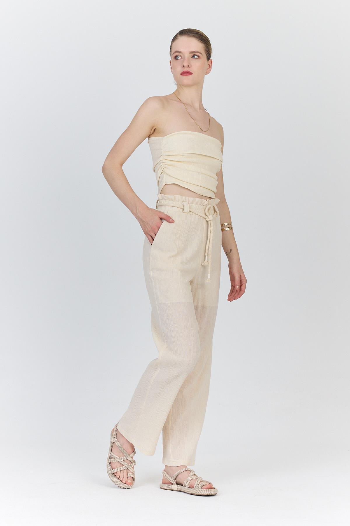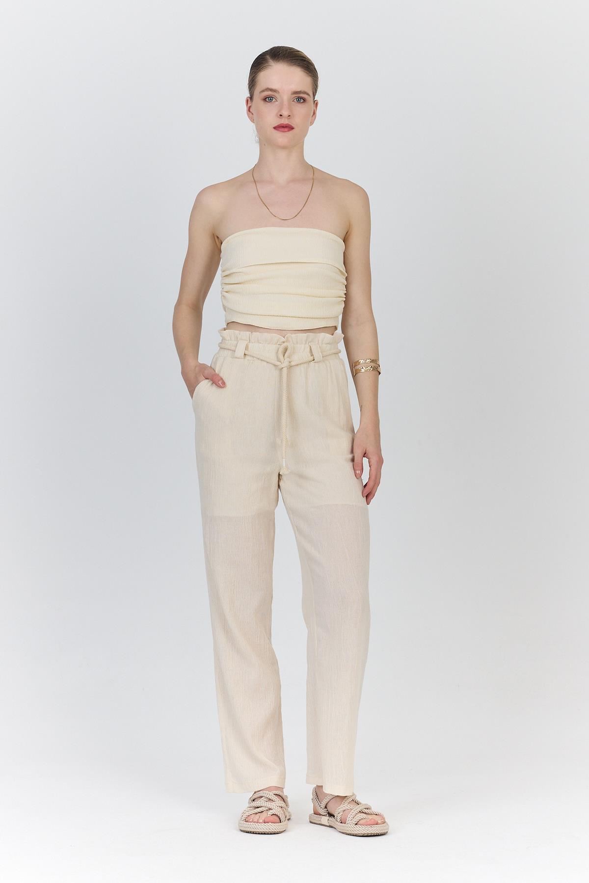 Beyaz Bağlamalı Palazzo Pantolon 3884 - RAYS