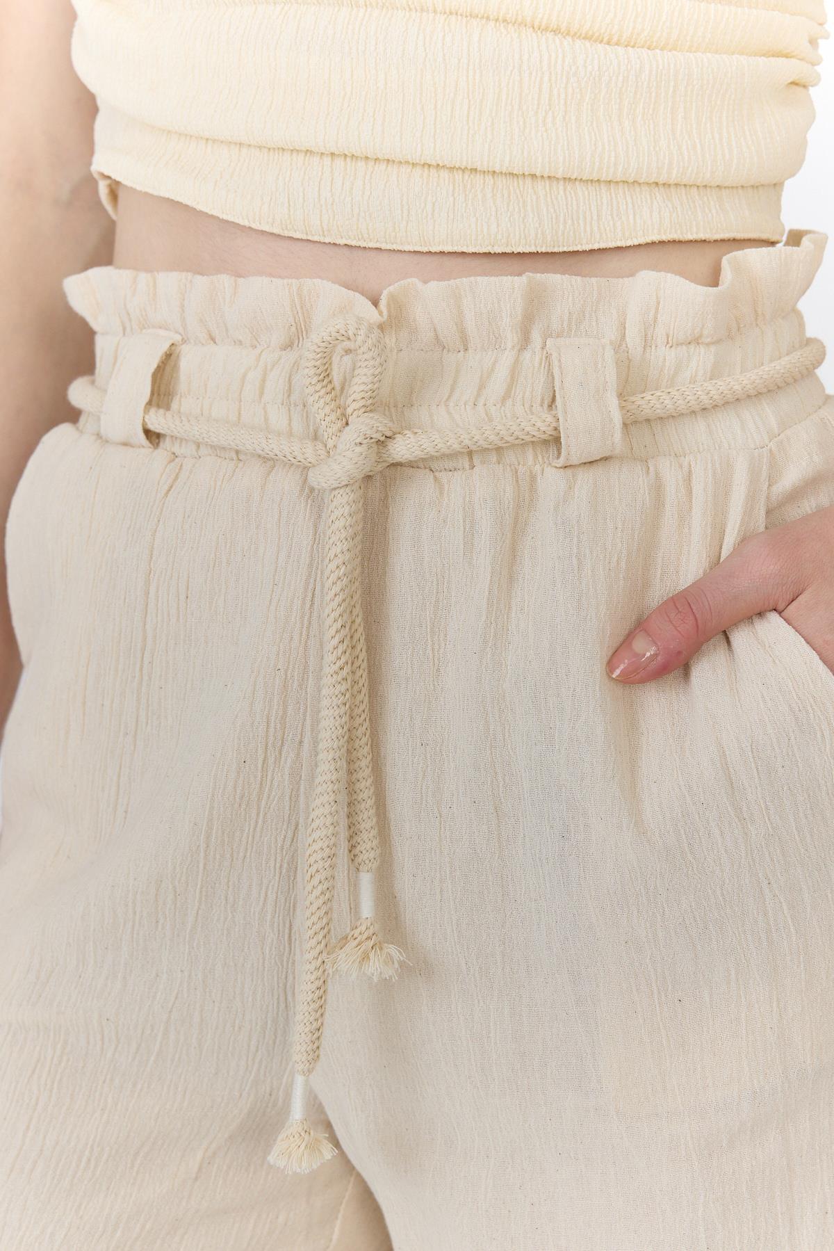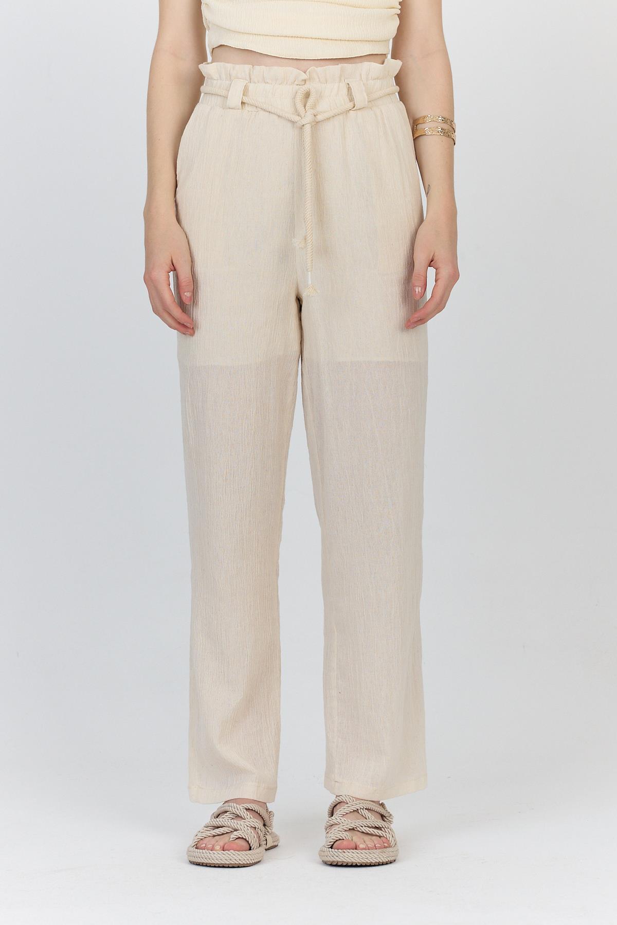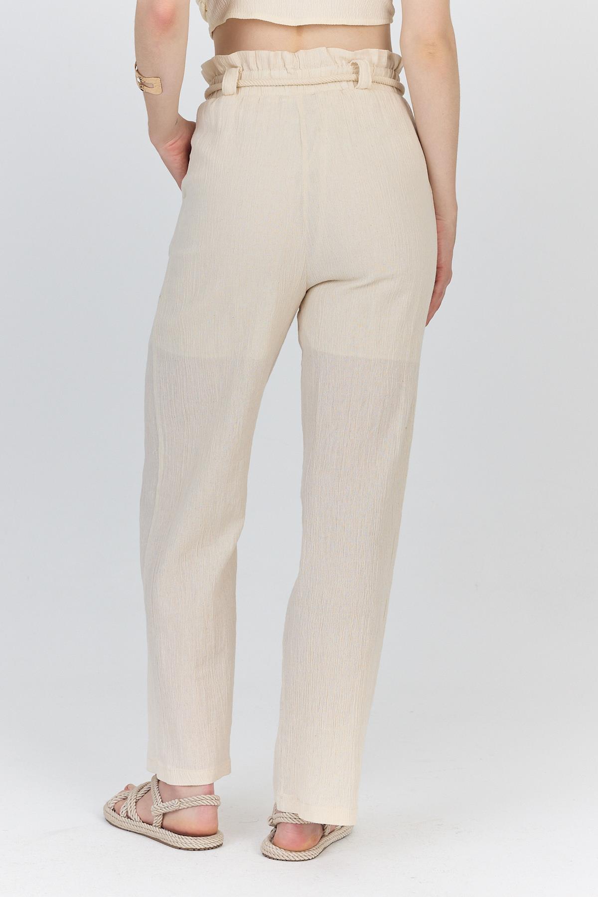 Natural %100 Pamuk Astarlı Yüksek Bel Bağlamalı Kemer Detaylı Pantolon6941