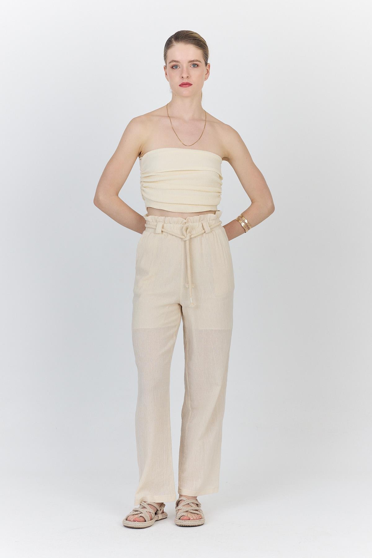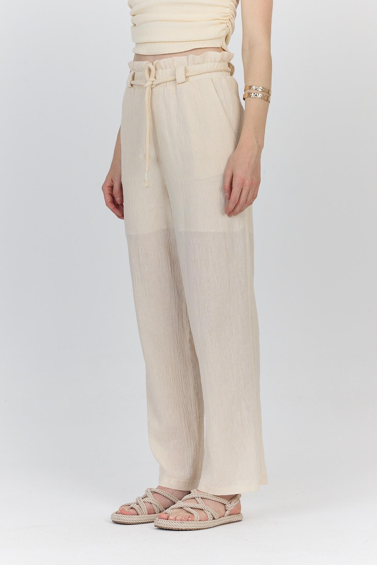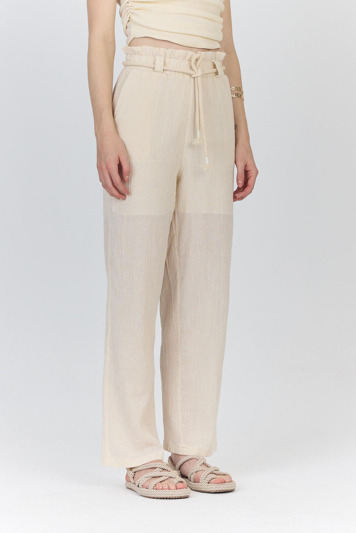 Natural %100 Pamuk Astarlı Yüksek Bel Bağlamalı Kemer Detaylı Pantolon6941