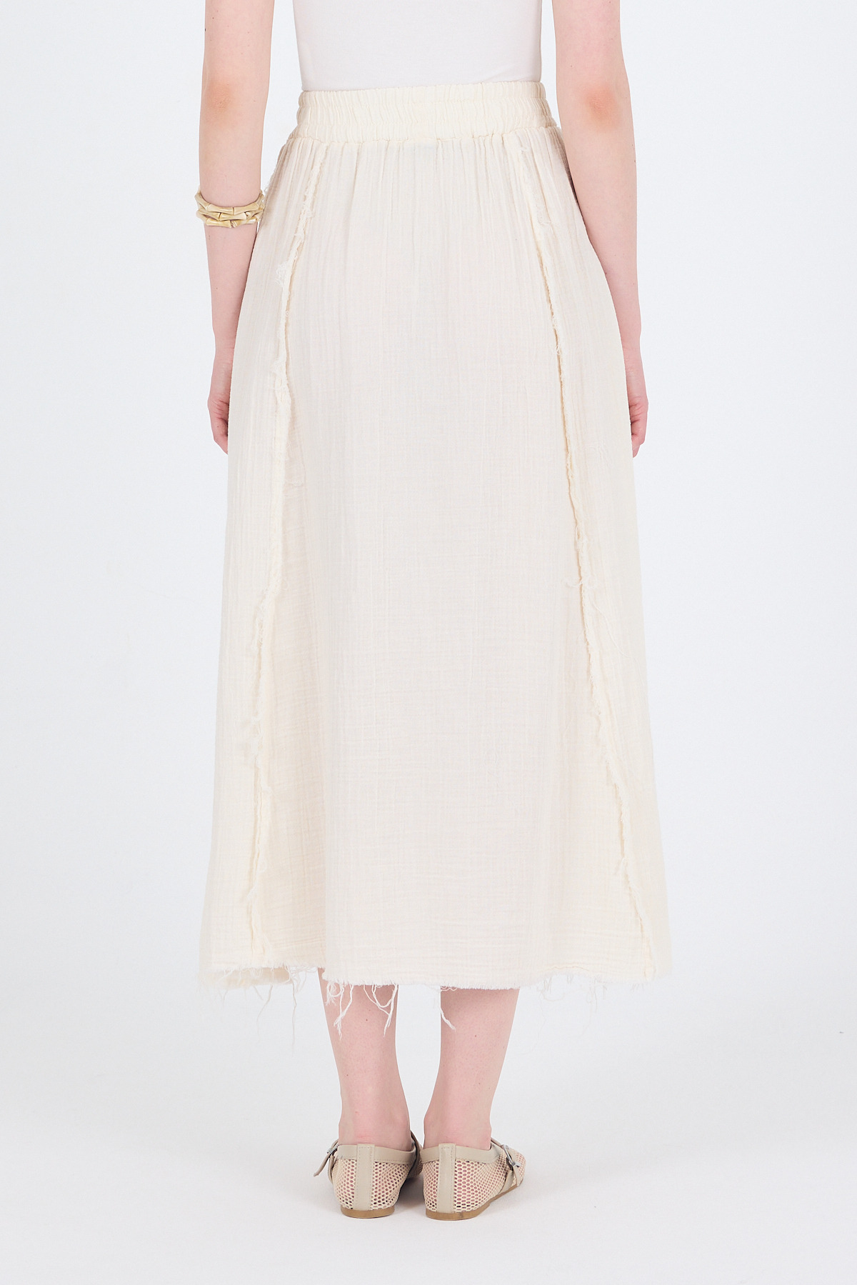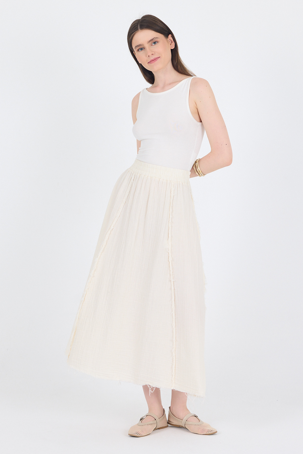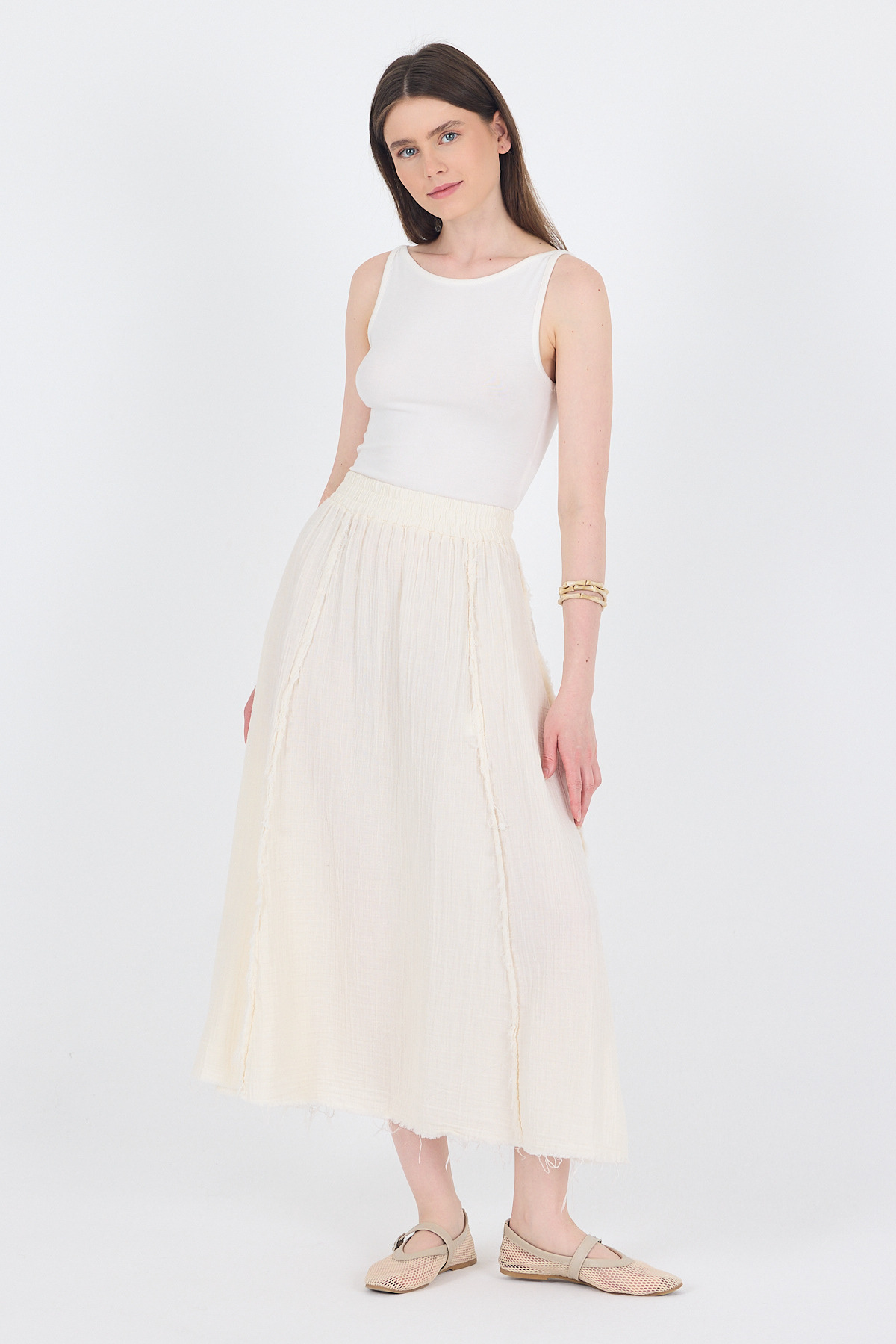 Natural %100 Pamuk Müslin Midi Etek 7038