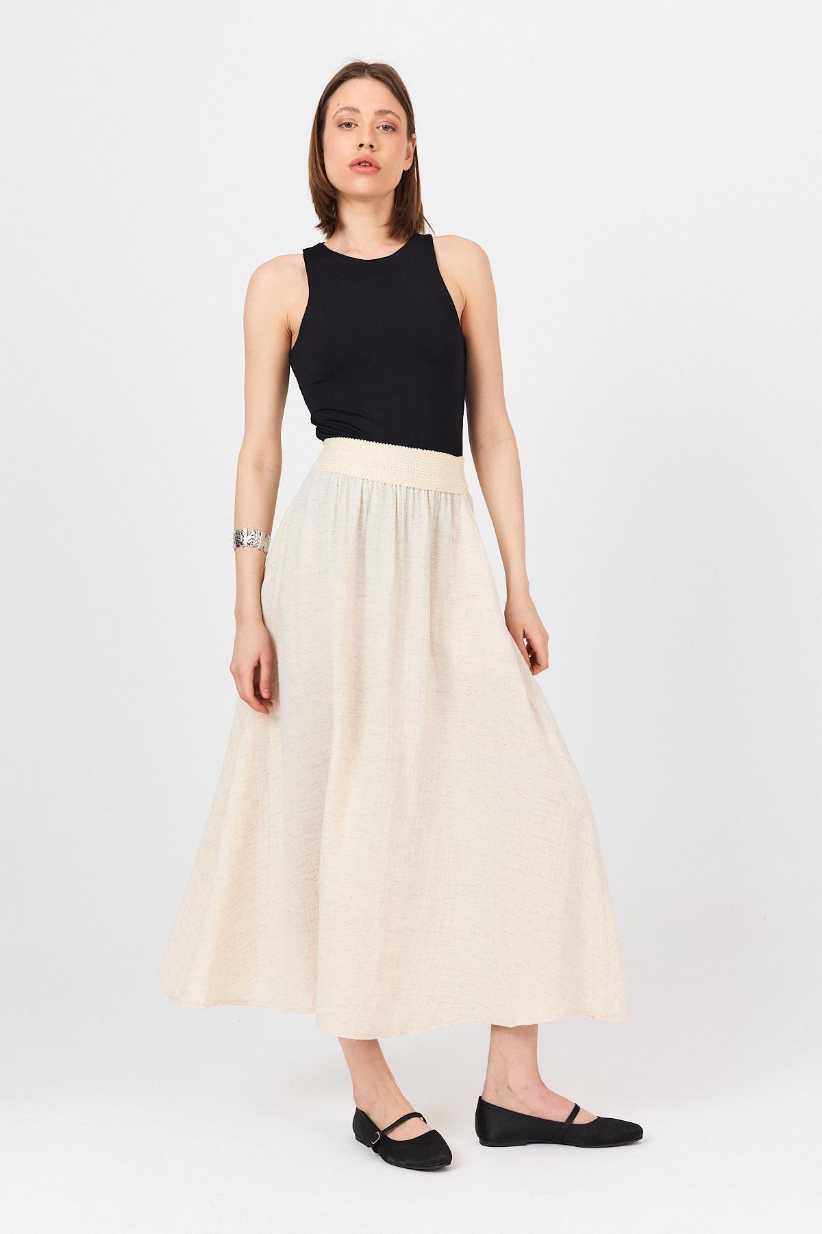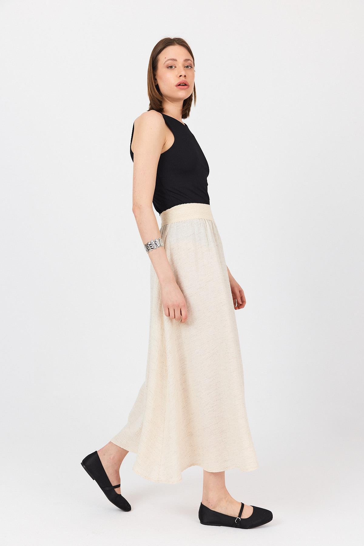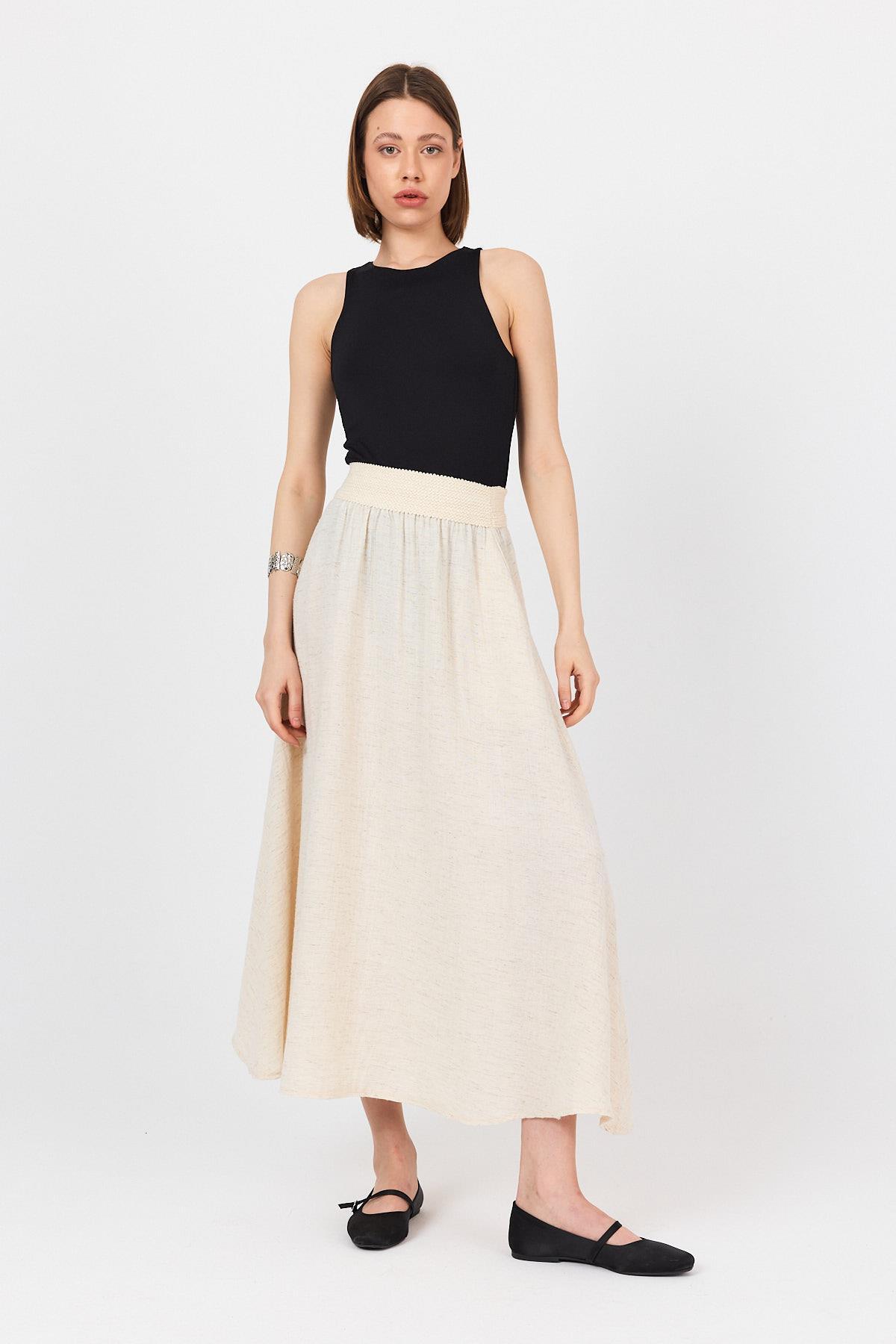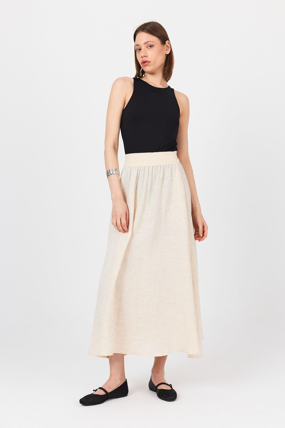 Natural Bel Lastikli Kloş Etek 4718A