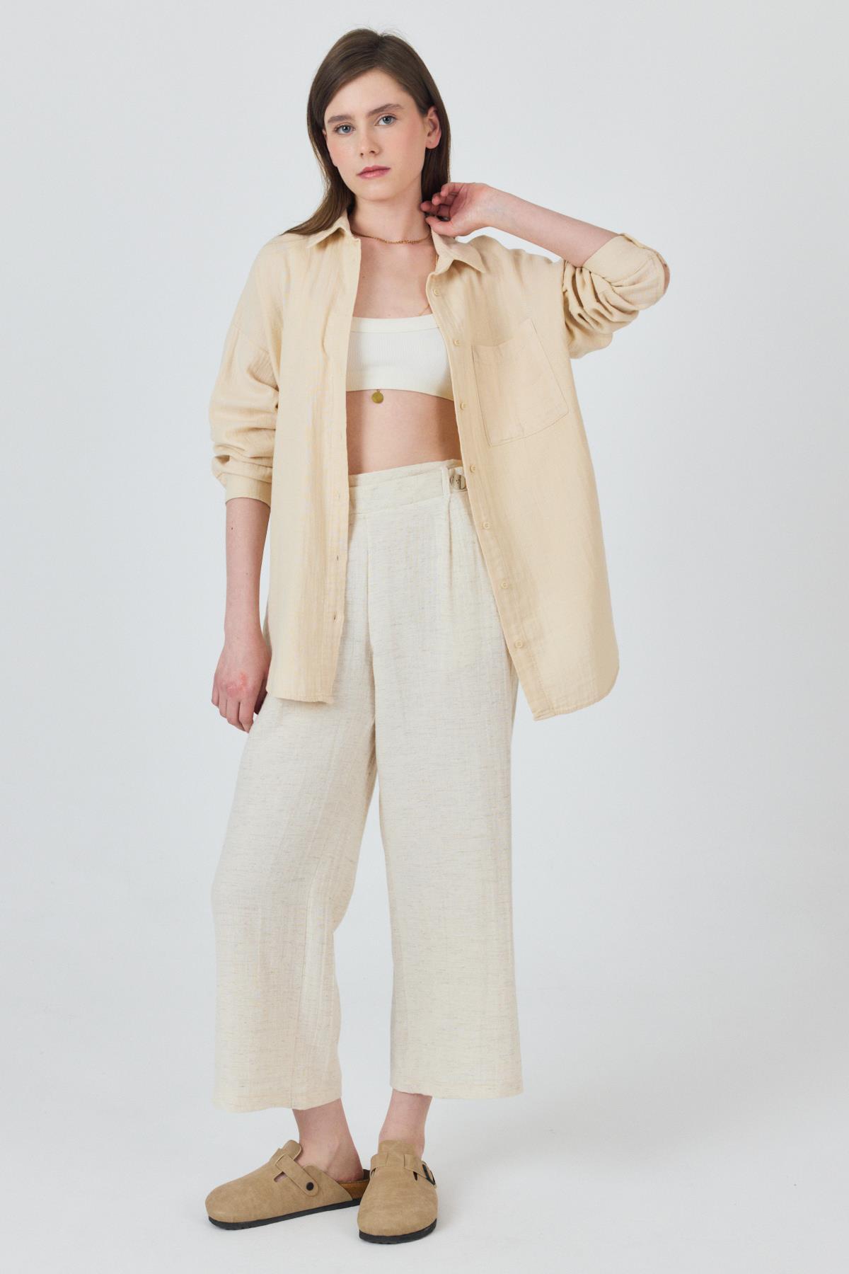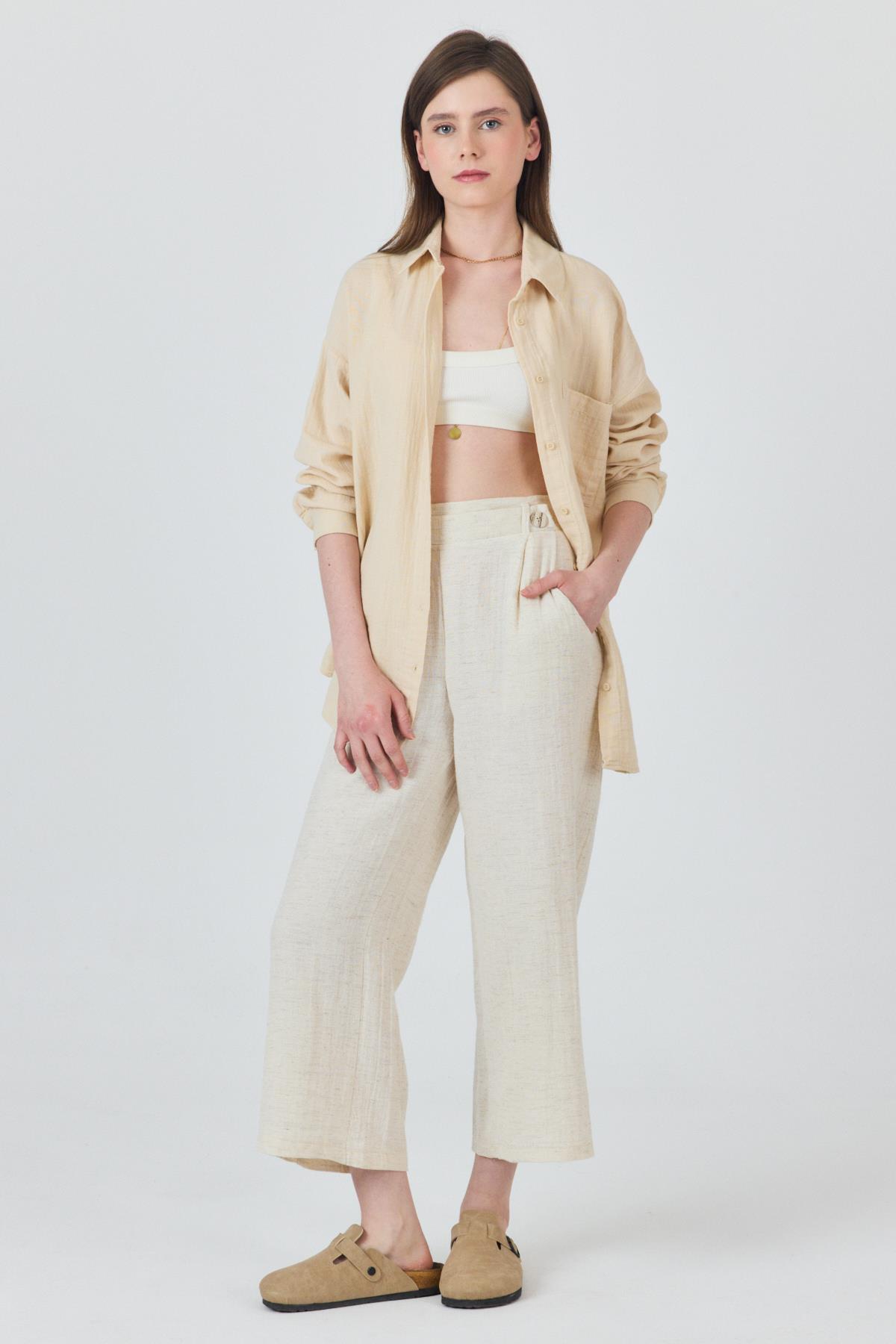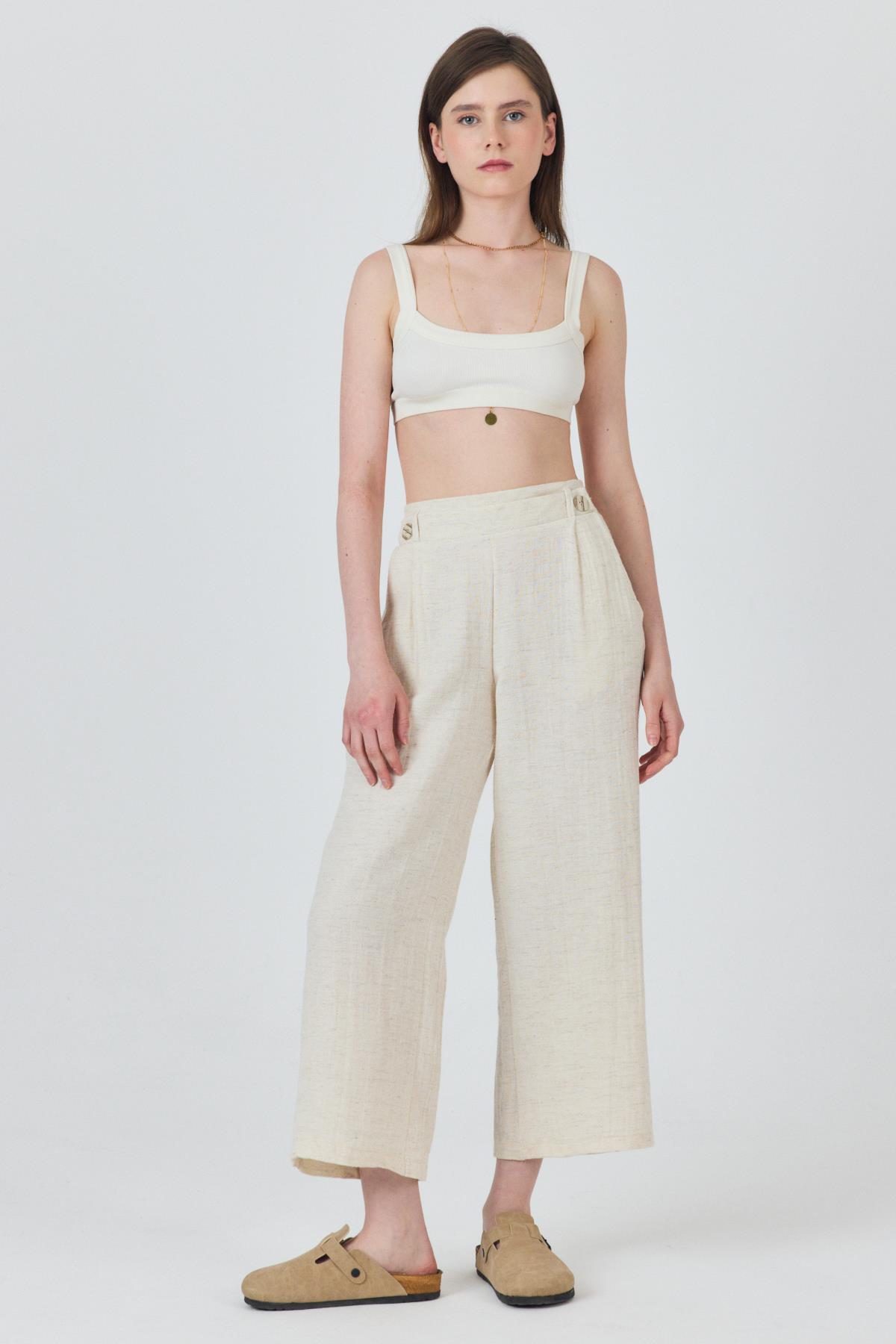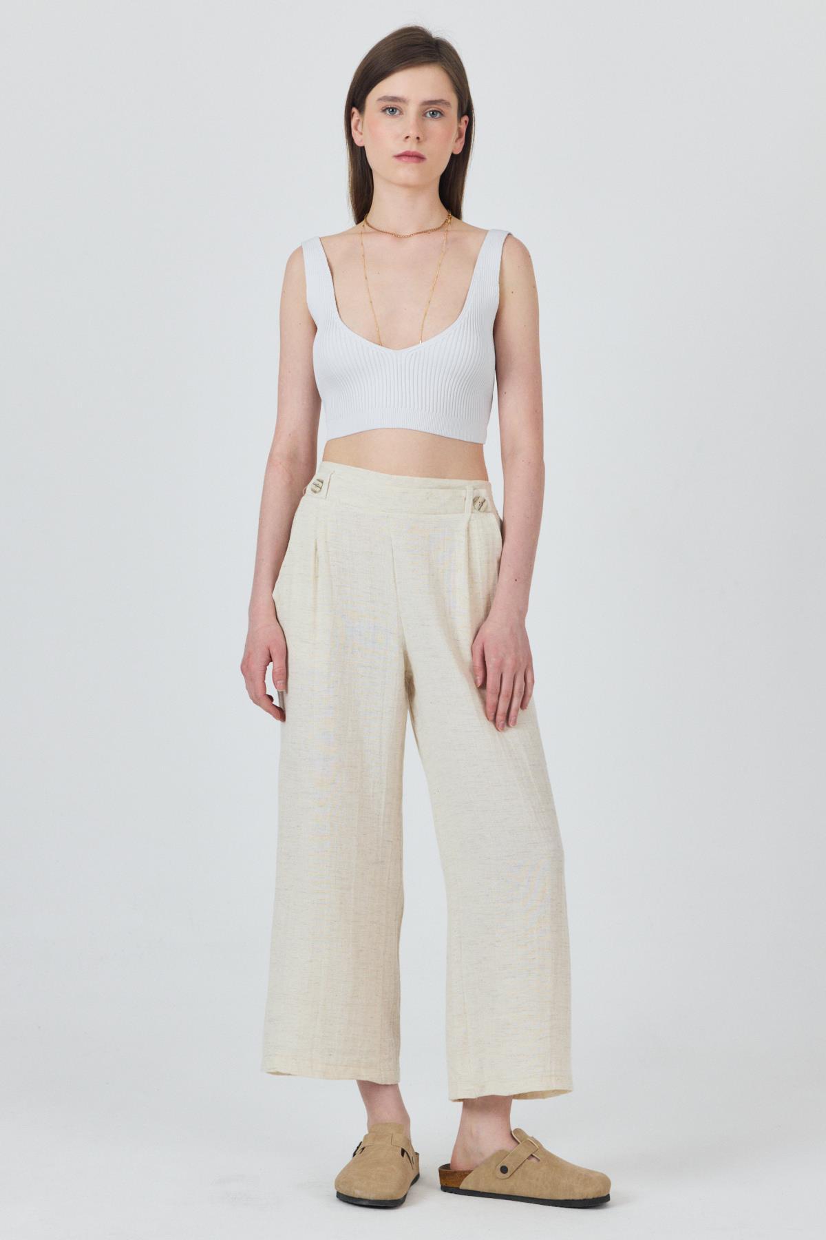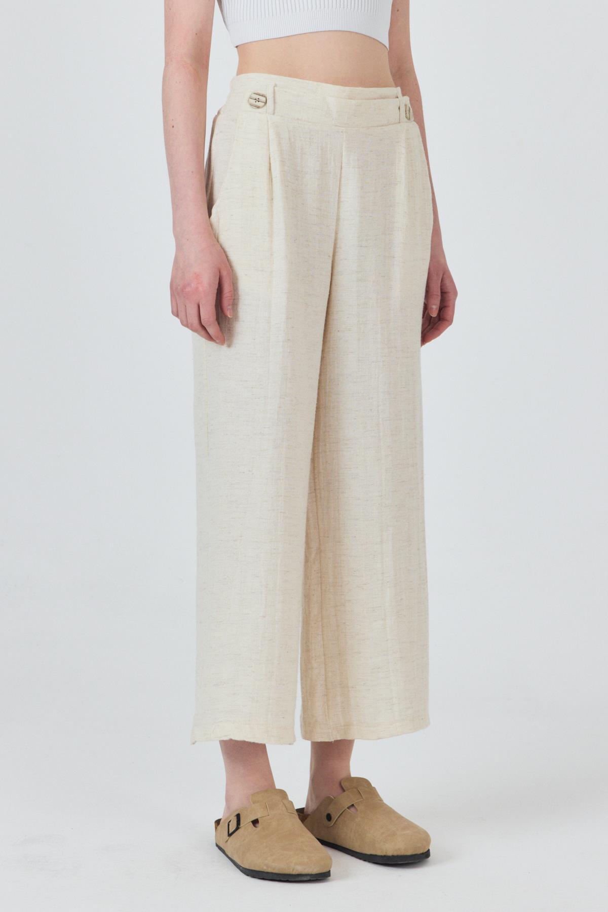 Natural Keten Görünümlü Düğme Detaylı Pantolon 4720A