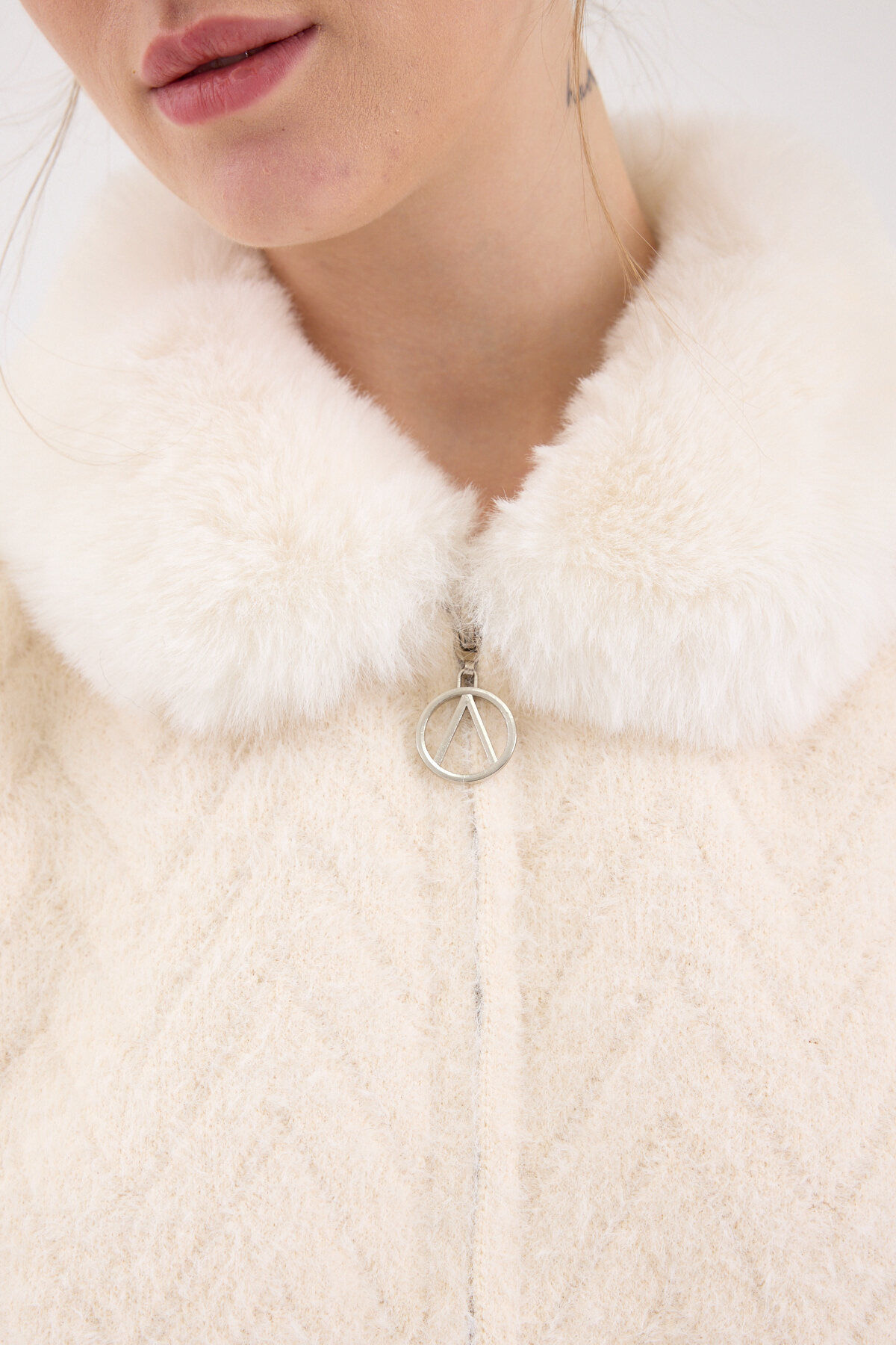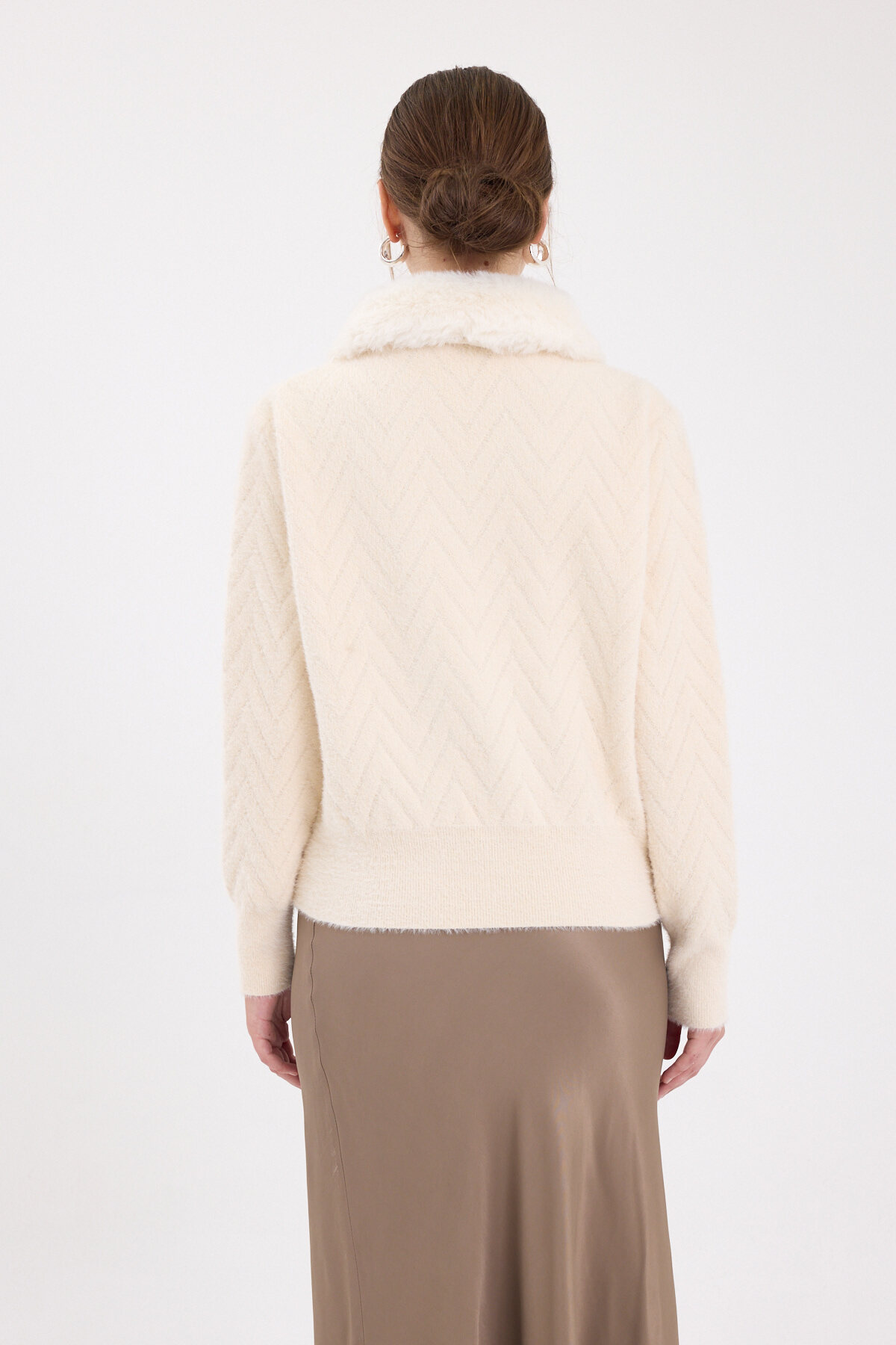 Natural Yaka Kürk Detaylı Kadın Hırka 6680