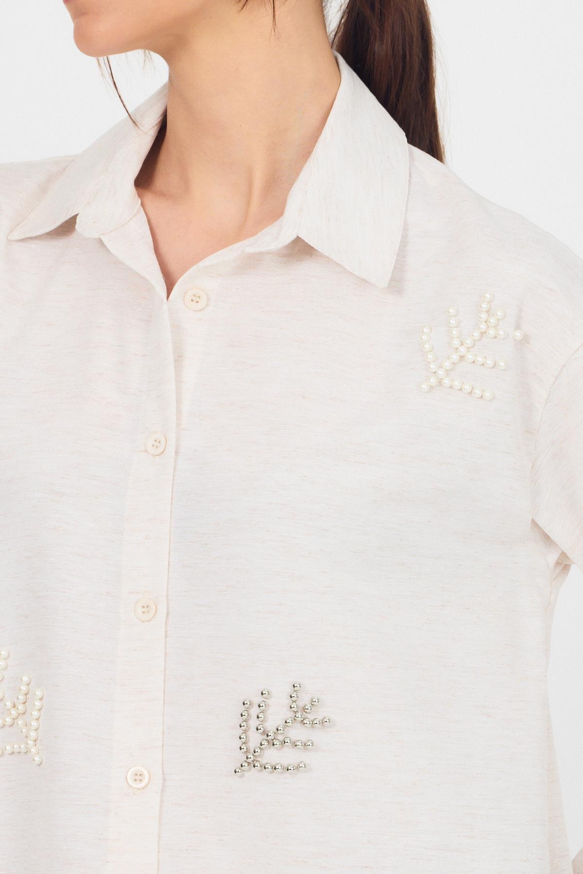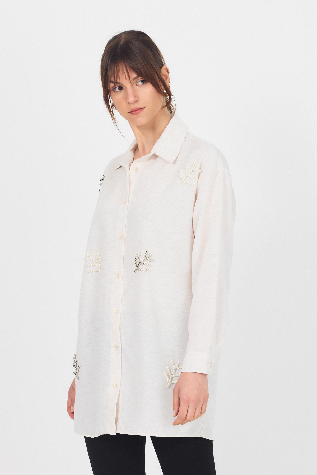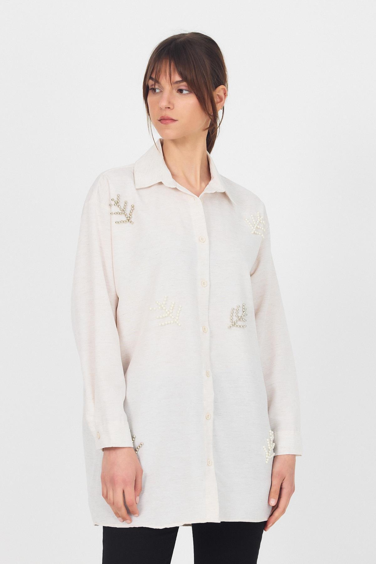 Natural Yaprak Desenli İncili Gömlek 4660A