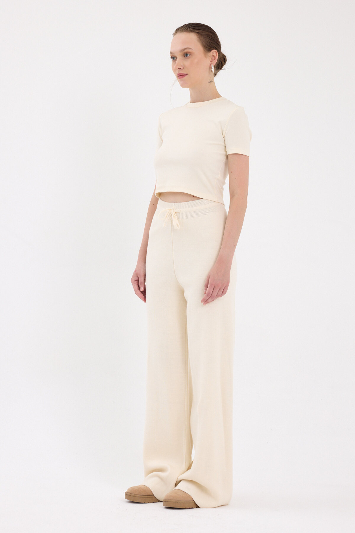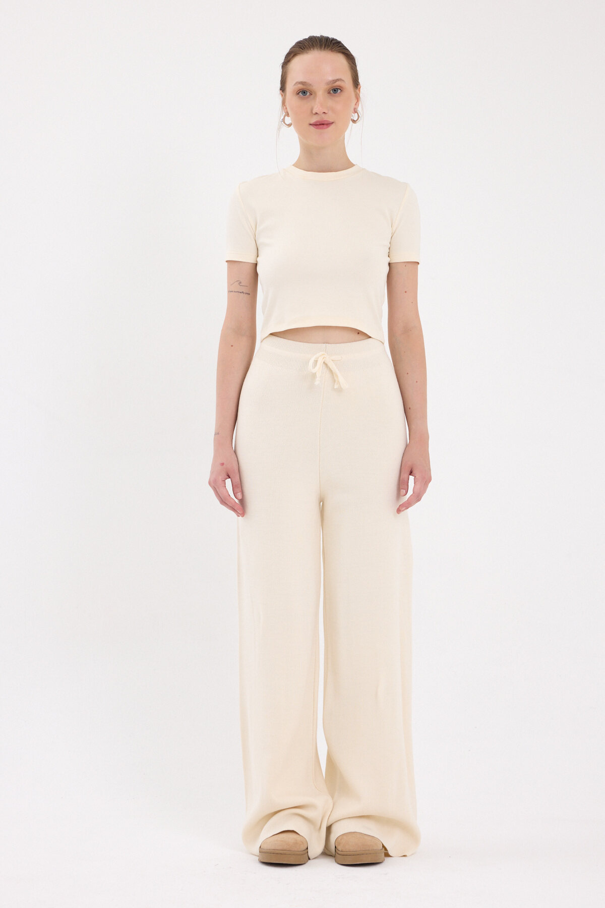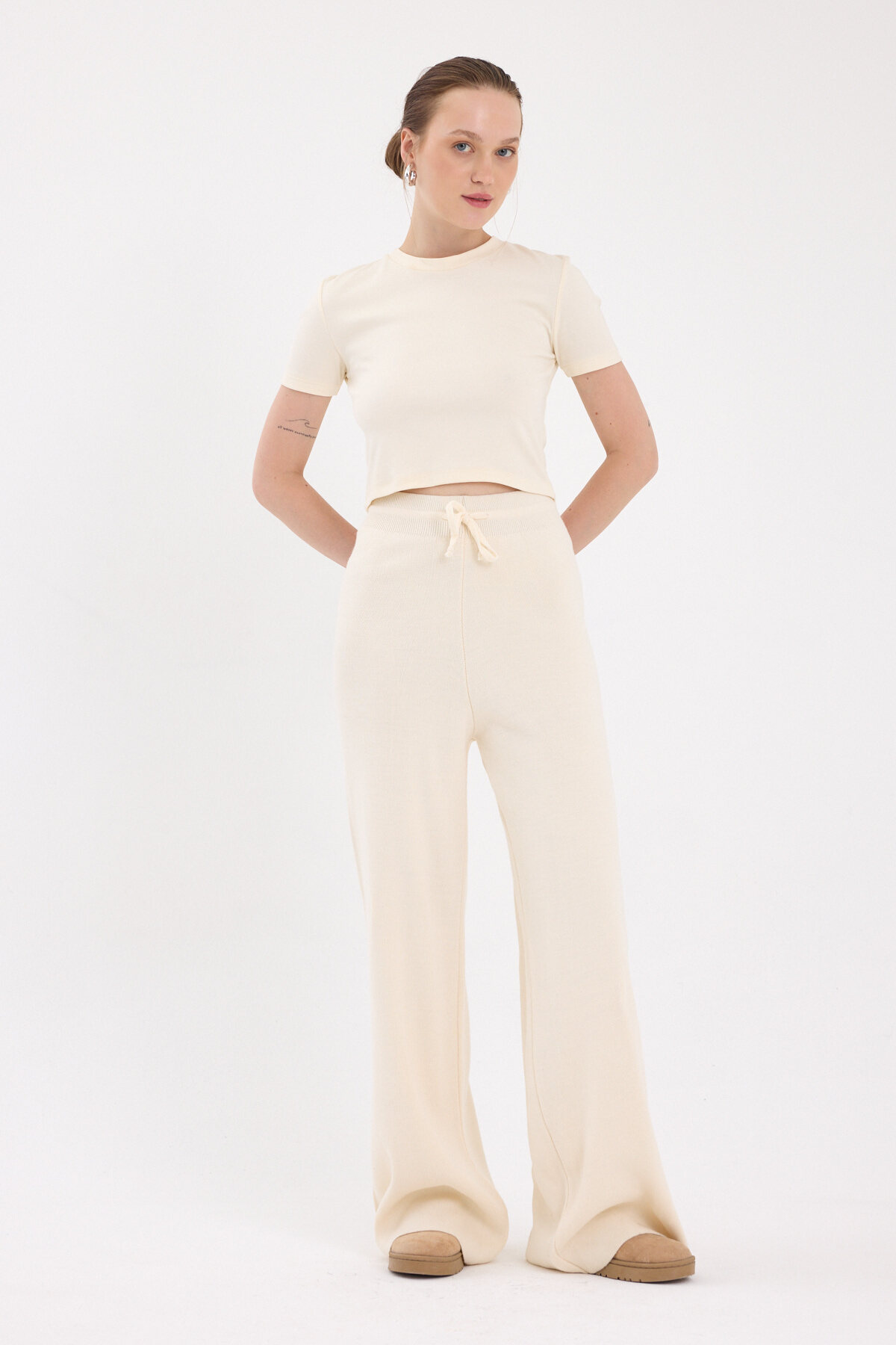 Natural Yüksek Bel Triko Palazzo Kadın Pantolon 2251