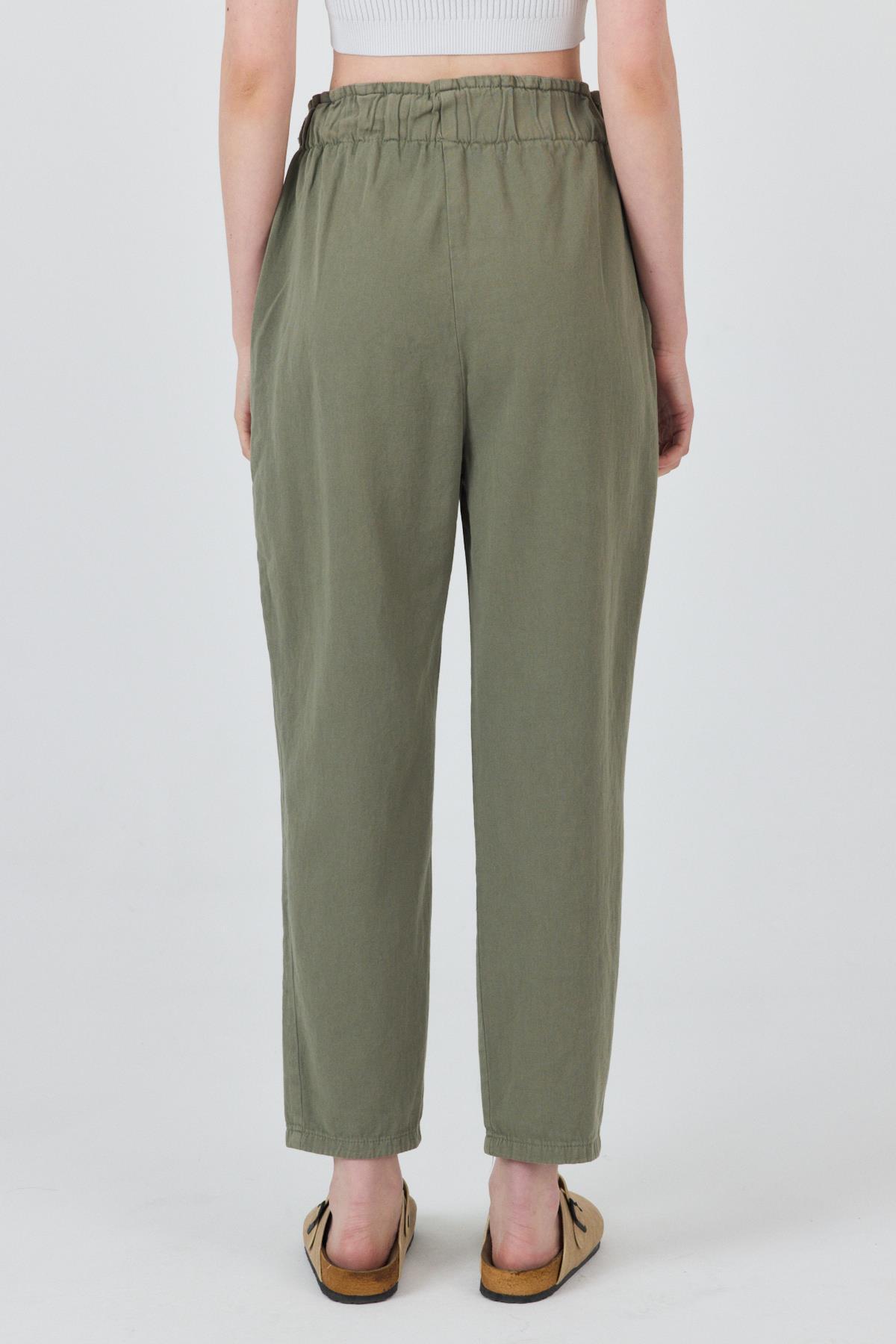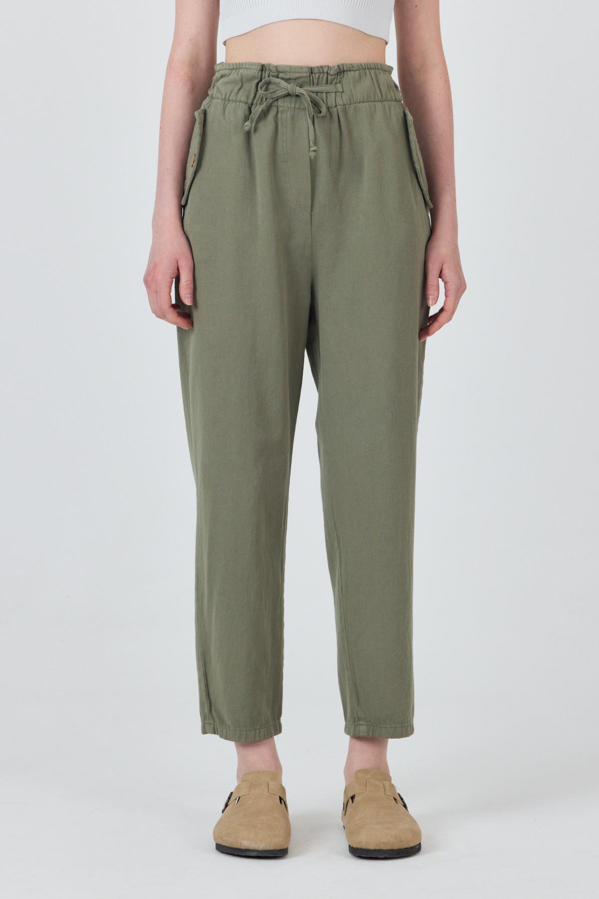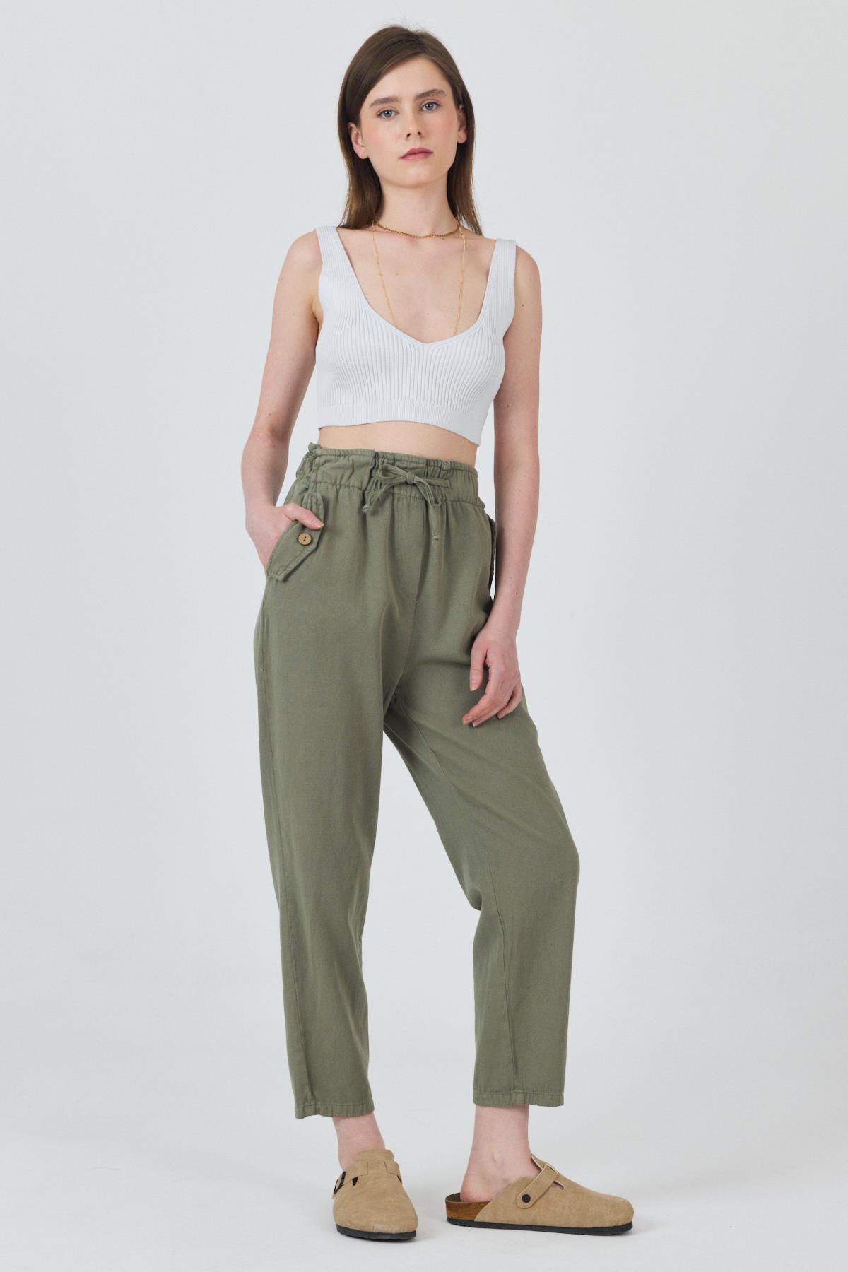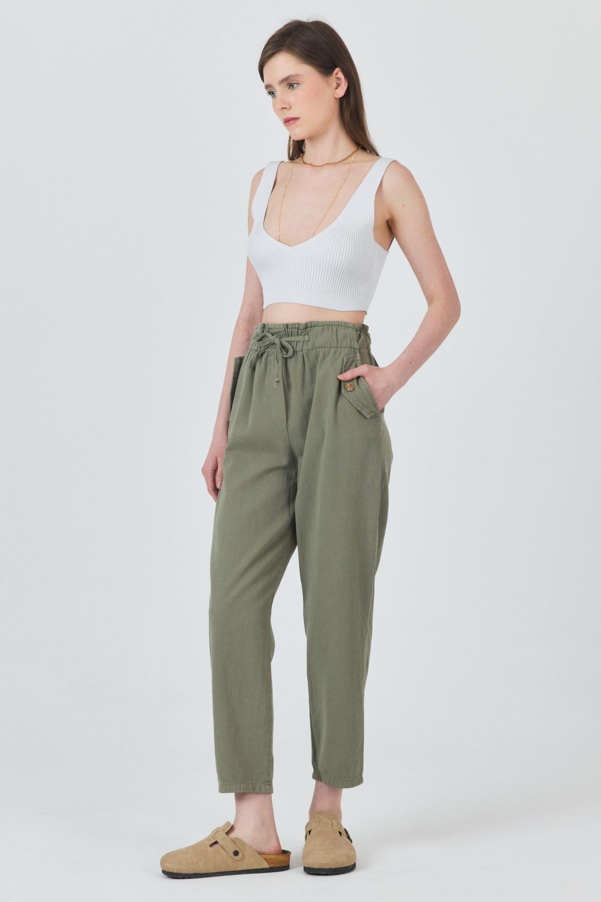 Olive Yeşili Cep Düğme Detaylı Bel Lastikli Pantolon 006