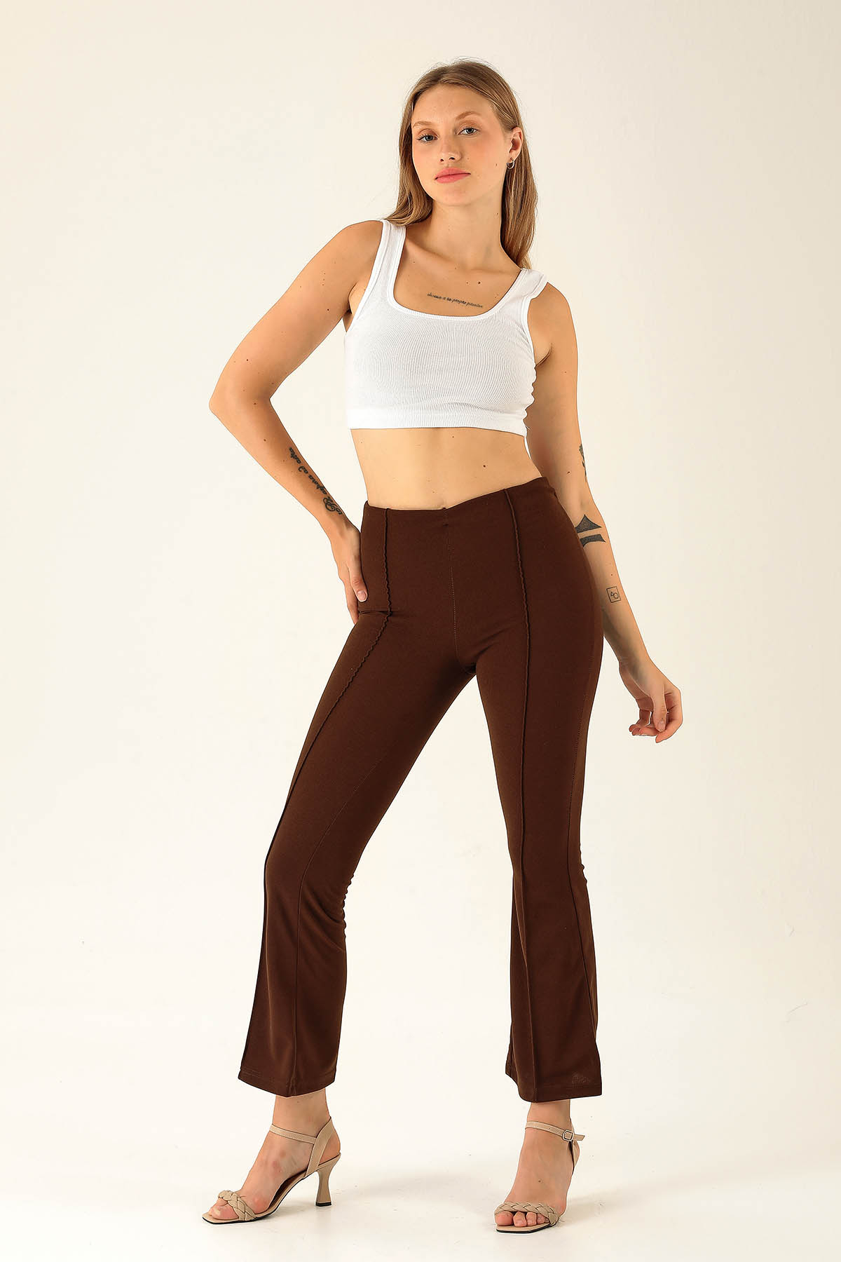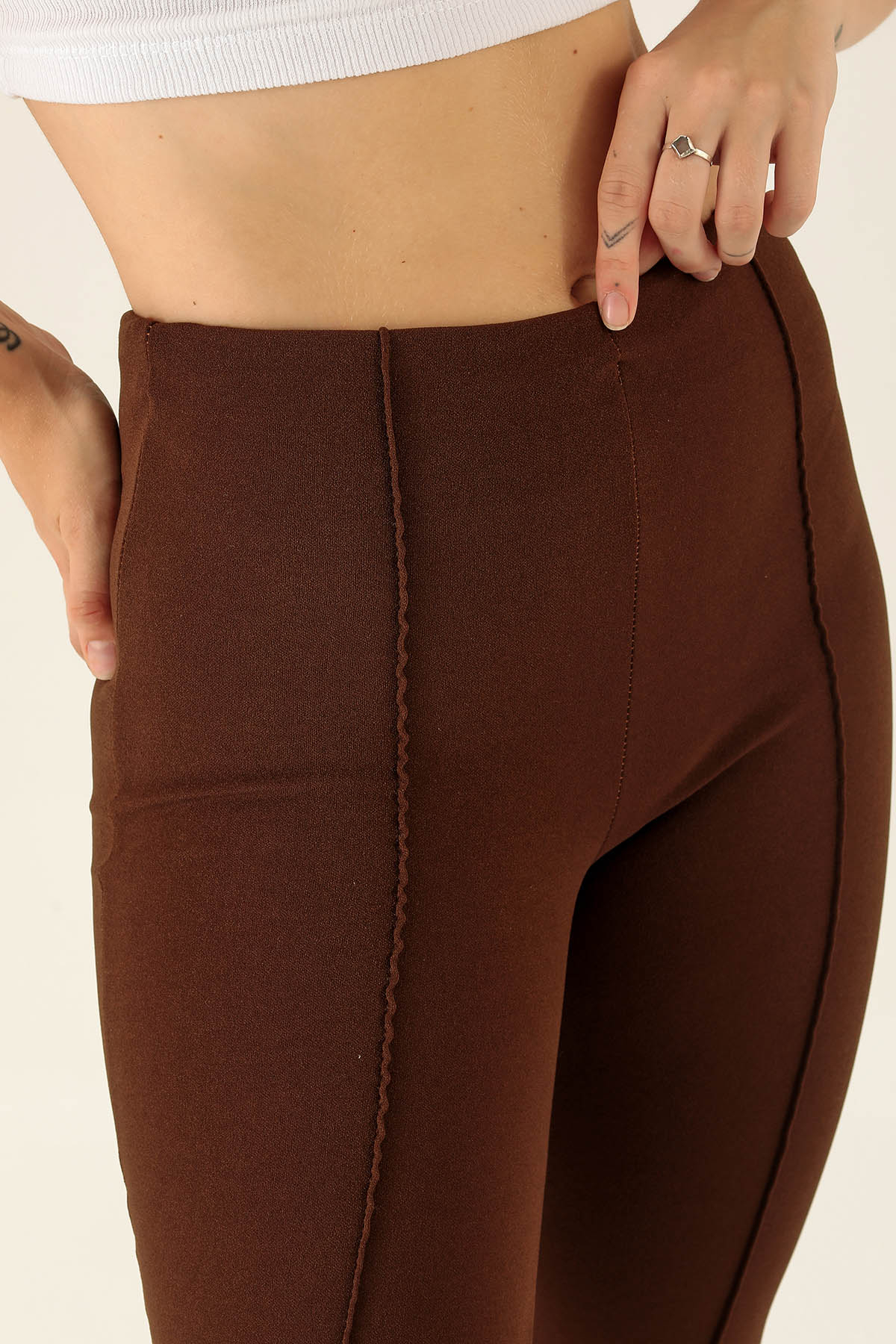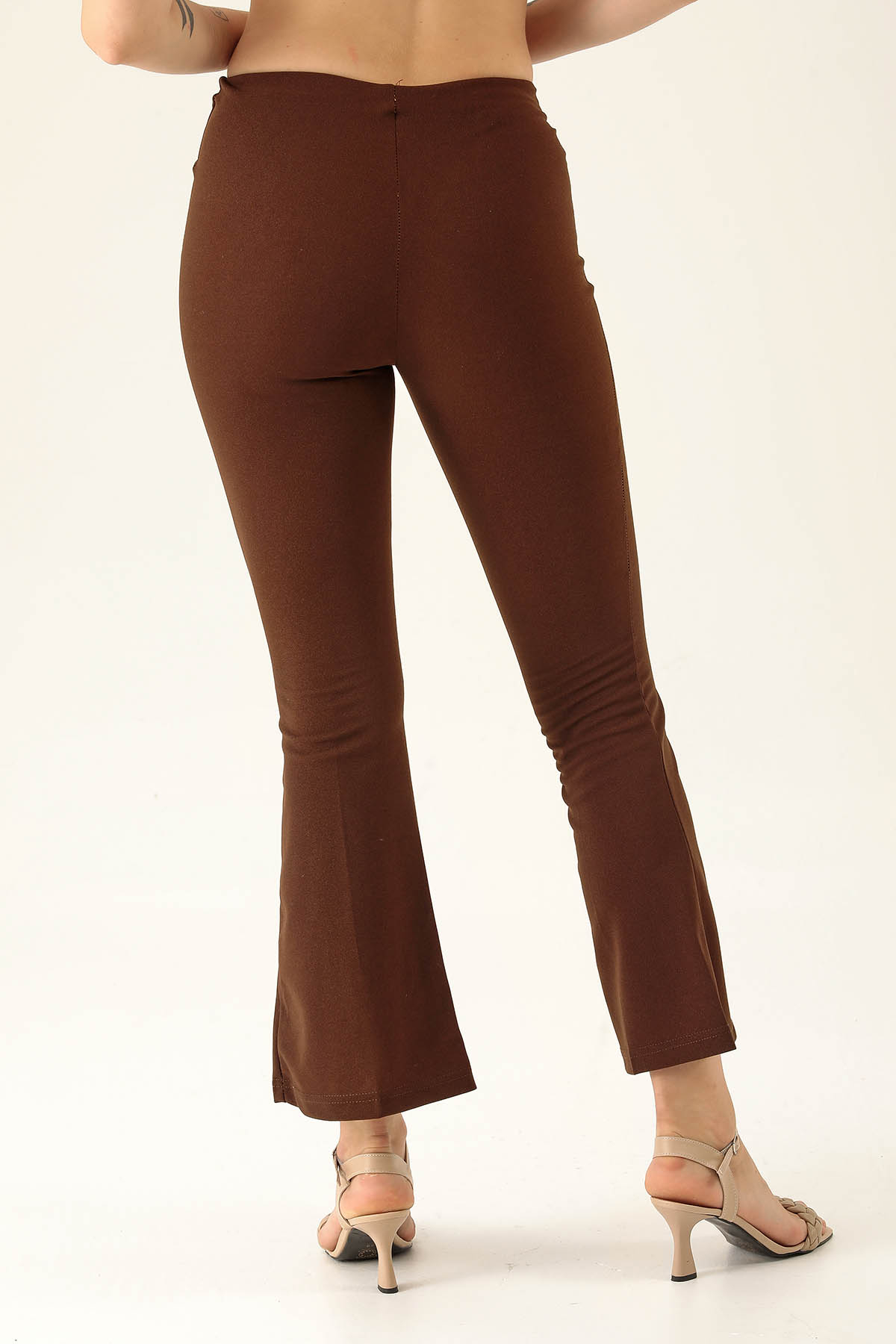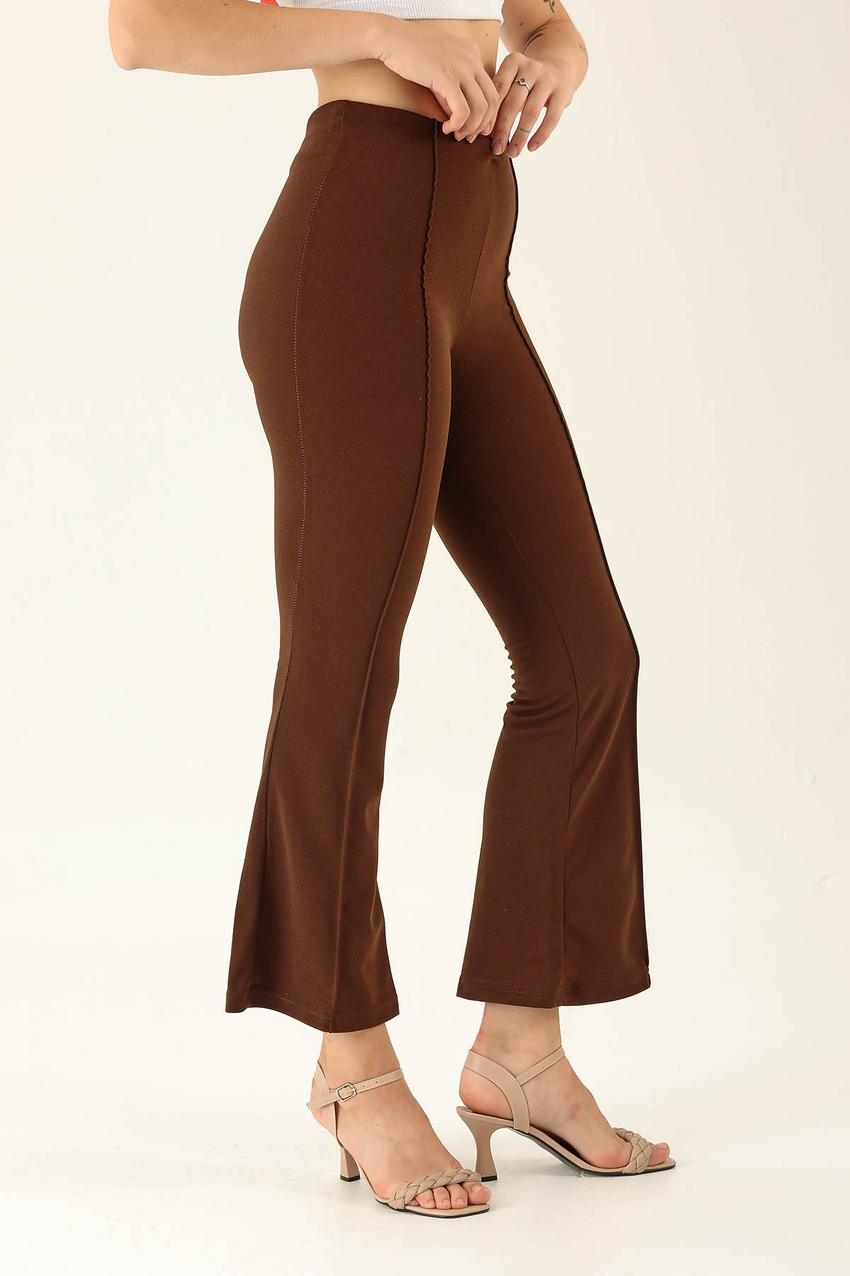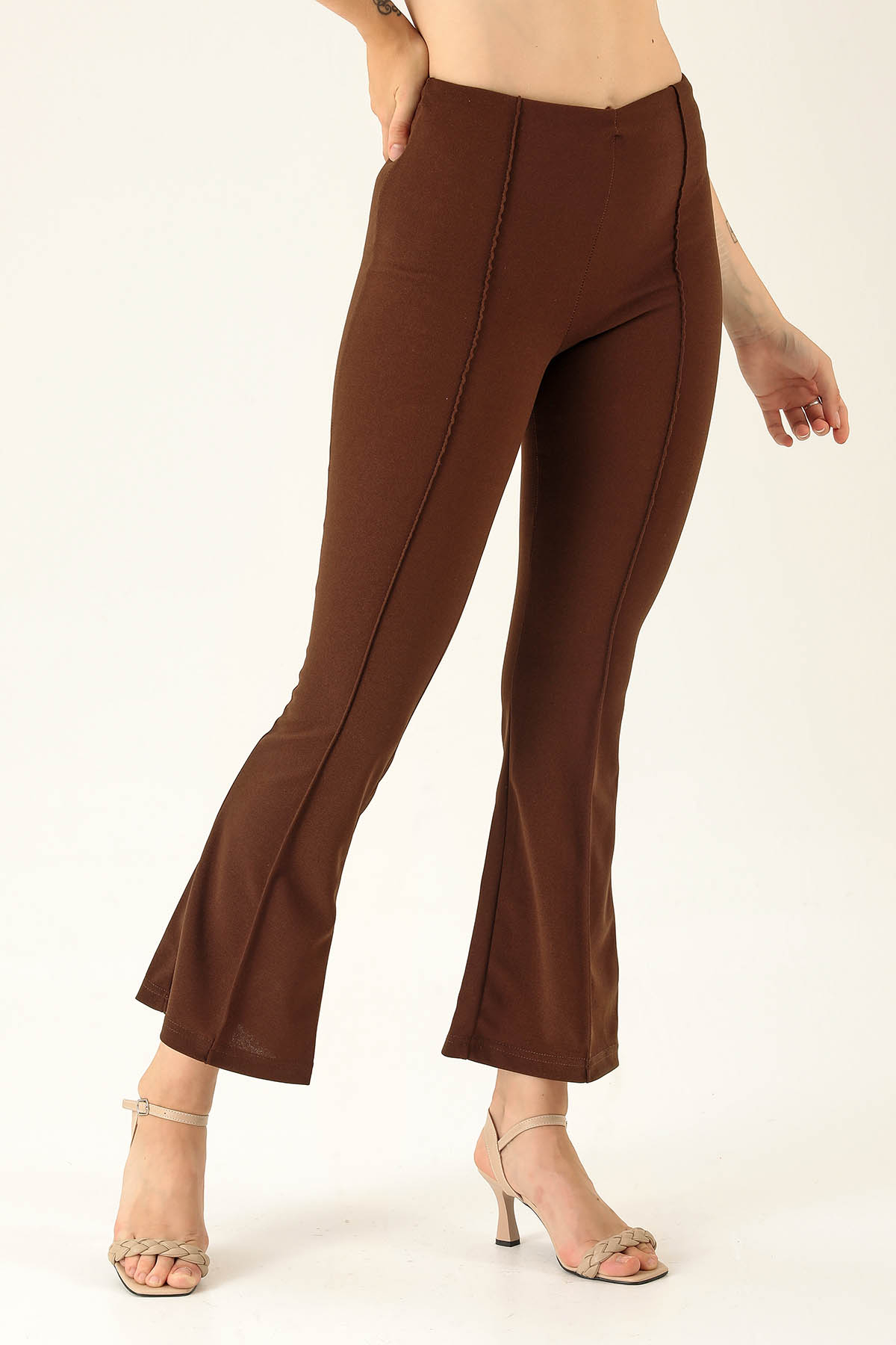 Ön Çima Detaylı İspanyol Bayan Pantolon - 2118 Acı Kahve