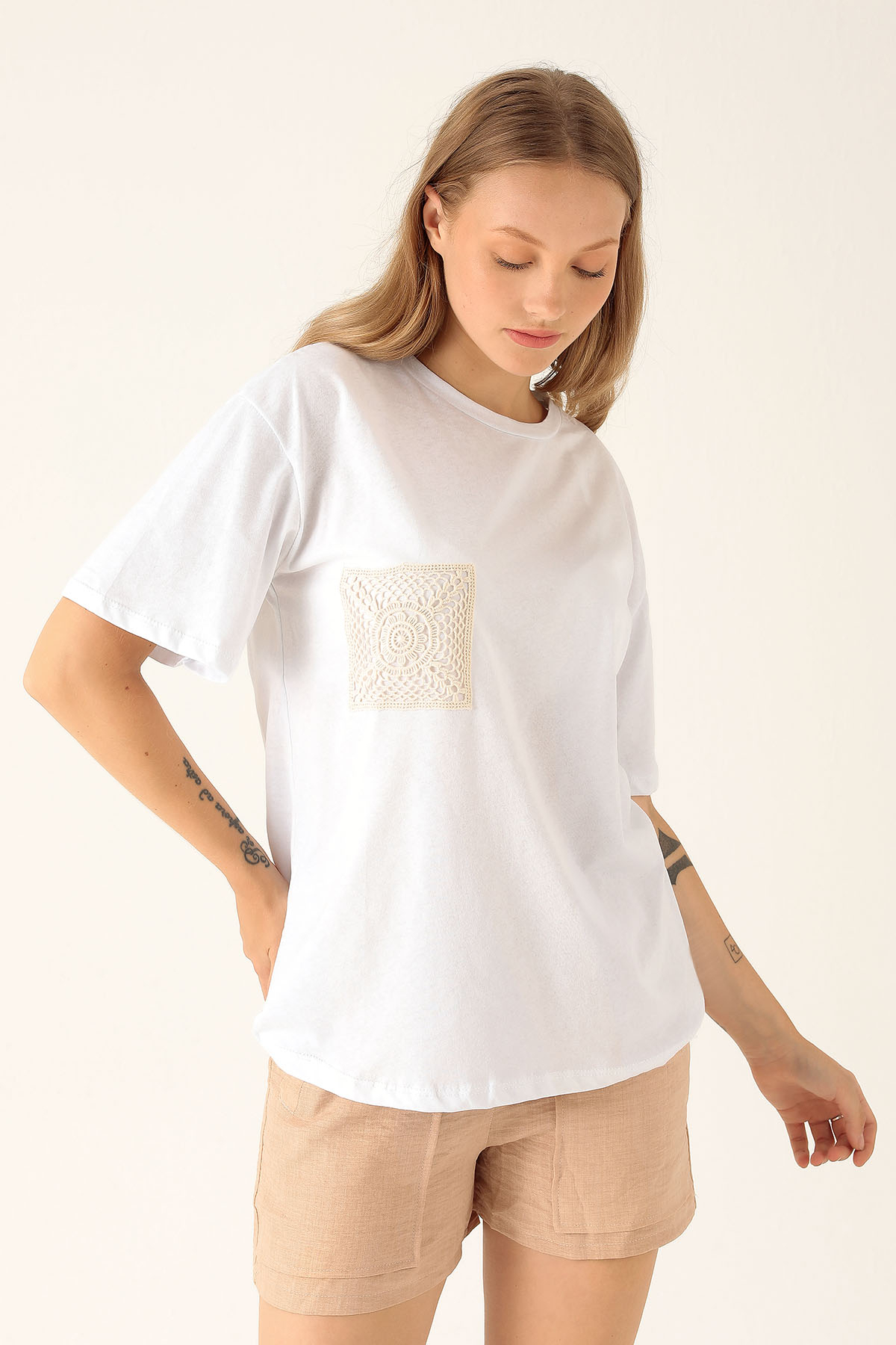 Örgü Cep Tişört - 9427 Beyaz