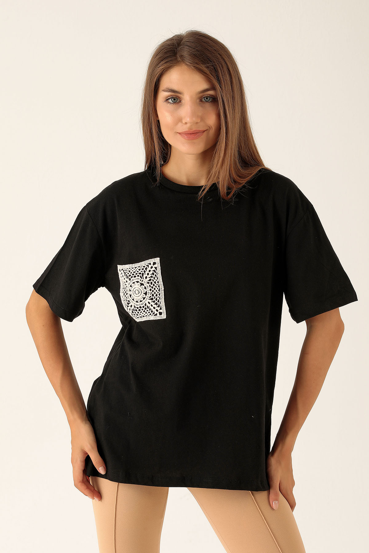 Örgü Cep Tişört - 9427 Siyah