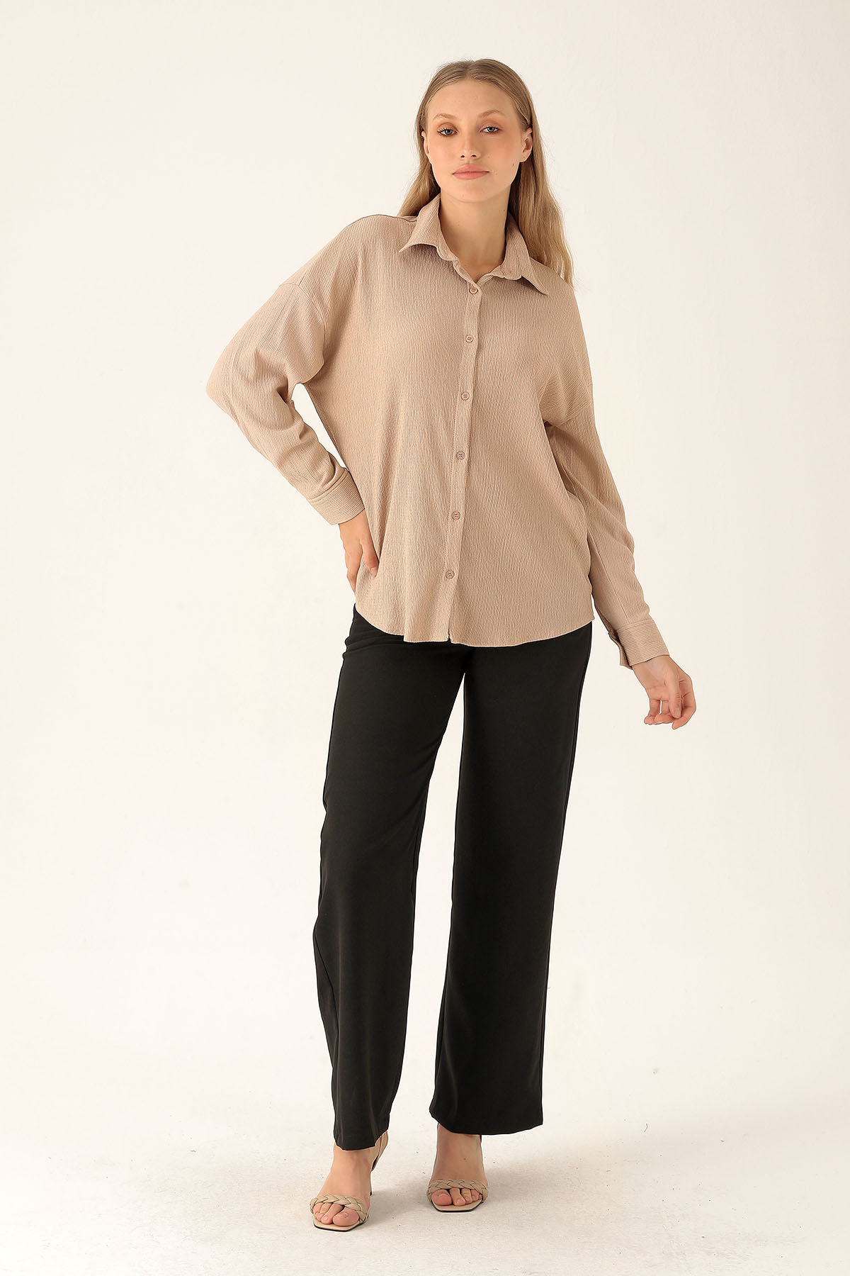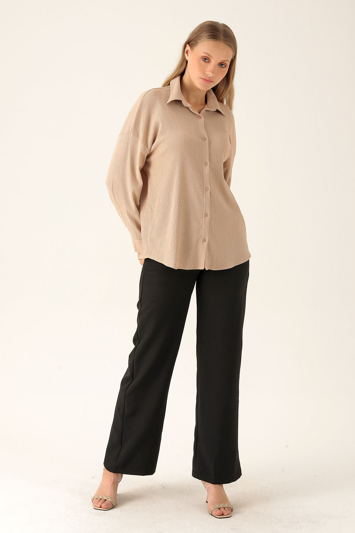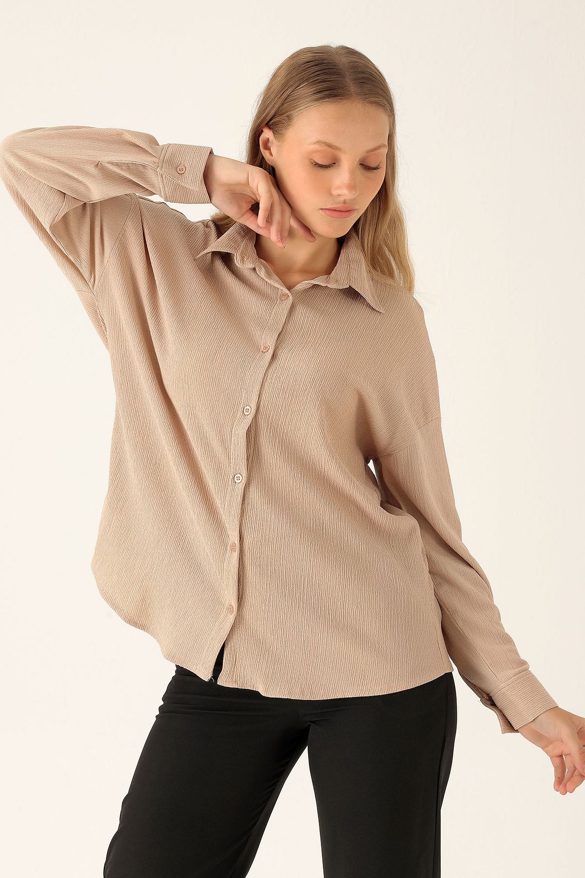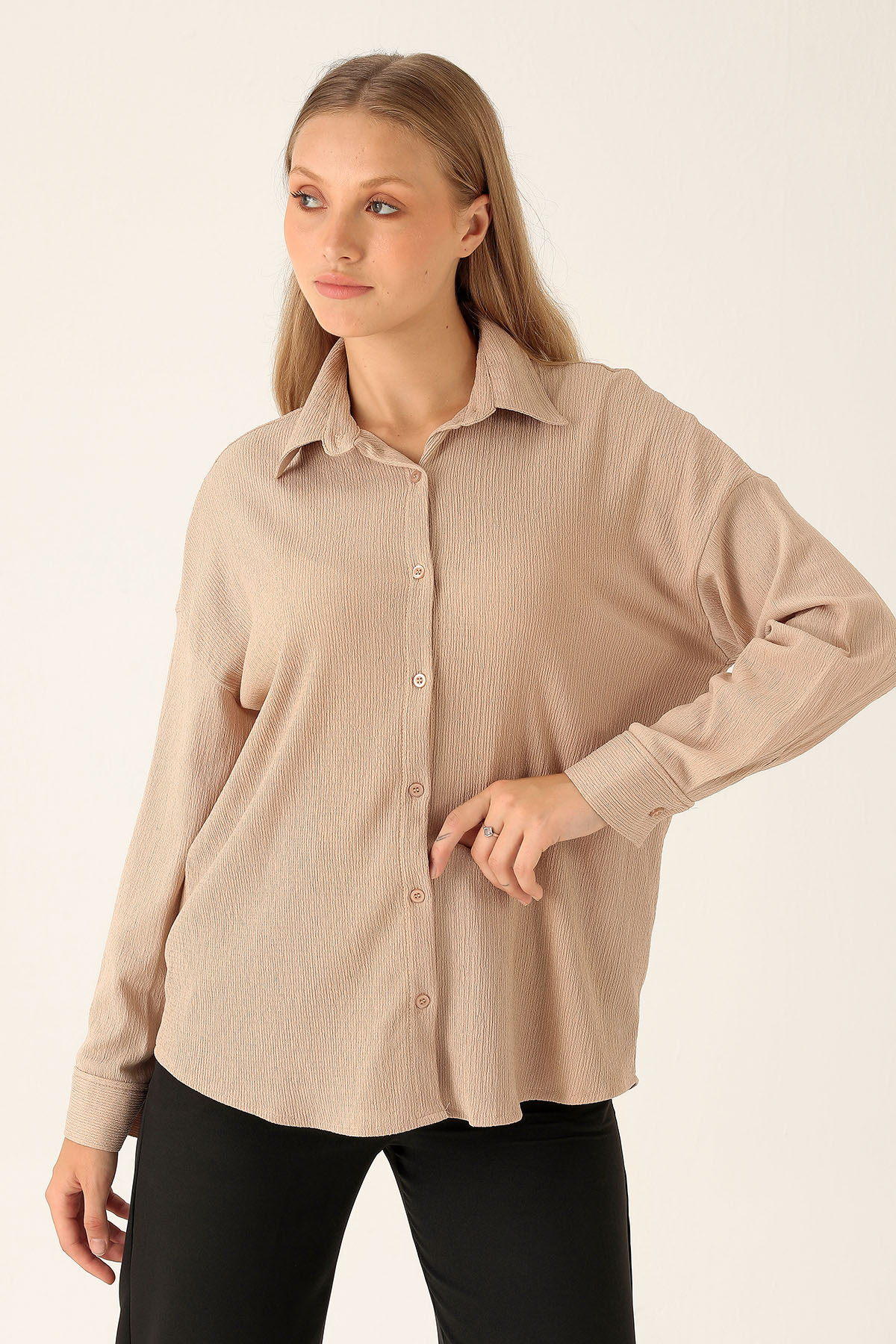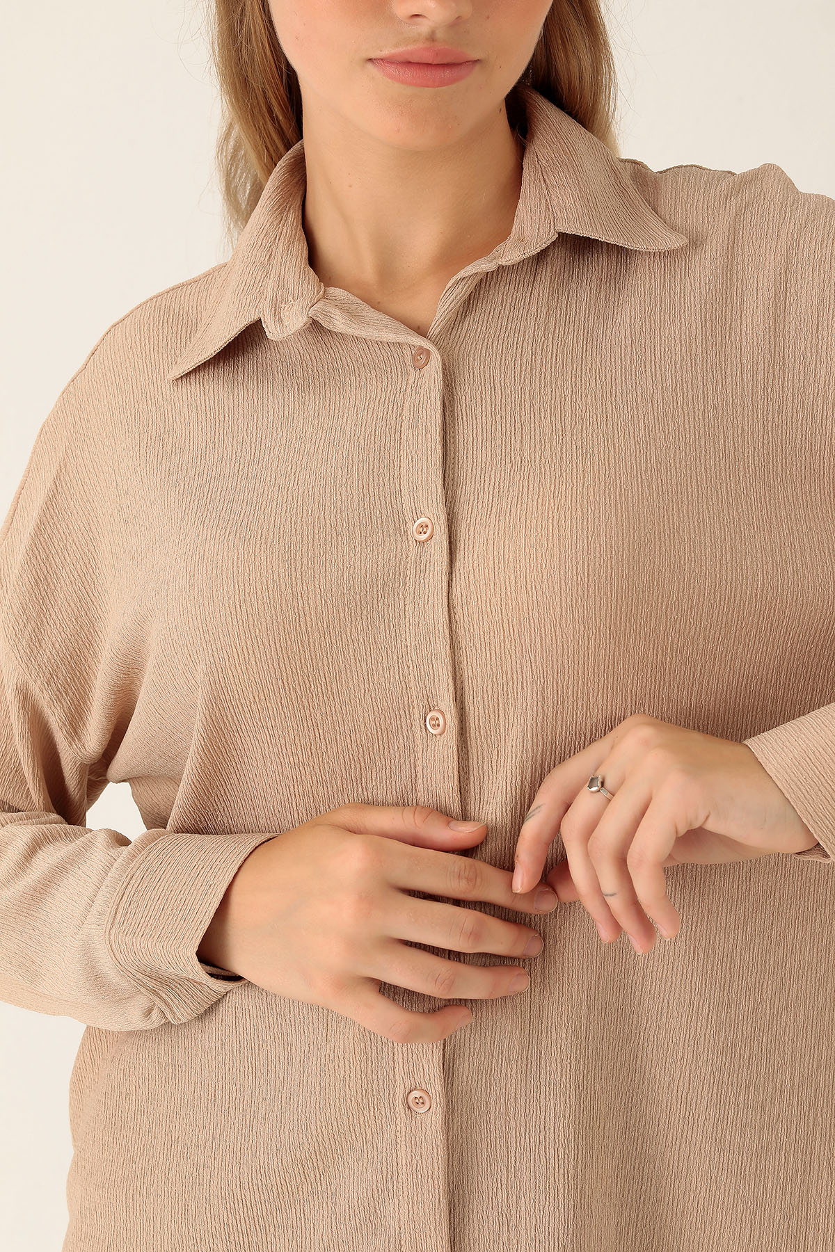 Oversize Bayan Gömlek - 6624A Bej