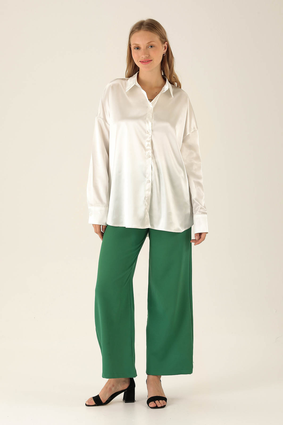 Oversize Saten Bayan Gömlek - 1638 Beyaz