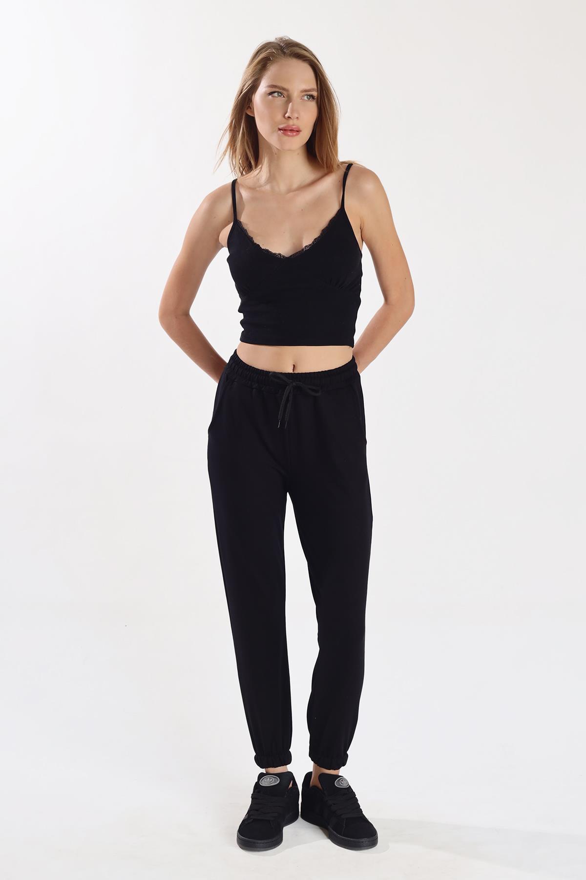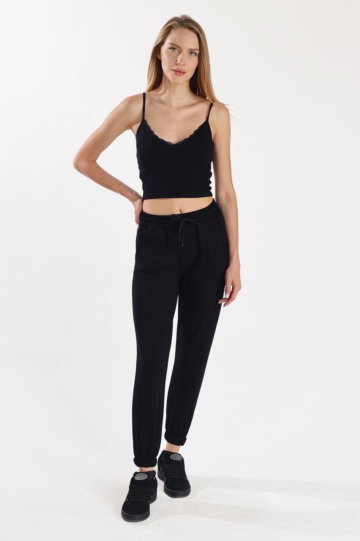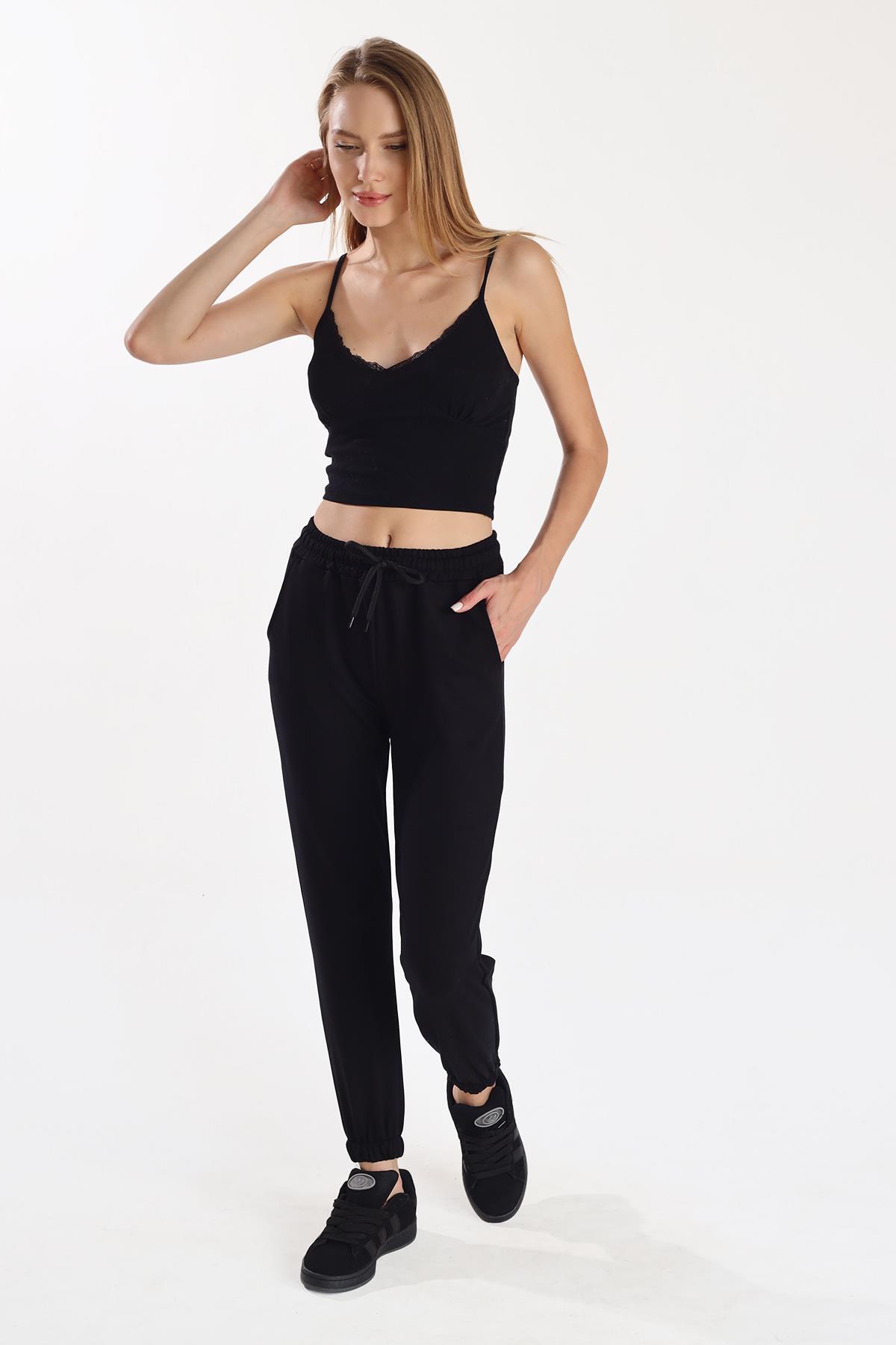 Paça Lastik Cepli Bayan Eşofman - 7257M Siyah