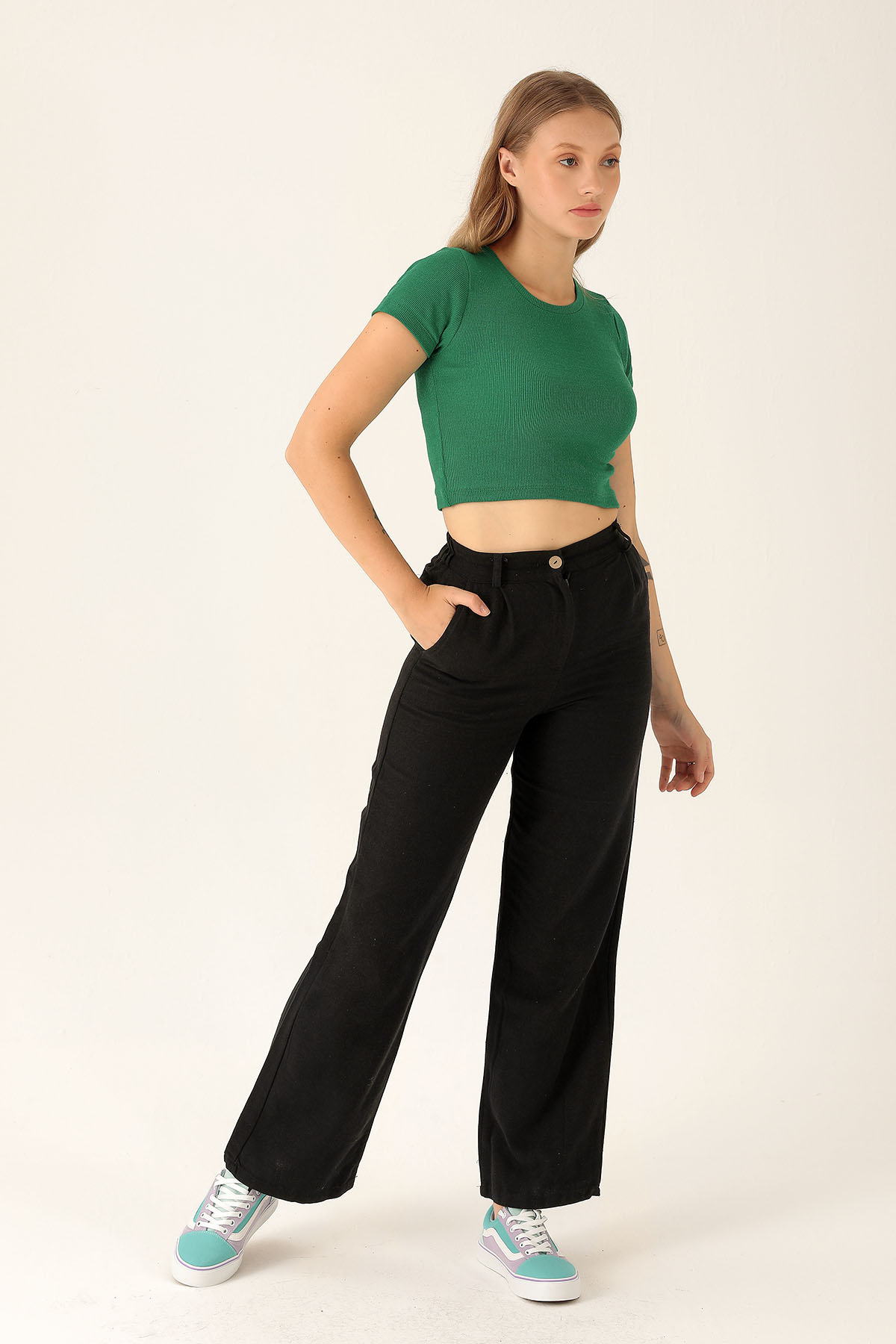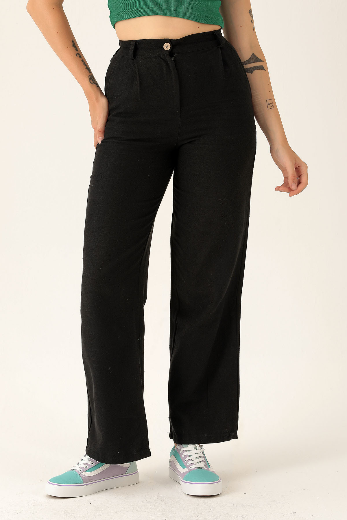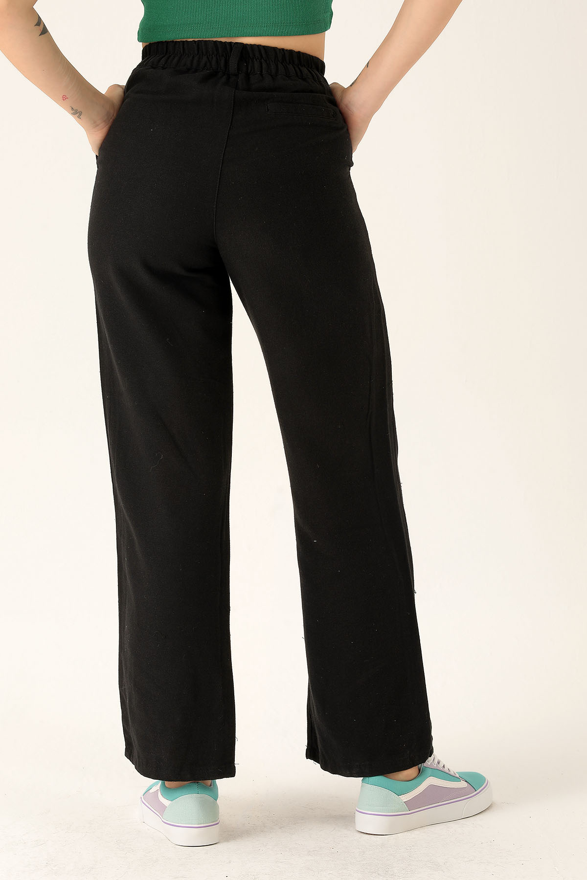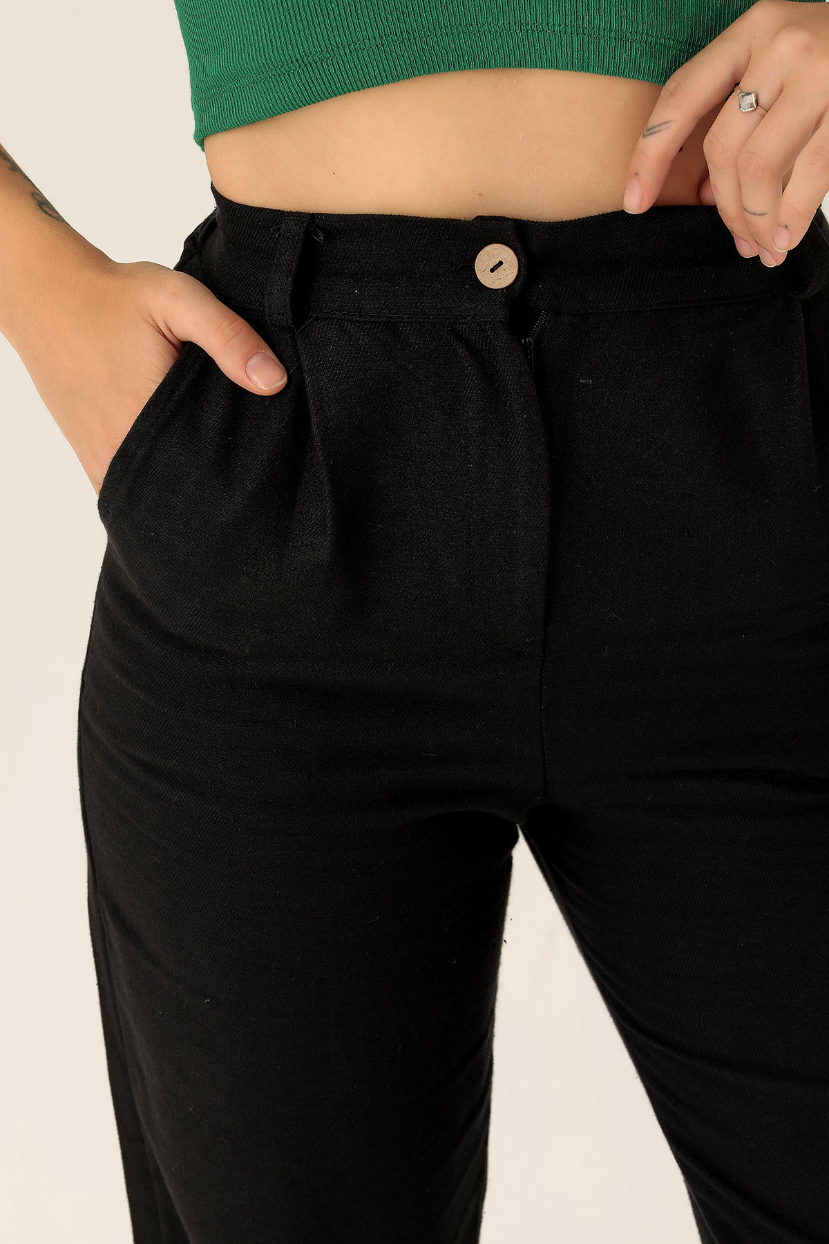 Palazzo Keten Bayan Pantolon - 1926 Siyah