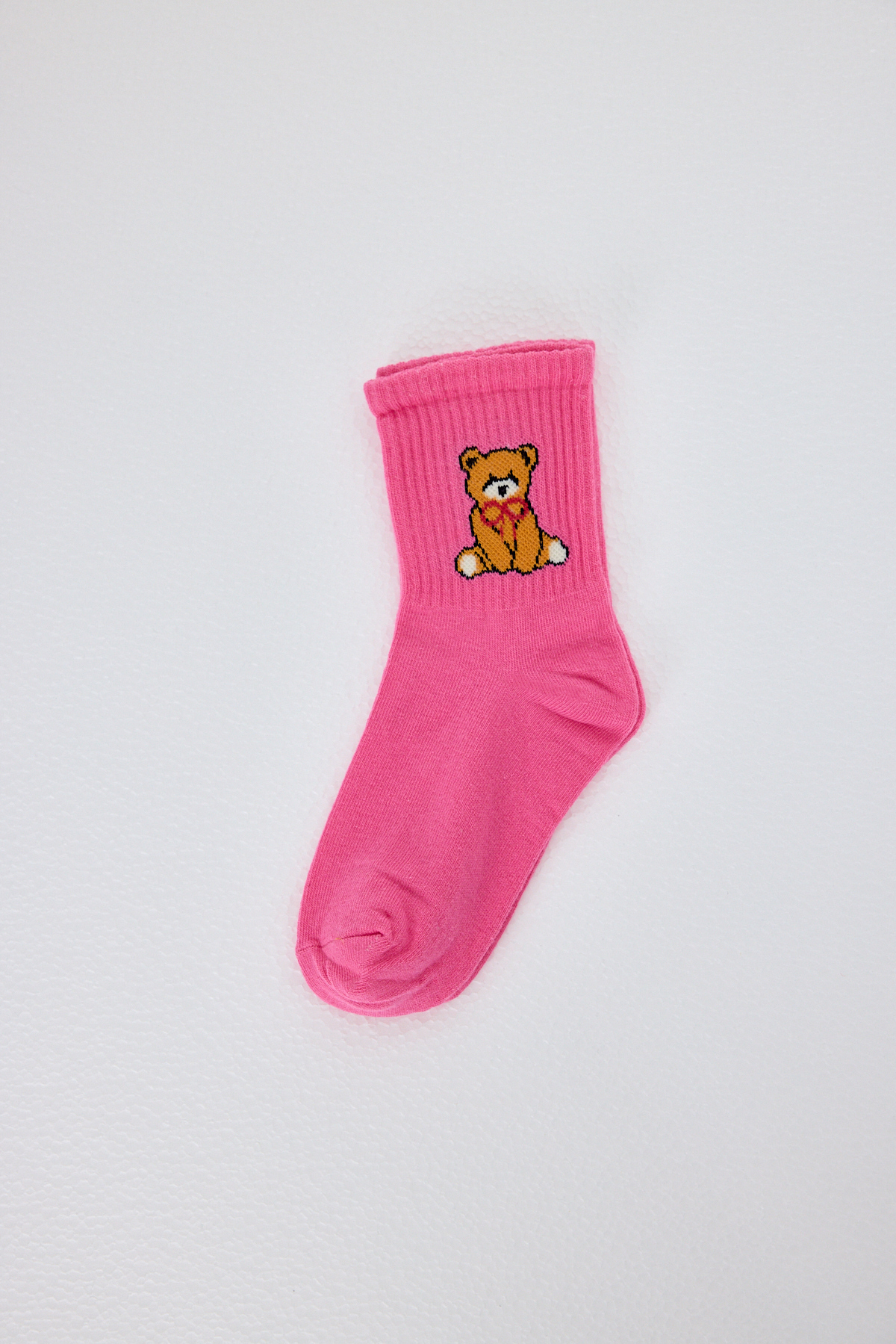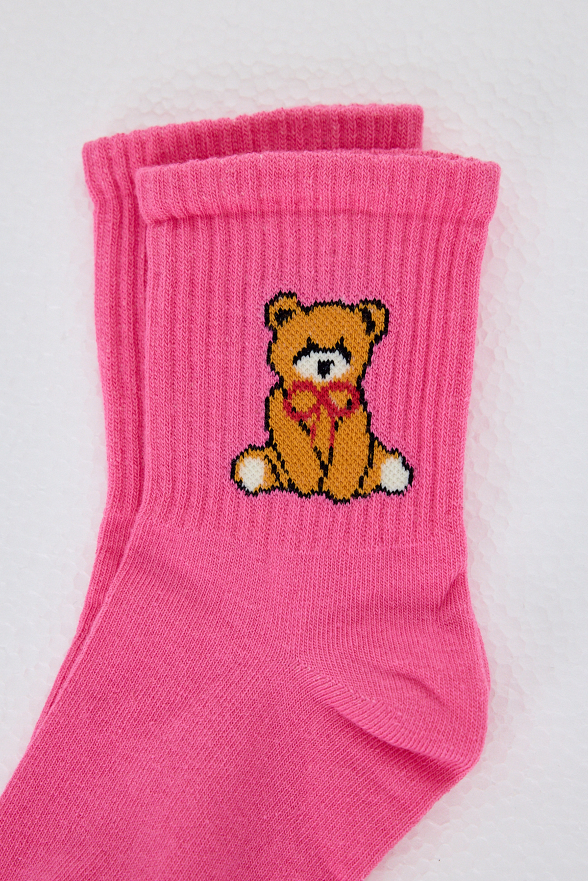 Pembe Ayı Desenli Örme Soket Çorap 1214