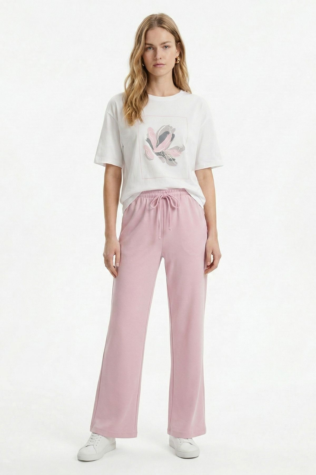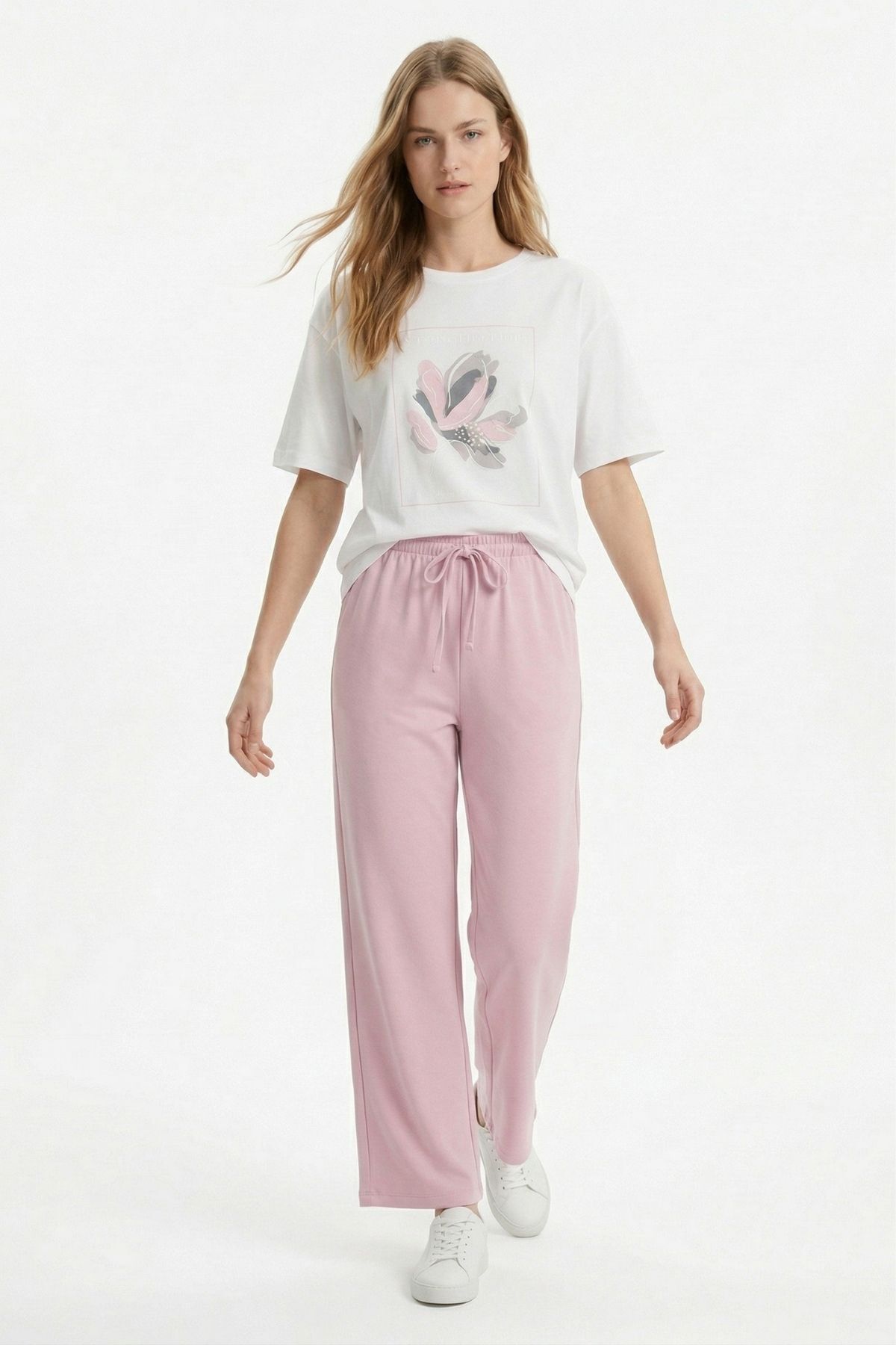Pembe Baskılı Tişört Eşofman Takım 8305
