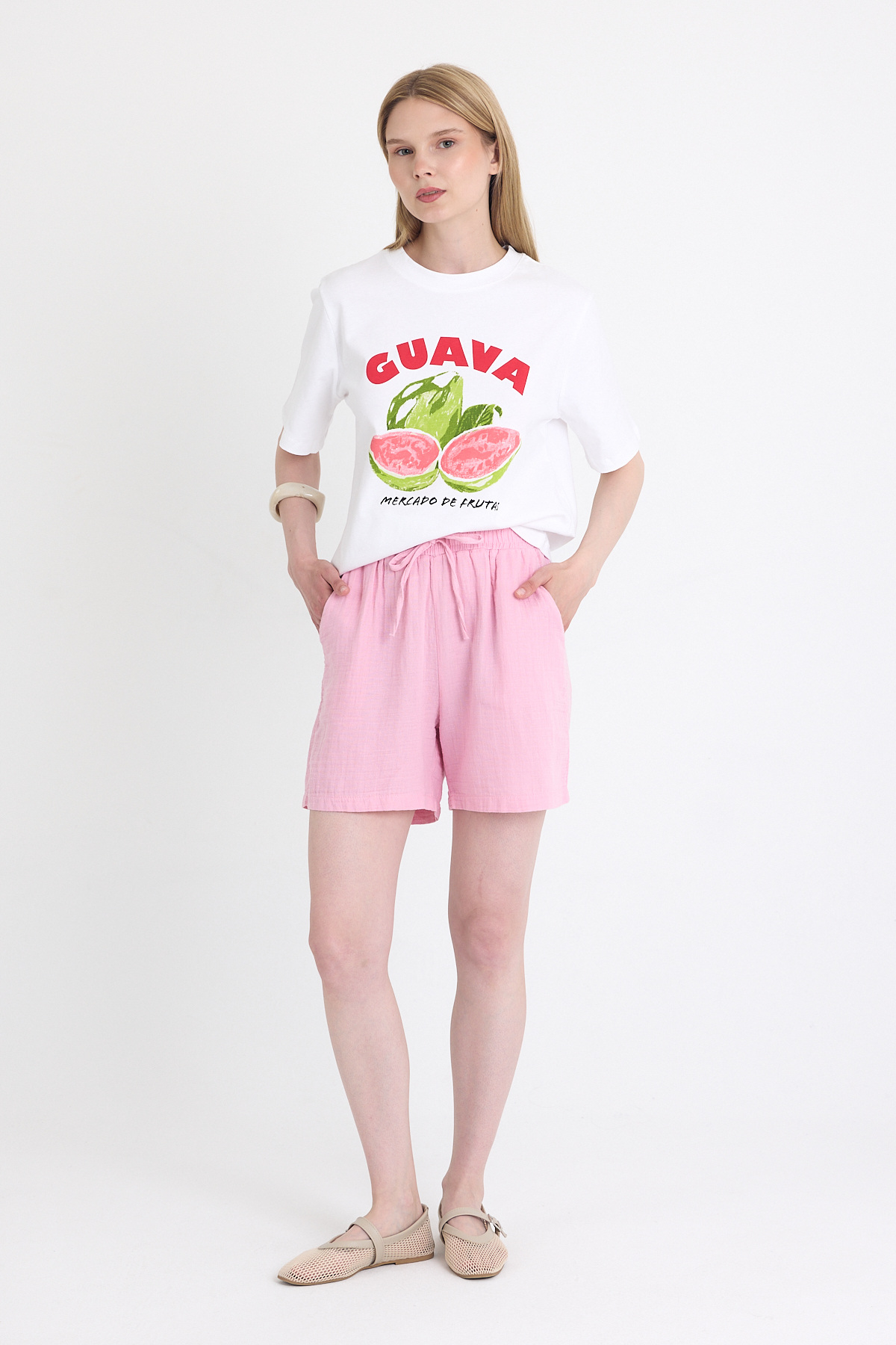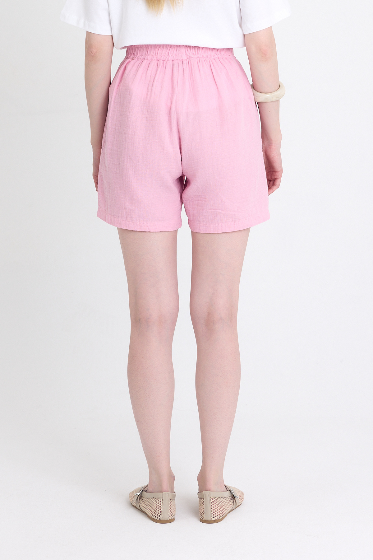 Pembe Beli Lastikli %100 Pamuk Müslin Şort 4769A