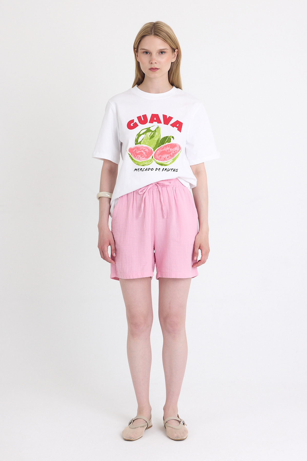 Beyaz Beli Lastikli %100 Pamuk Müslin Şort 4769A
