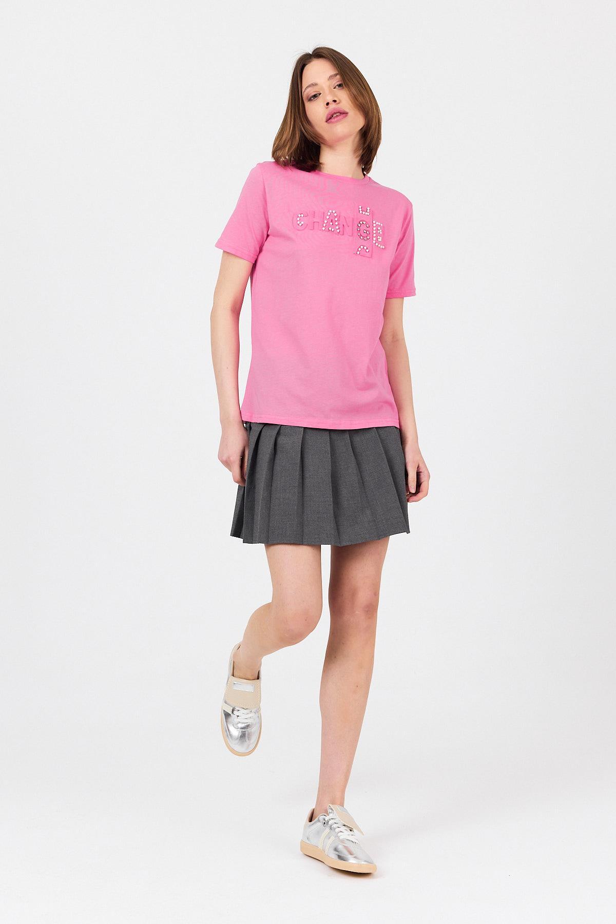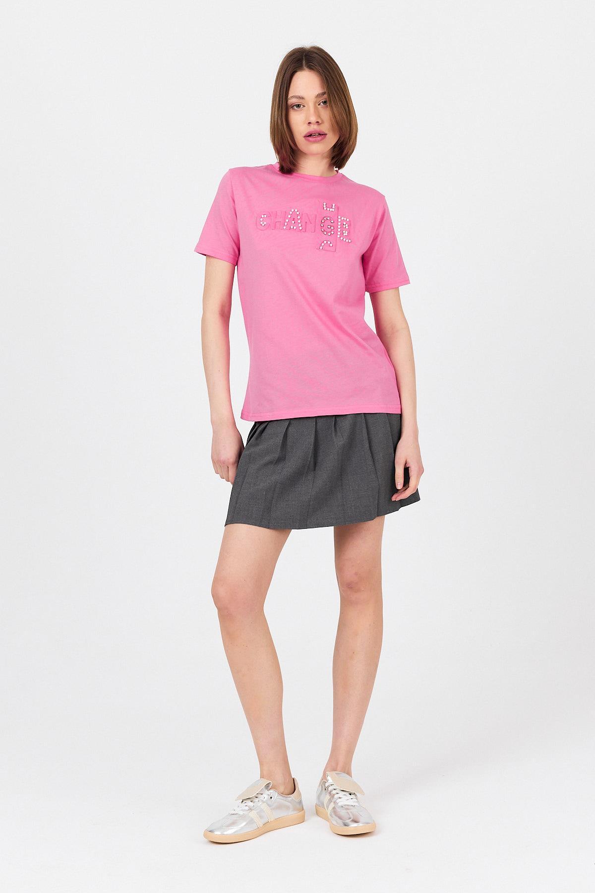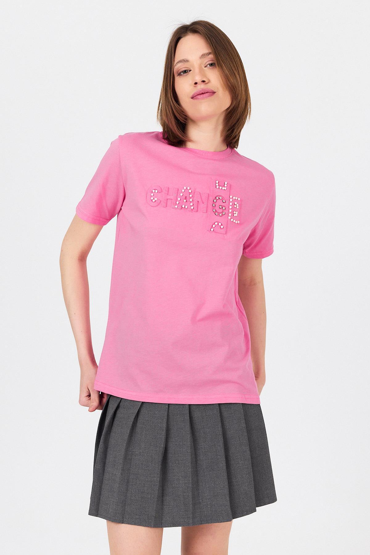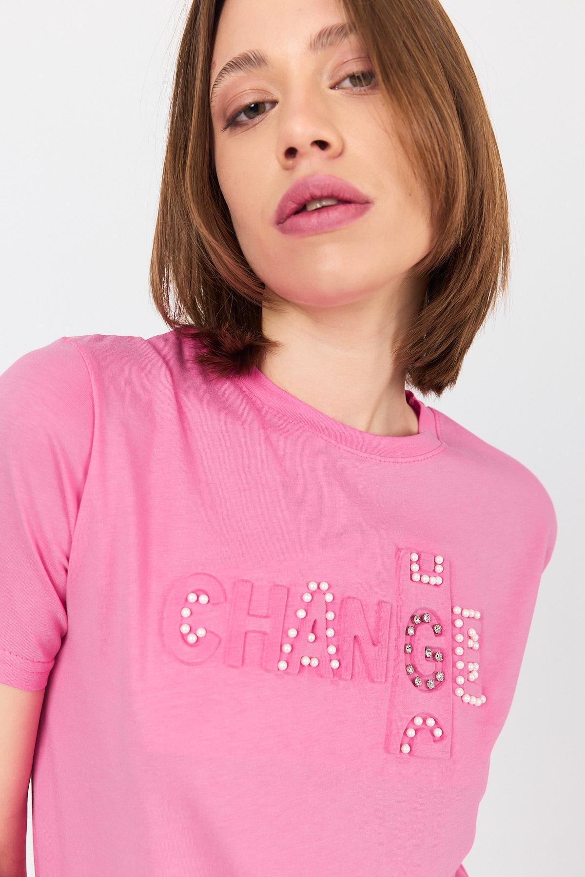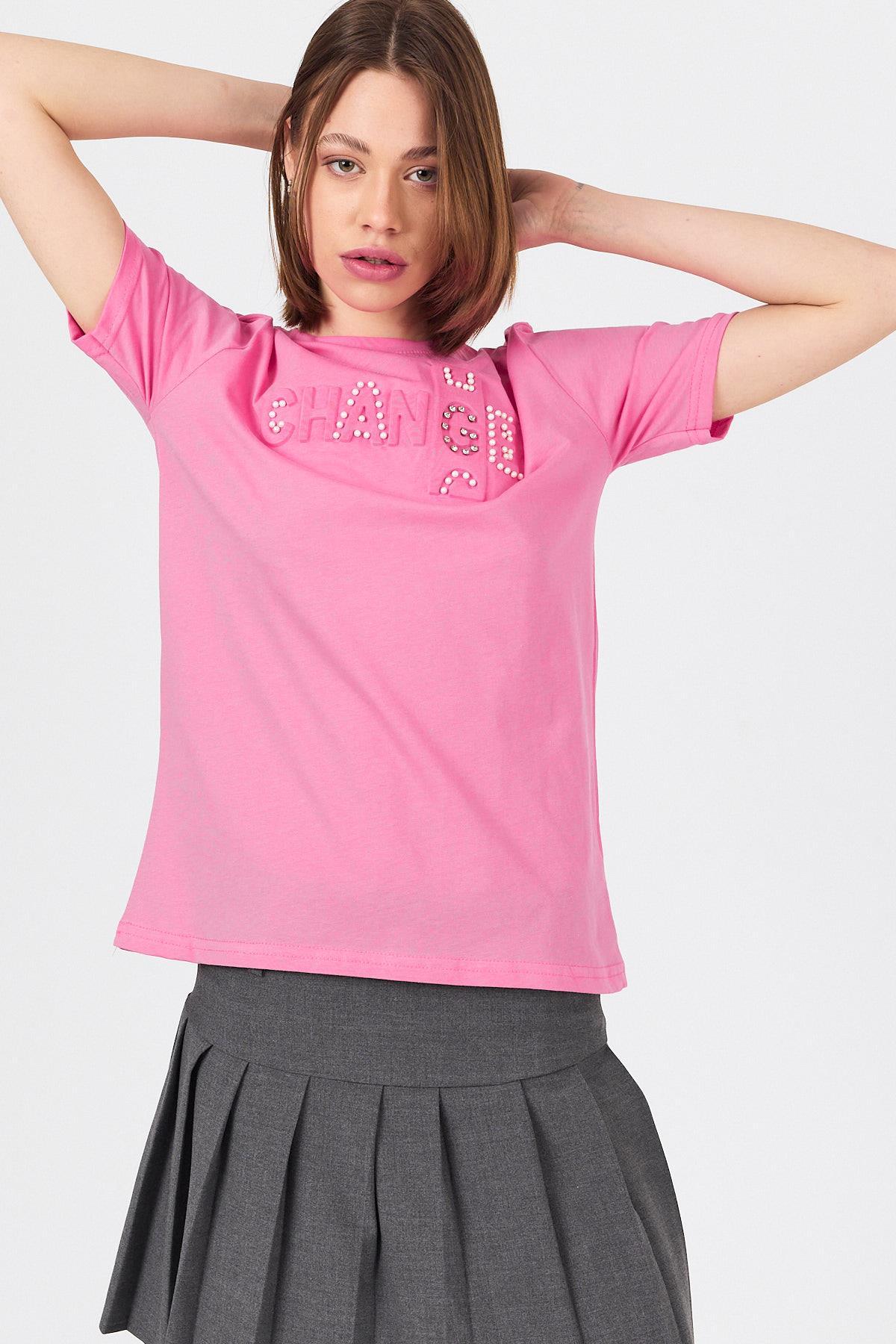 Pembe Change Yazı Kabartmalı Tişört 25227