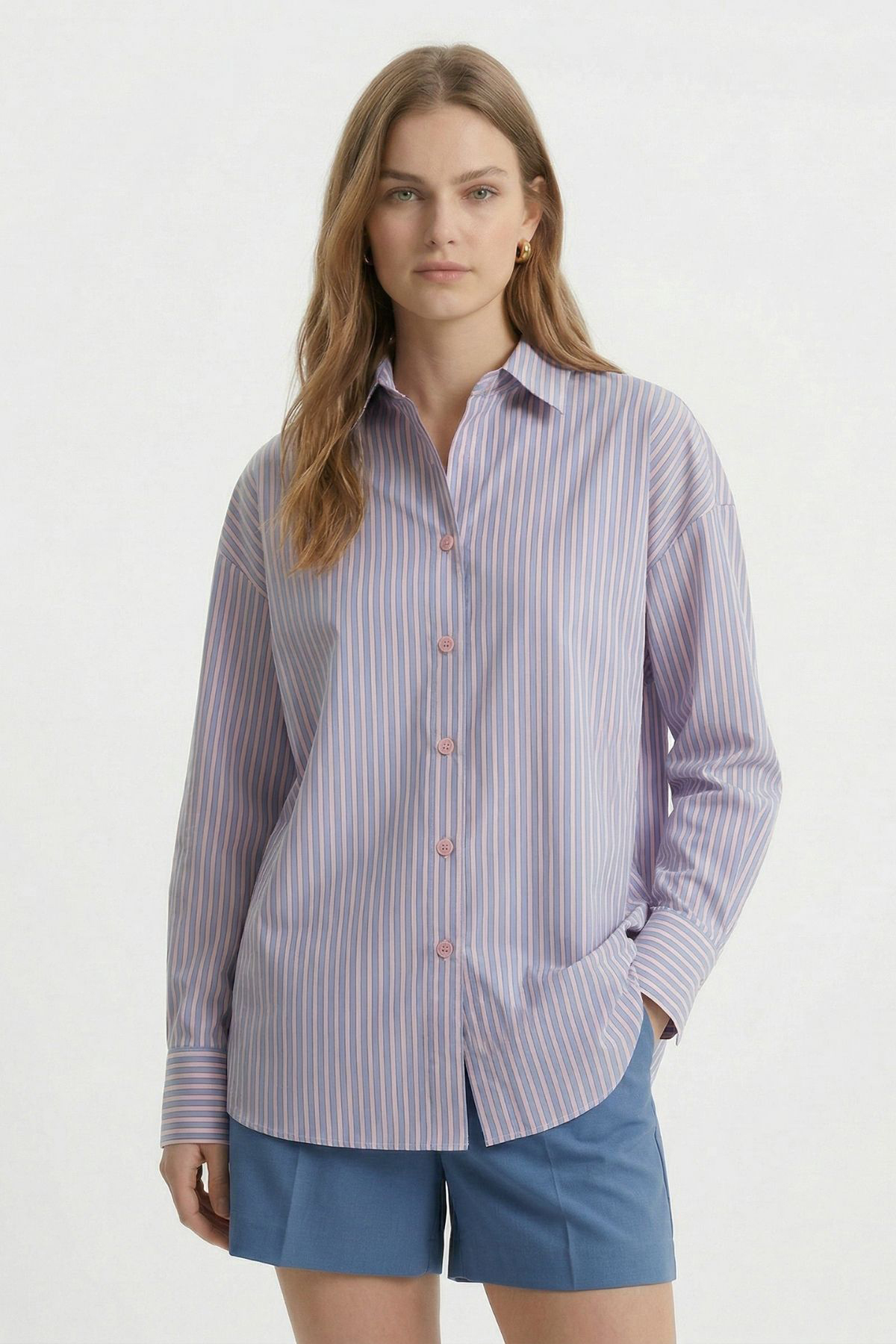 Pembe Çizgili Oversize Gömlek 5460 - RAYS Pembe Çizgili Oversize Gömlek 5460 - RAYS (1)