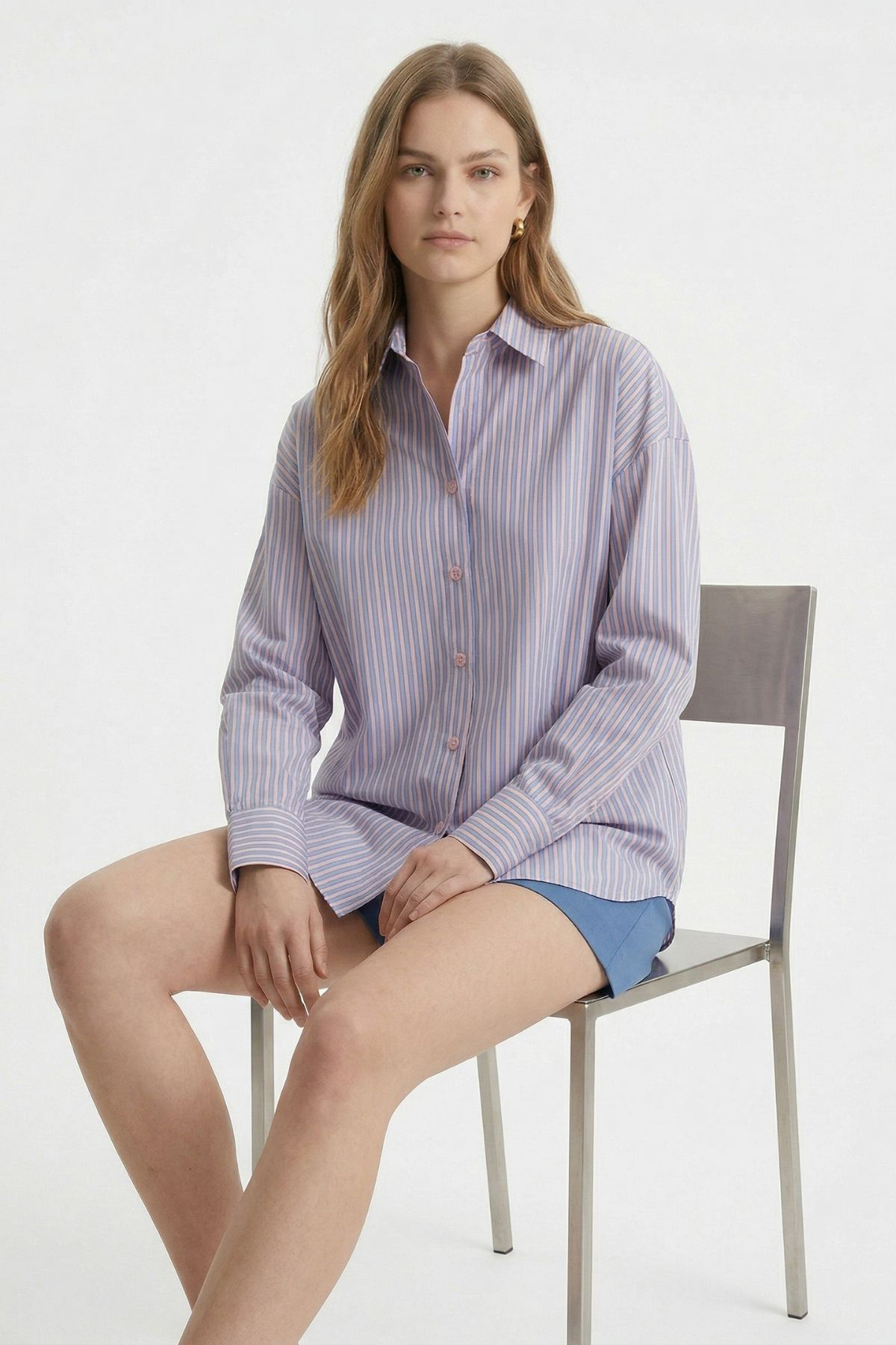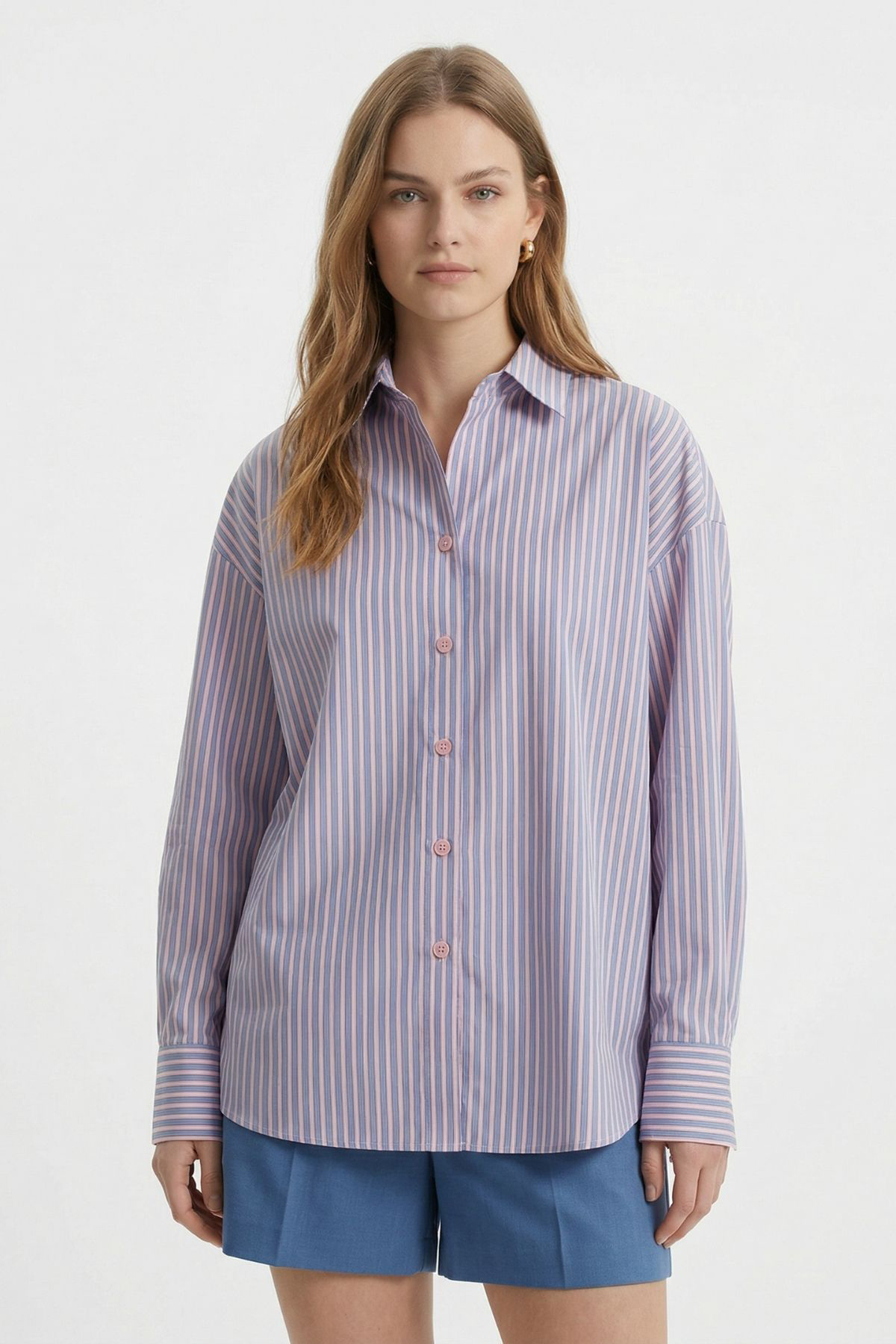 Mavi Çizgili Oversize Gömlek 5460 - RAYS Mavi Çizgili Oversize Gömlek 5460 - RAYS (1)