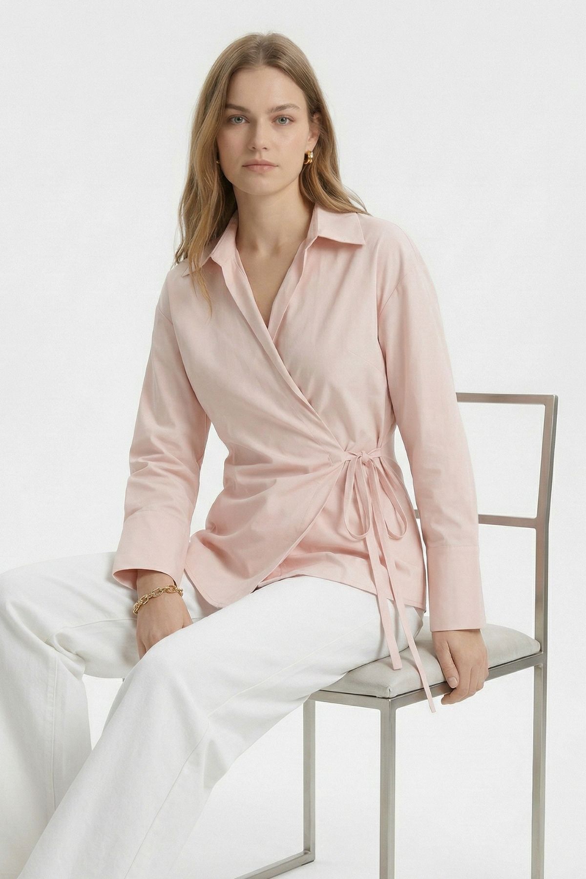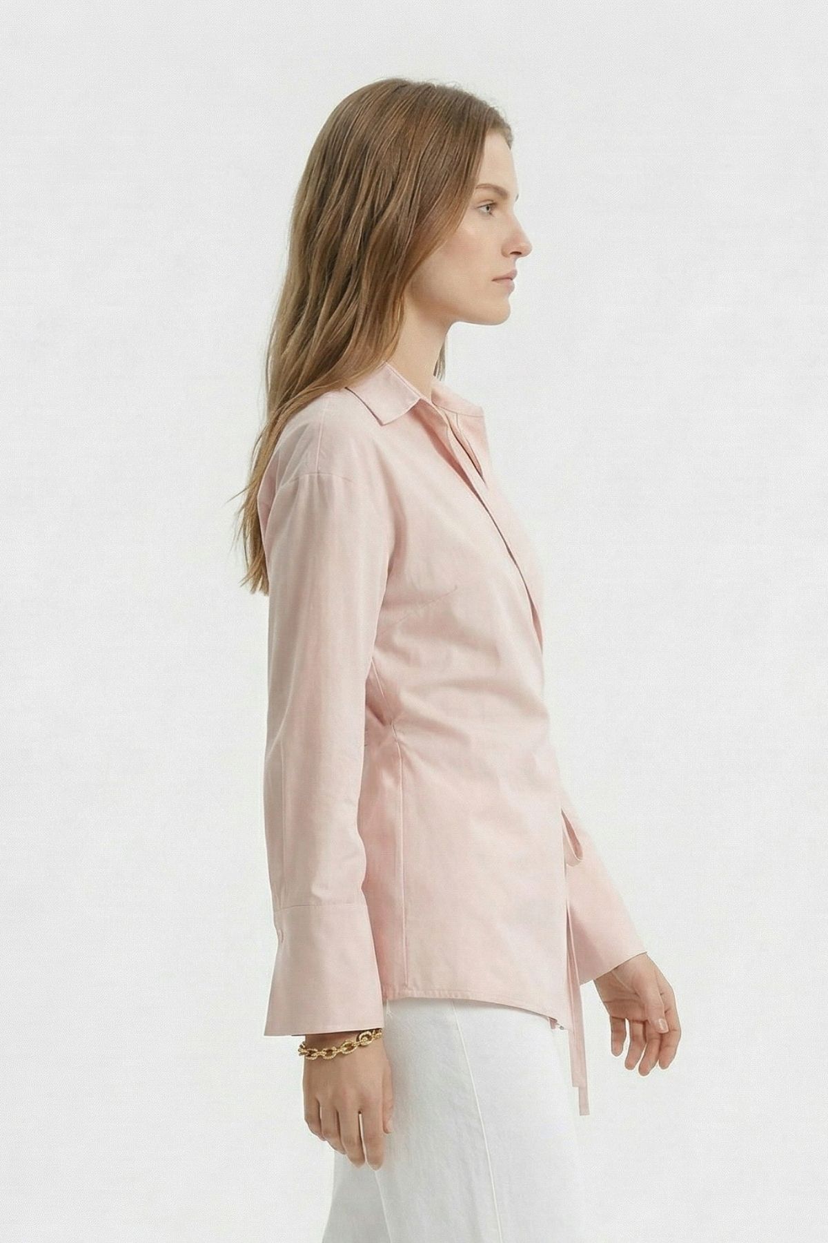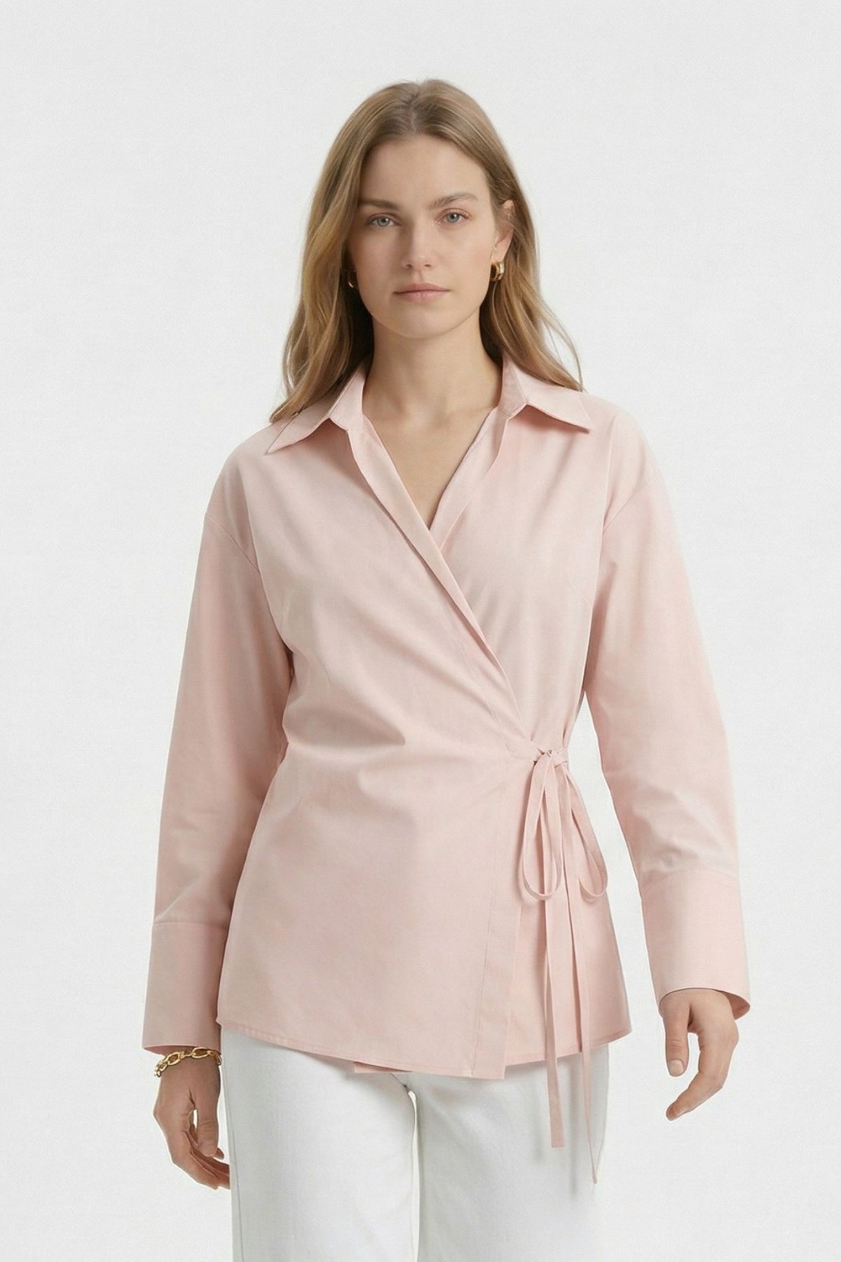 Pembe Kol Yırtmaçlı Yandan Bağlamalı Gömlek 5257
