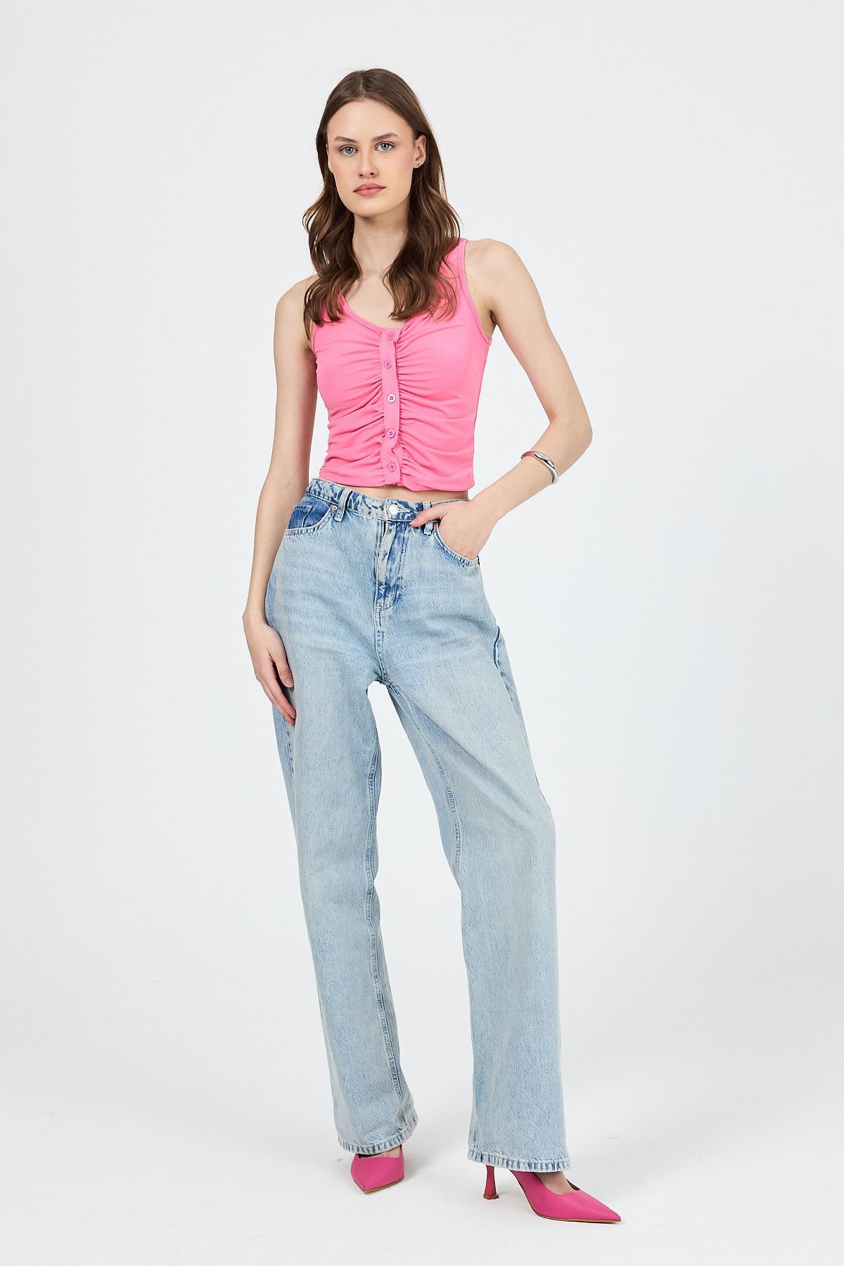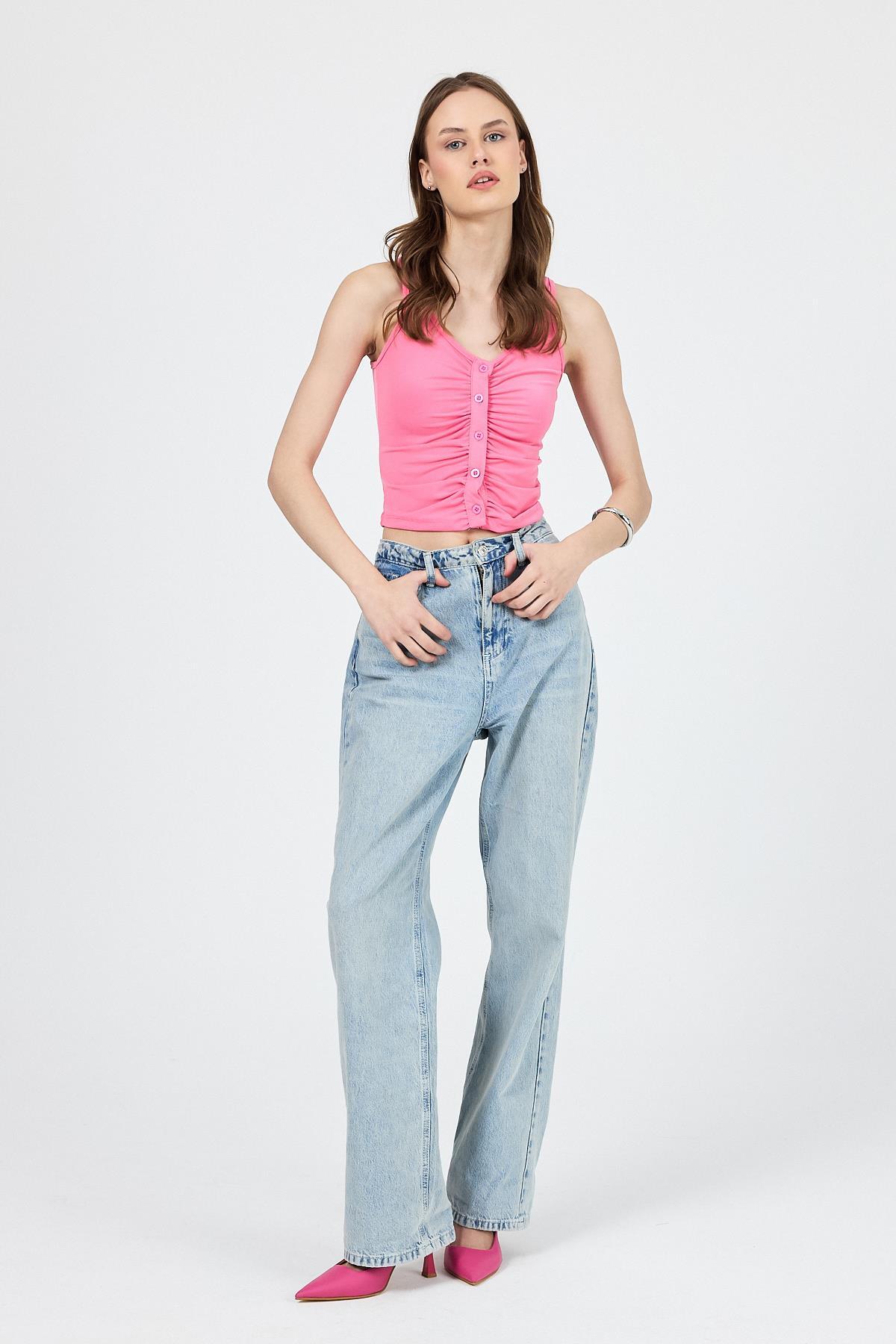 Pembe U Yaka Büzgülü Düğmeli Atlet 13298