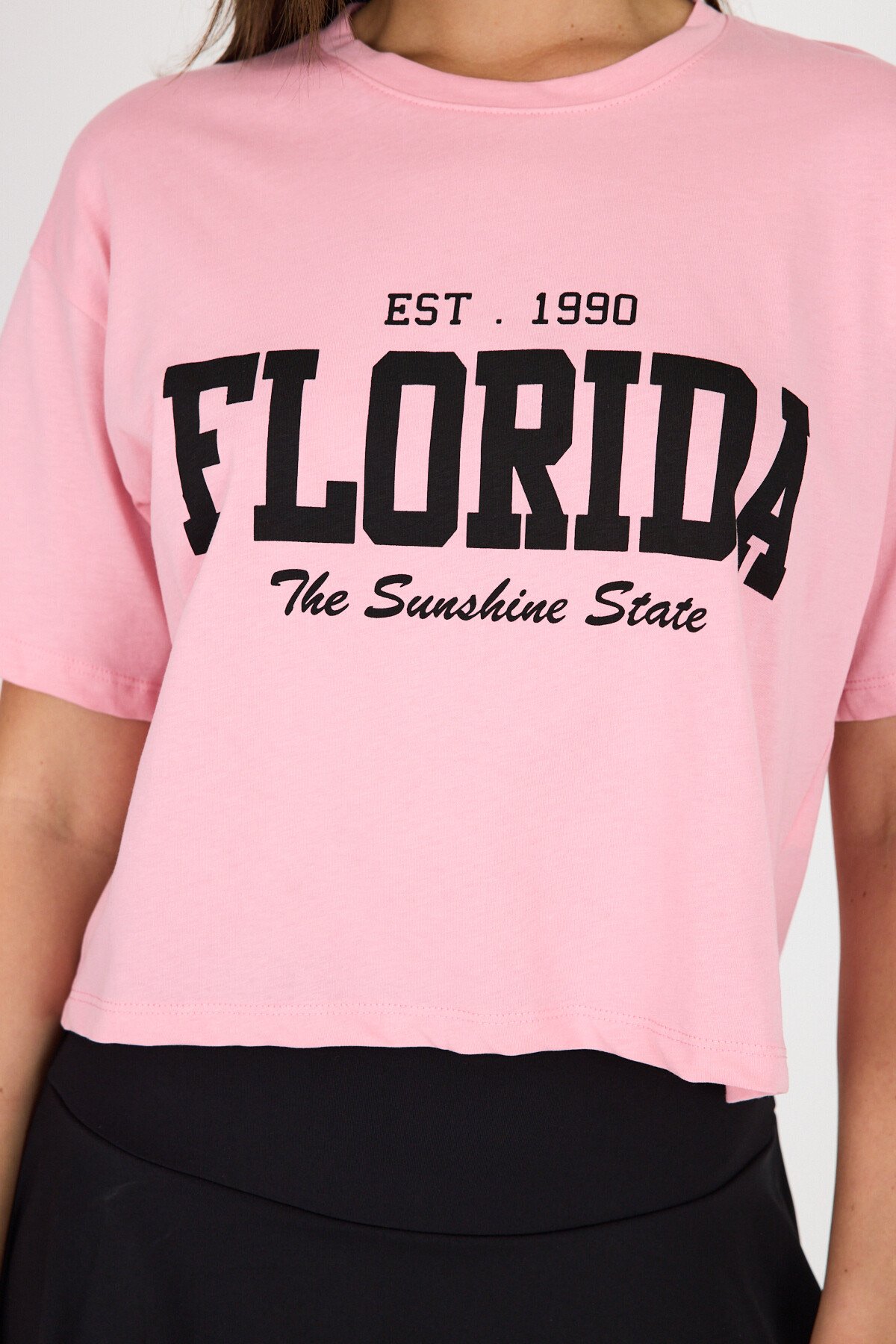 Pembe Yazı Baskılı %100 Pamuk Crop Tişört 9188M