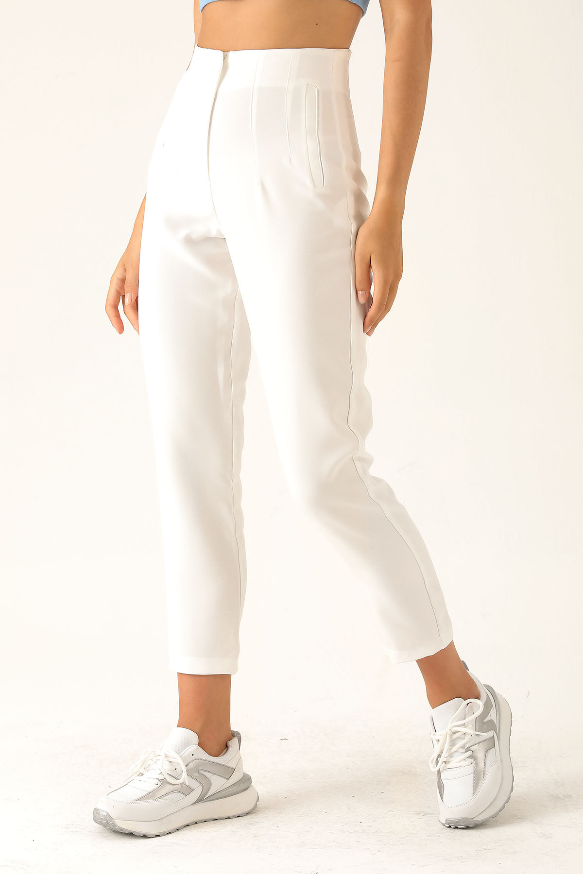 Pens Detaylı Bayan Pantolon - 1010 Ekru