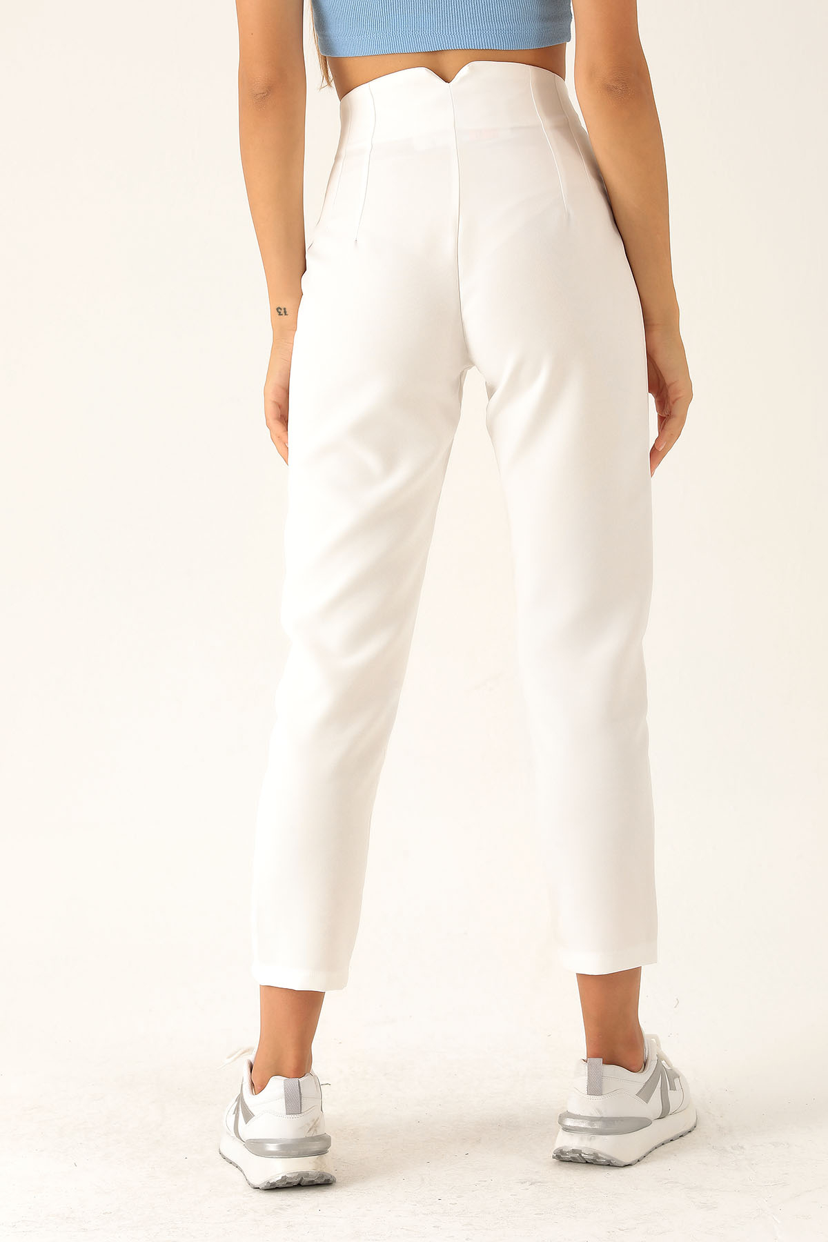 Beyaz Bağlamalı Palazzo Pantolon 3884 - RAYS