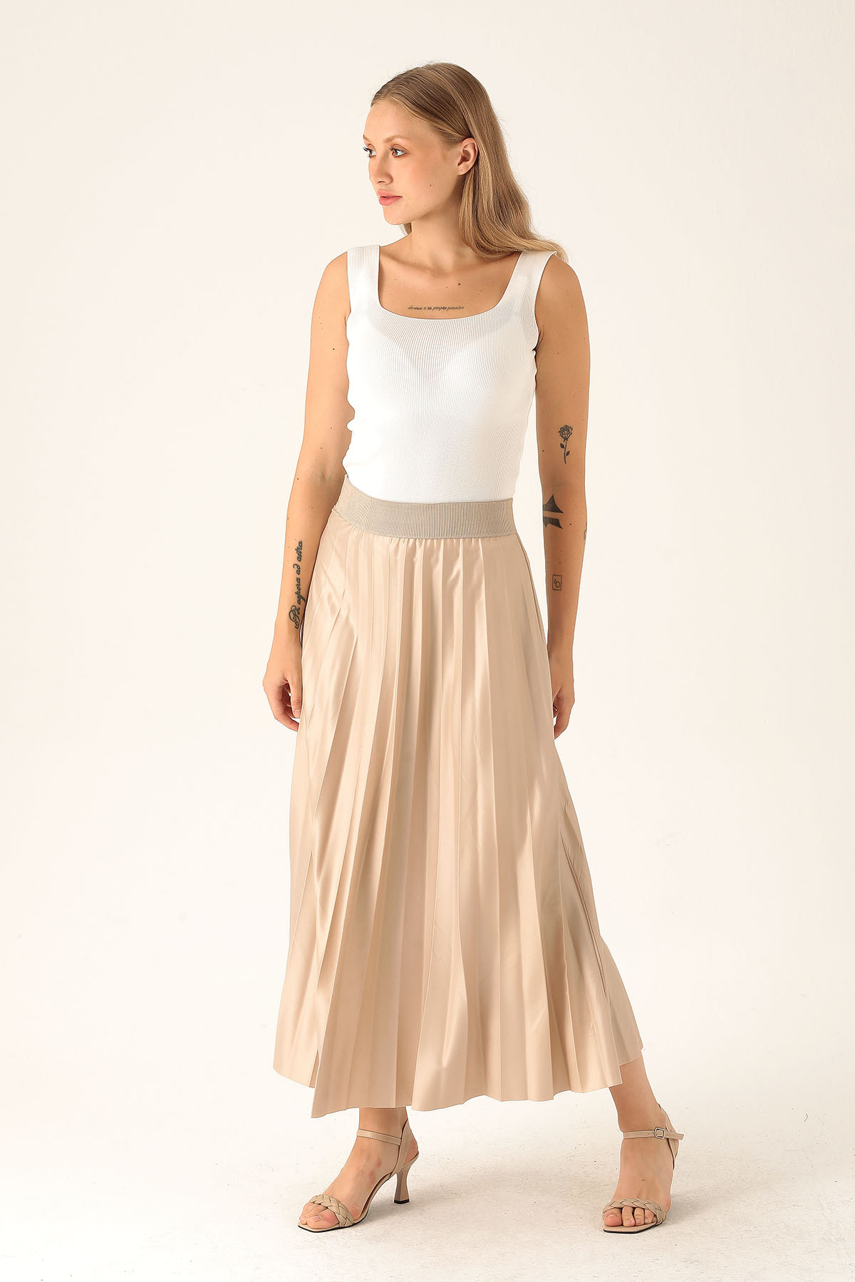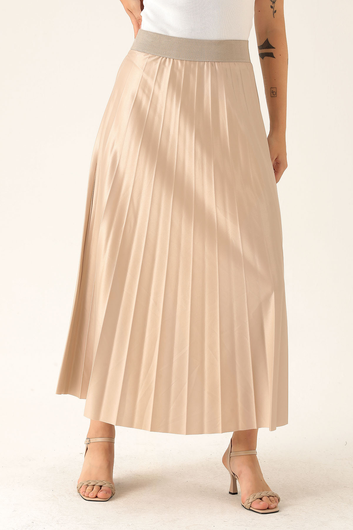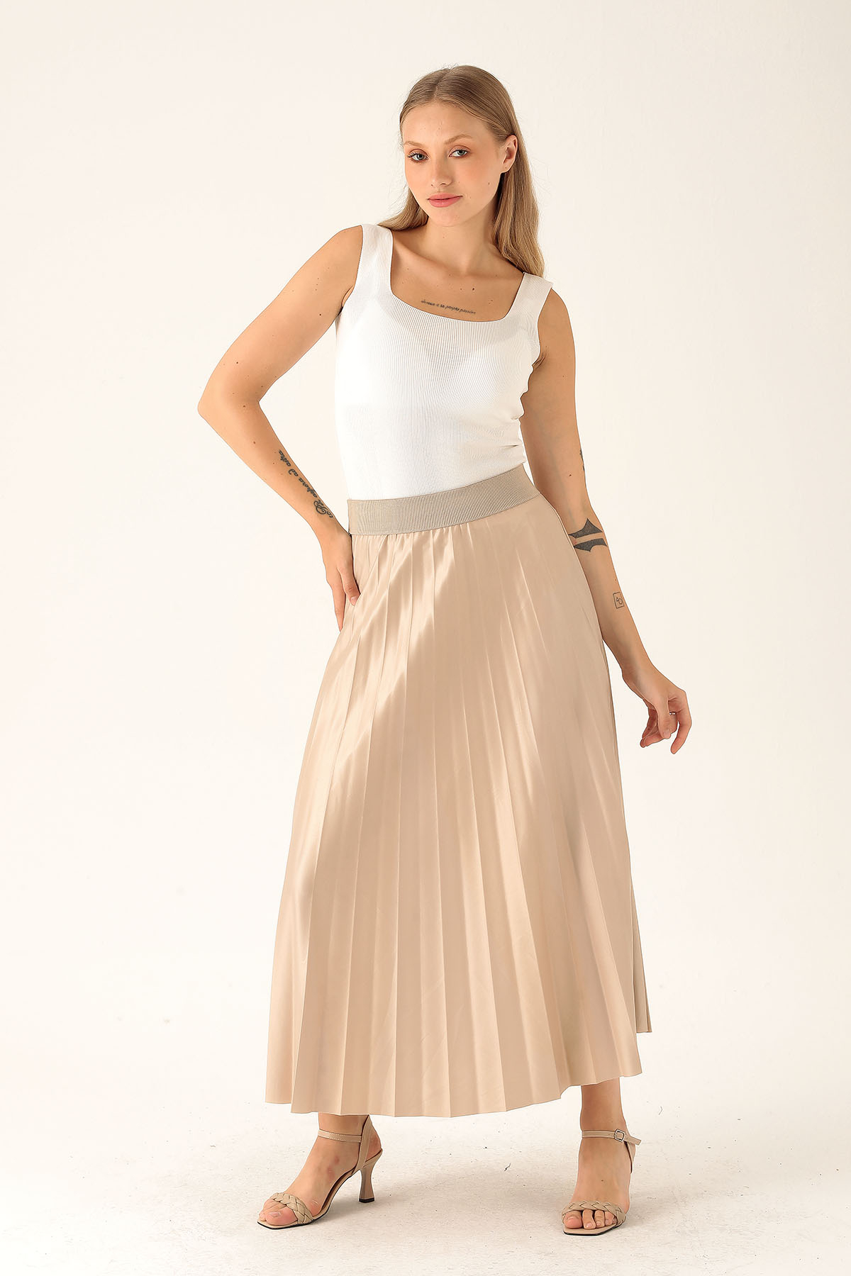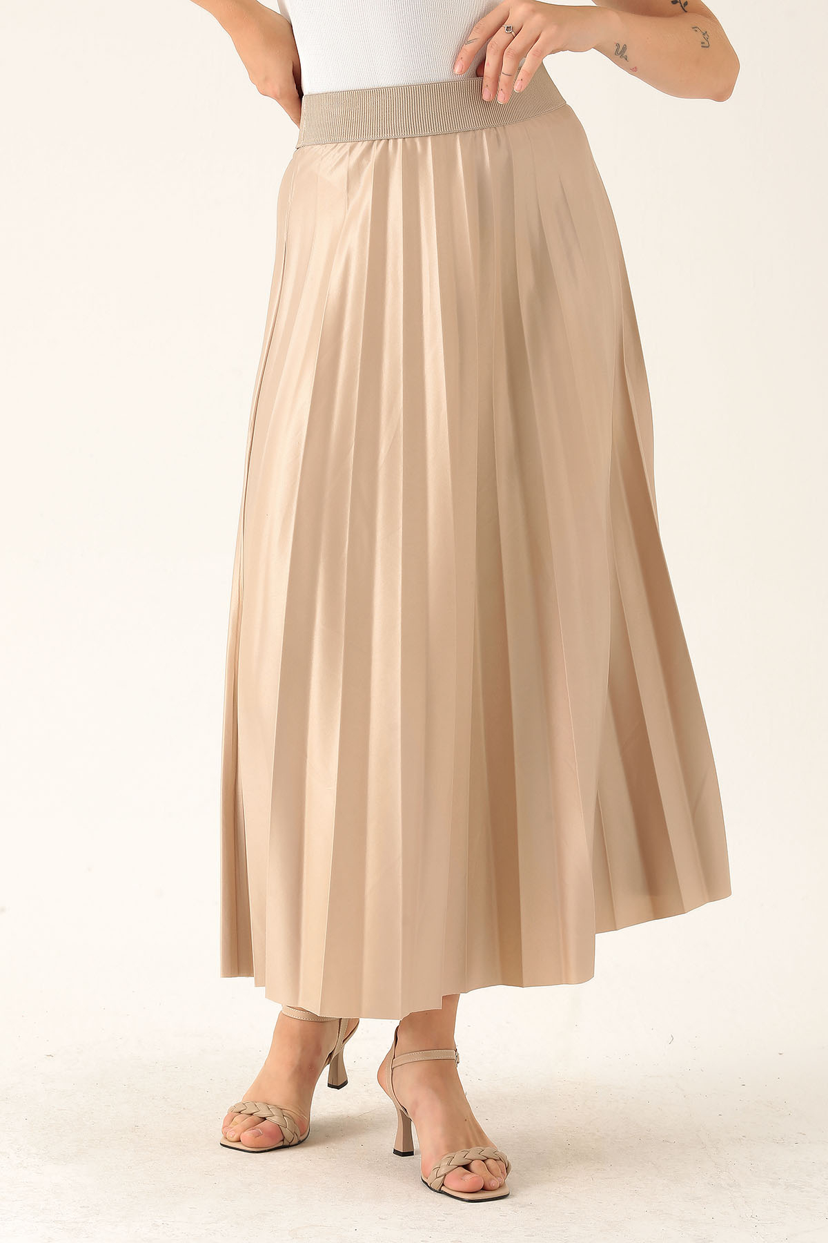 Pliseli Uzun Etek - 1340 Bej