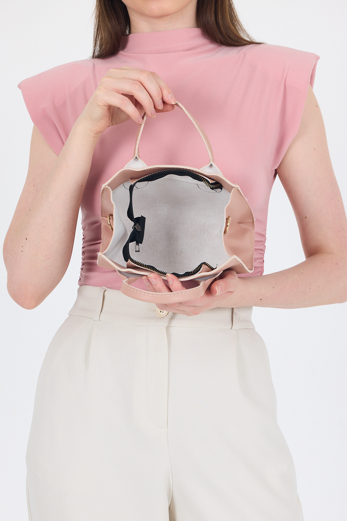 9230 Fermuarlı Örgülü Çanta Vizon - RAYS