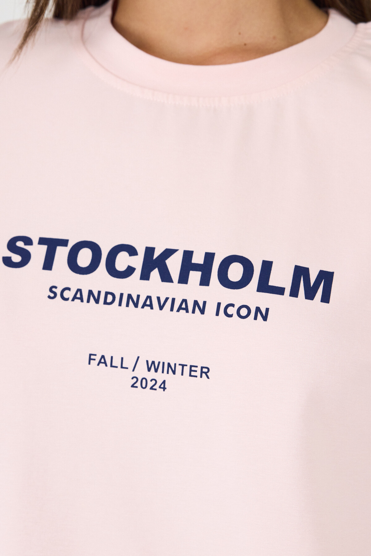 Pudra Yazı Baskılı Bisiklet Yaka Oversize Tişört 6056