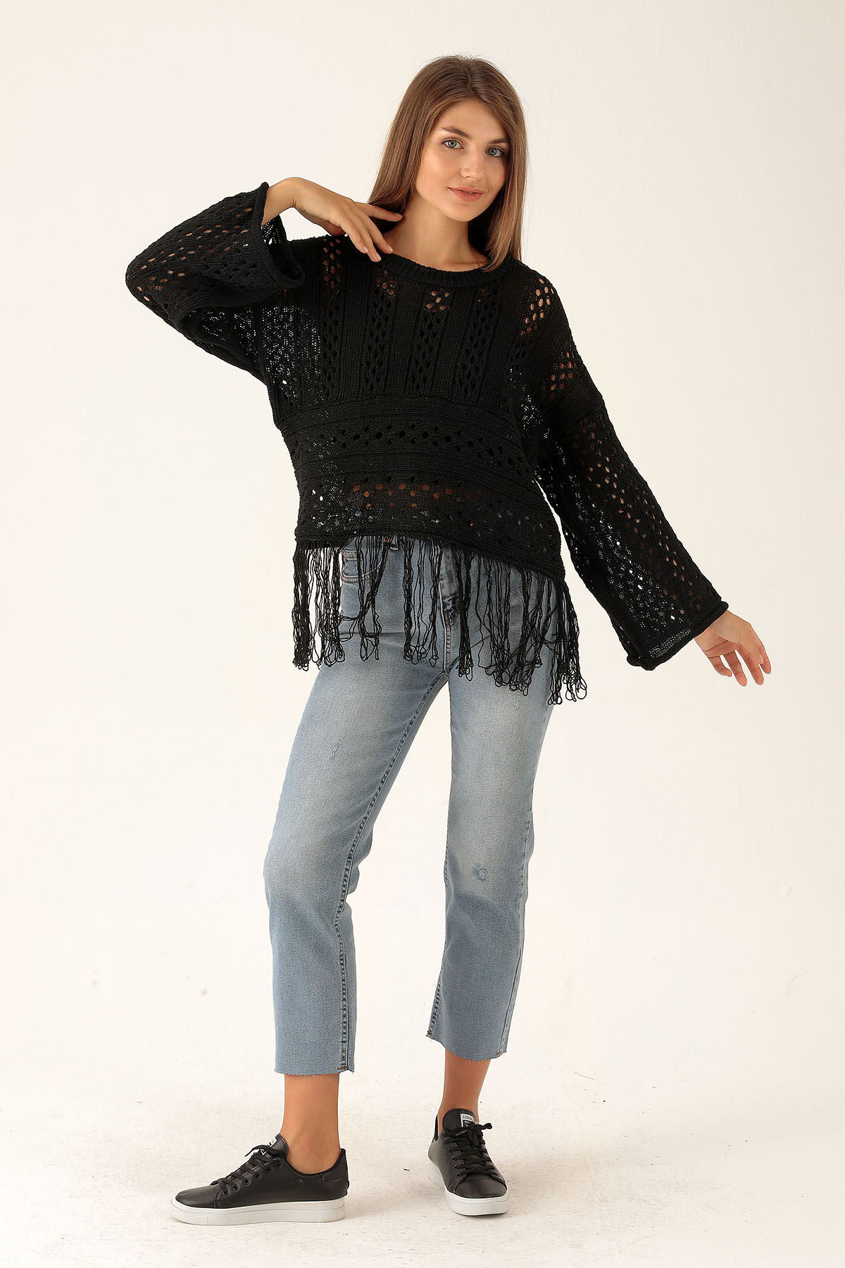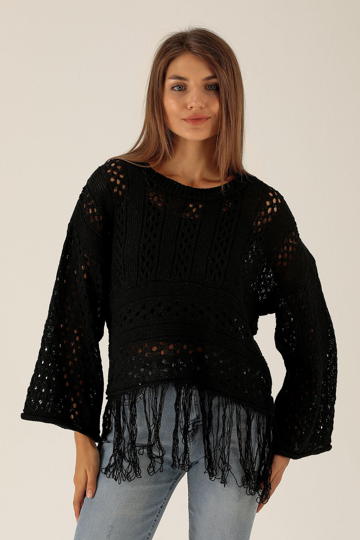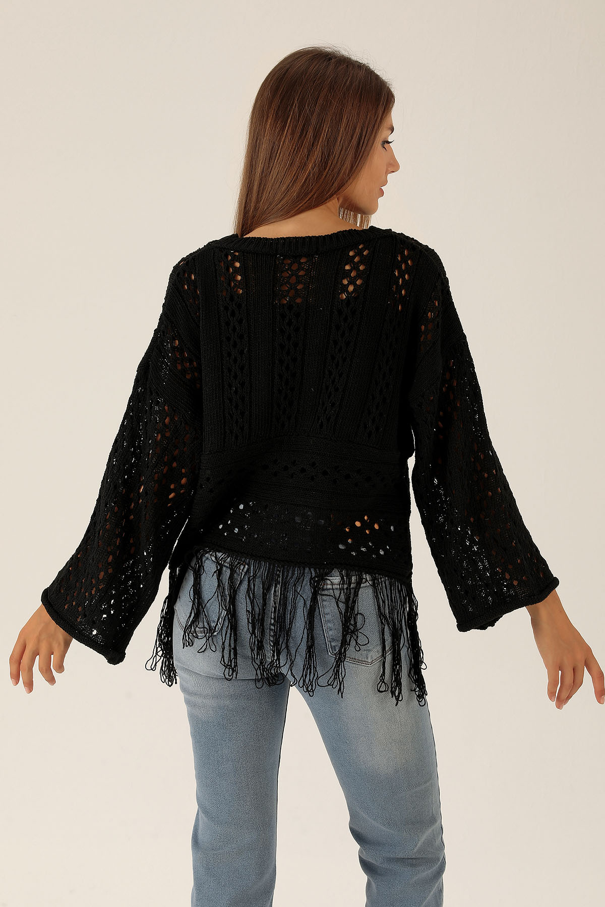 Püskül Detaylı Bayan Kazak - 1527 Siyah